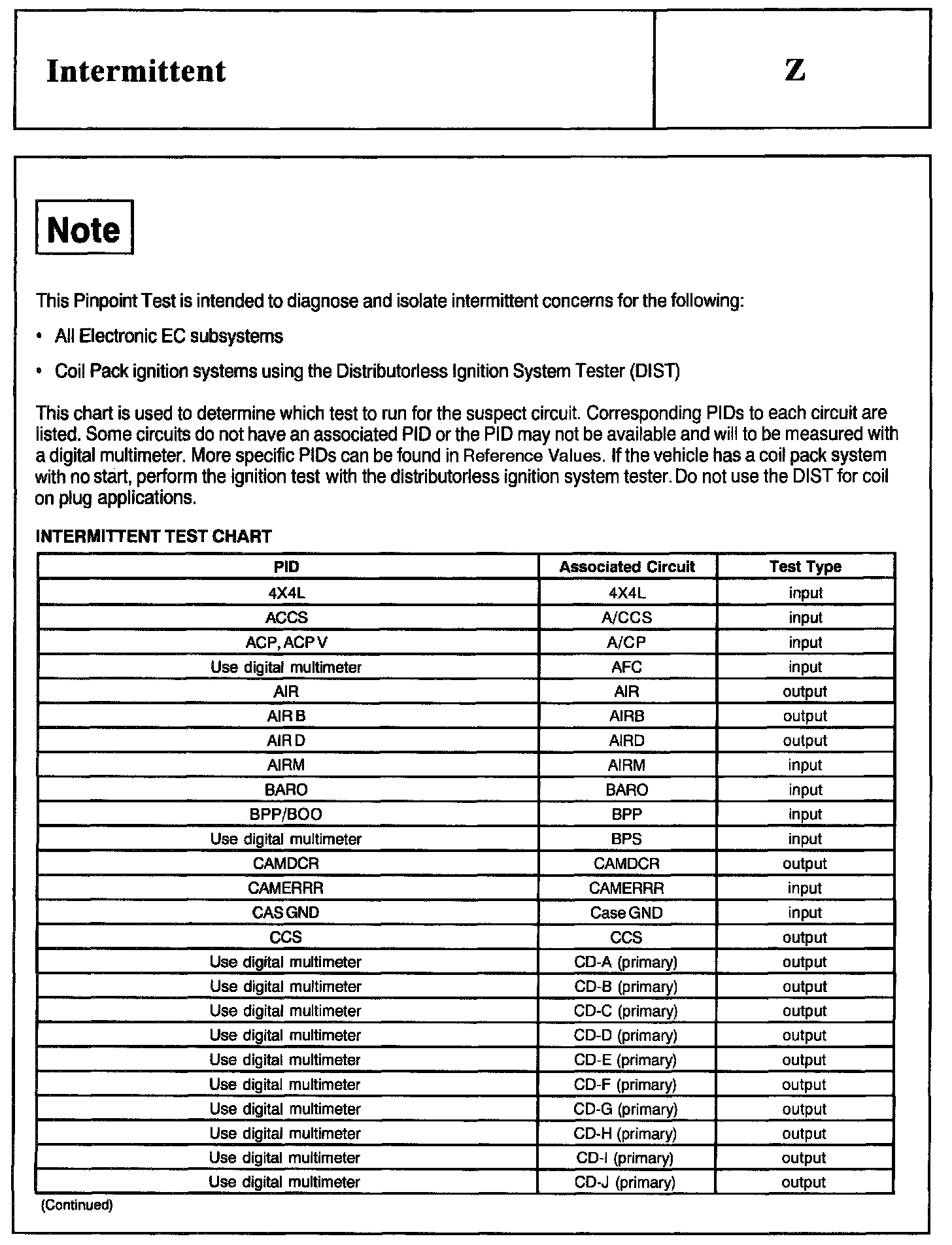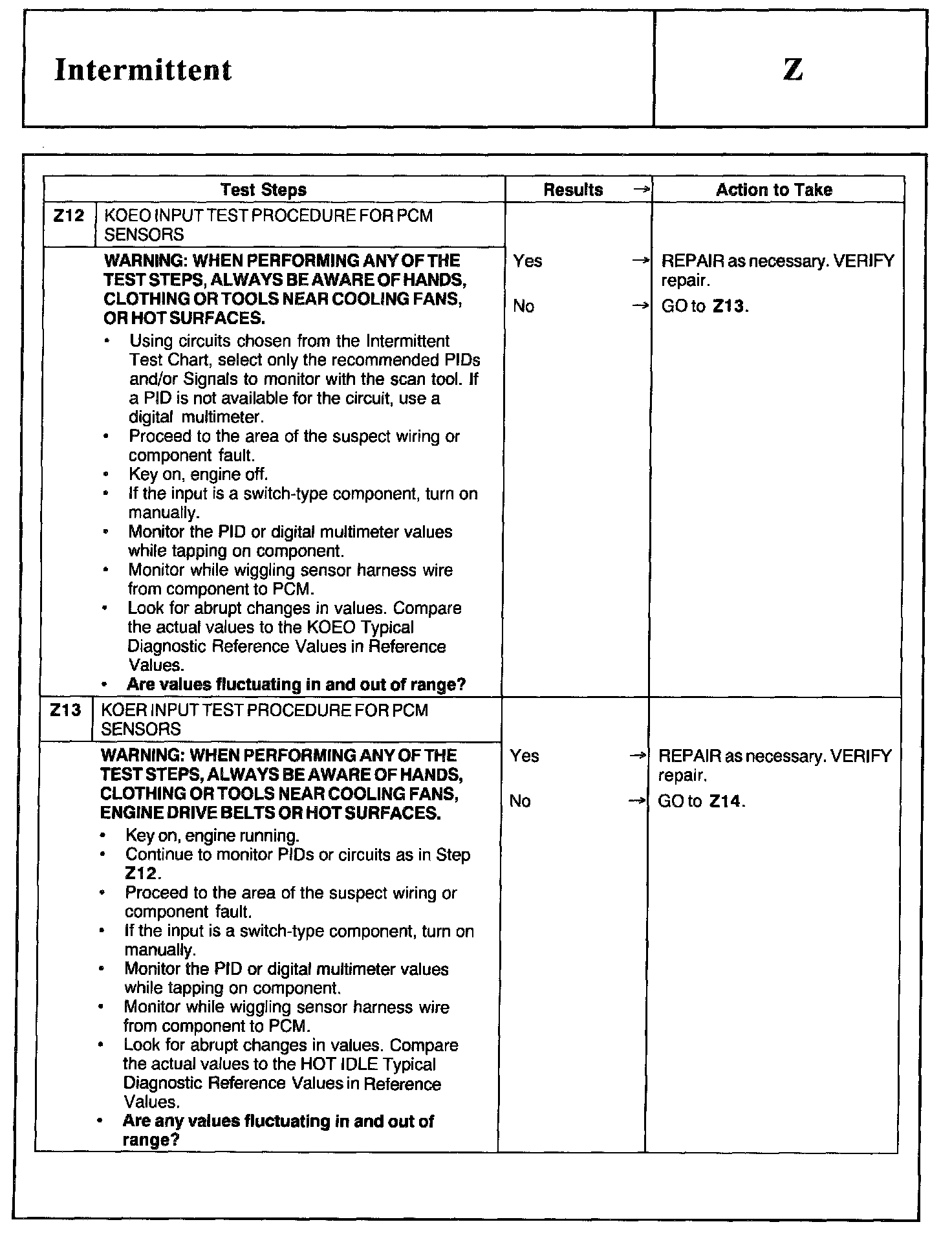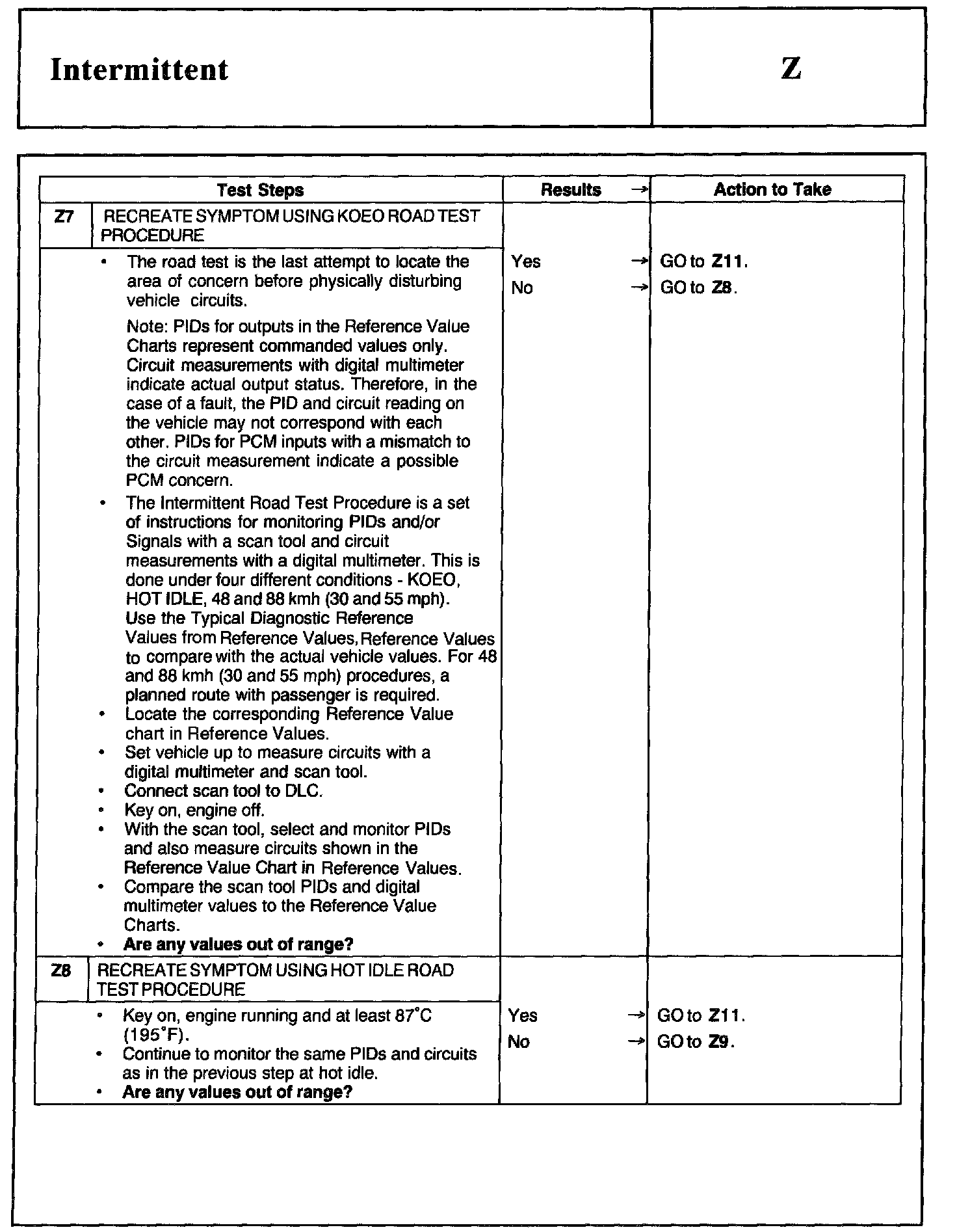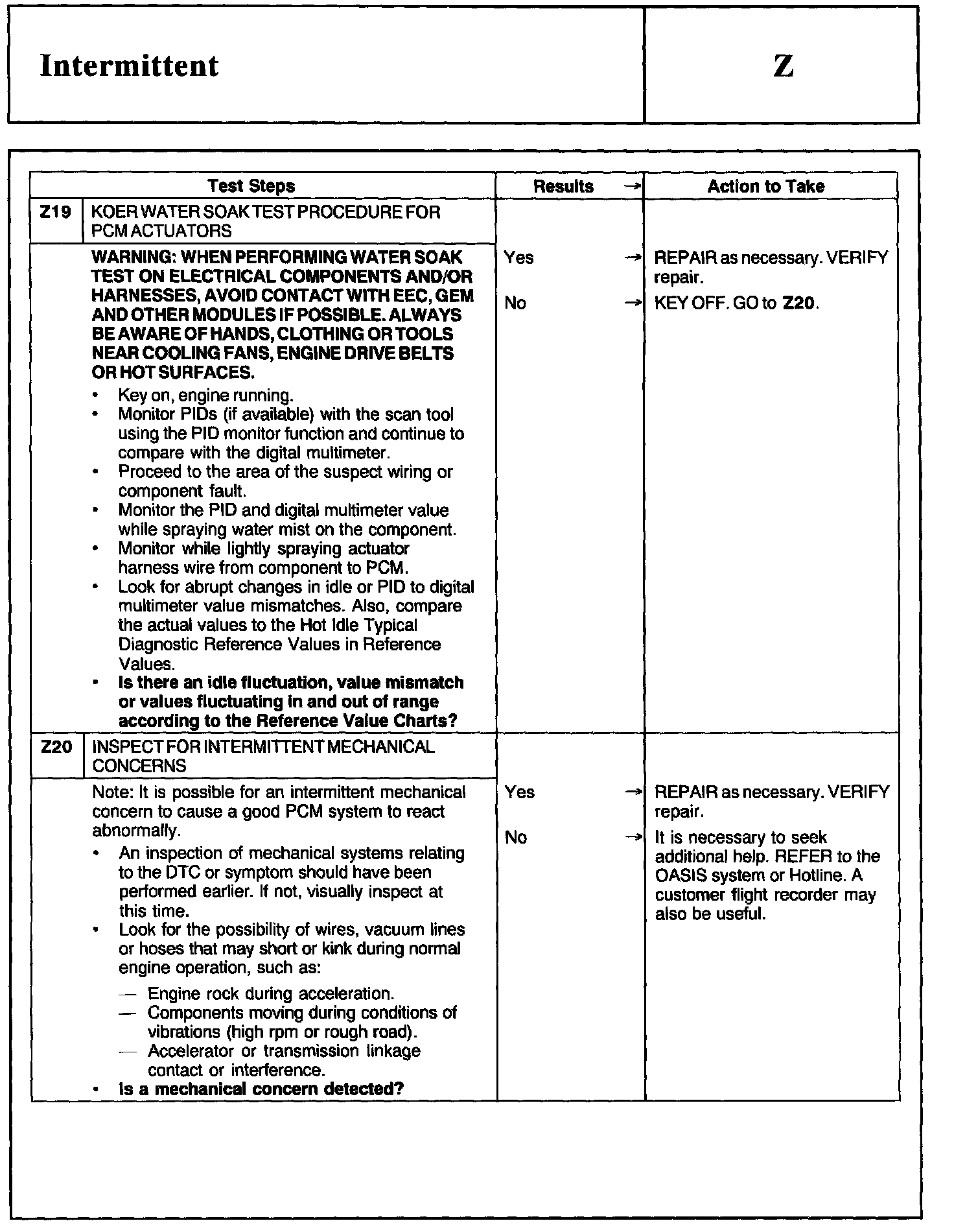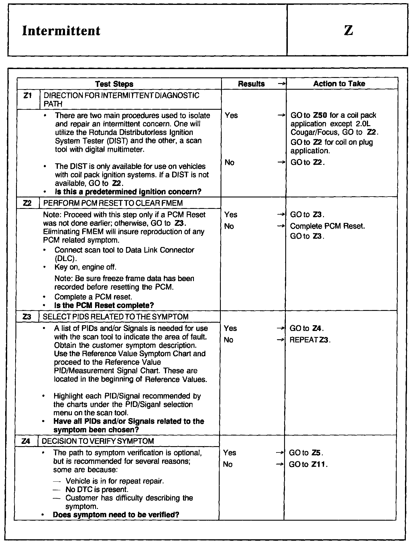 Home >> Ford >> 2002 >> Excursion 4WD V10-6.8L >> Repair and Diagnosis >> Powertrain Management >> Computers and Control Systems >> Testing and Inspection >> Pinpoint Tests >> Test Z: Intermittent