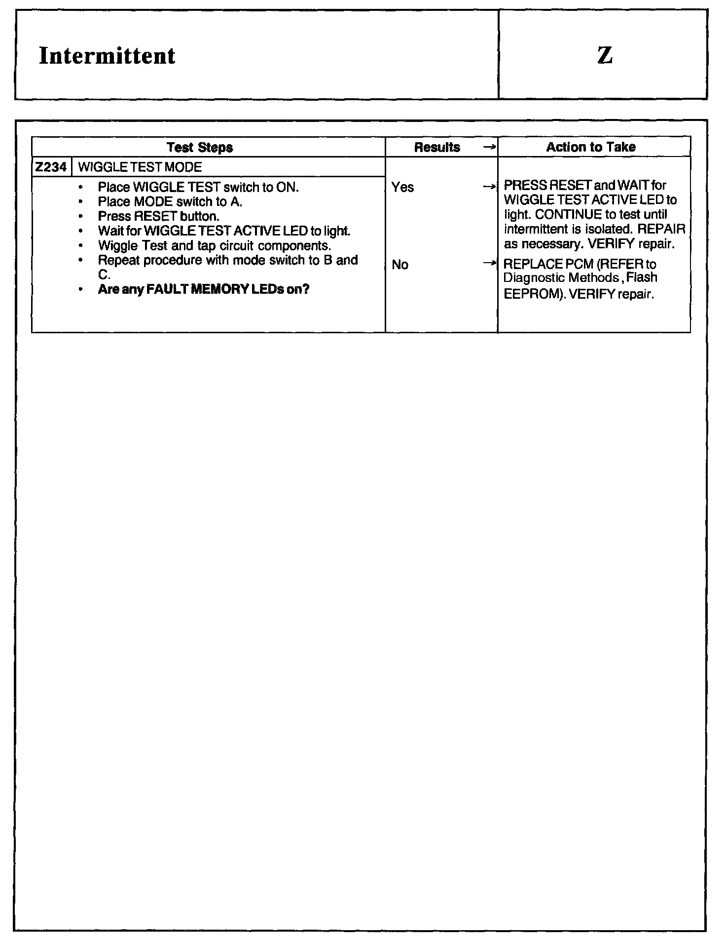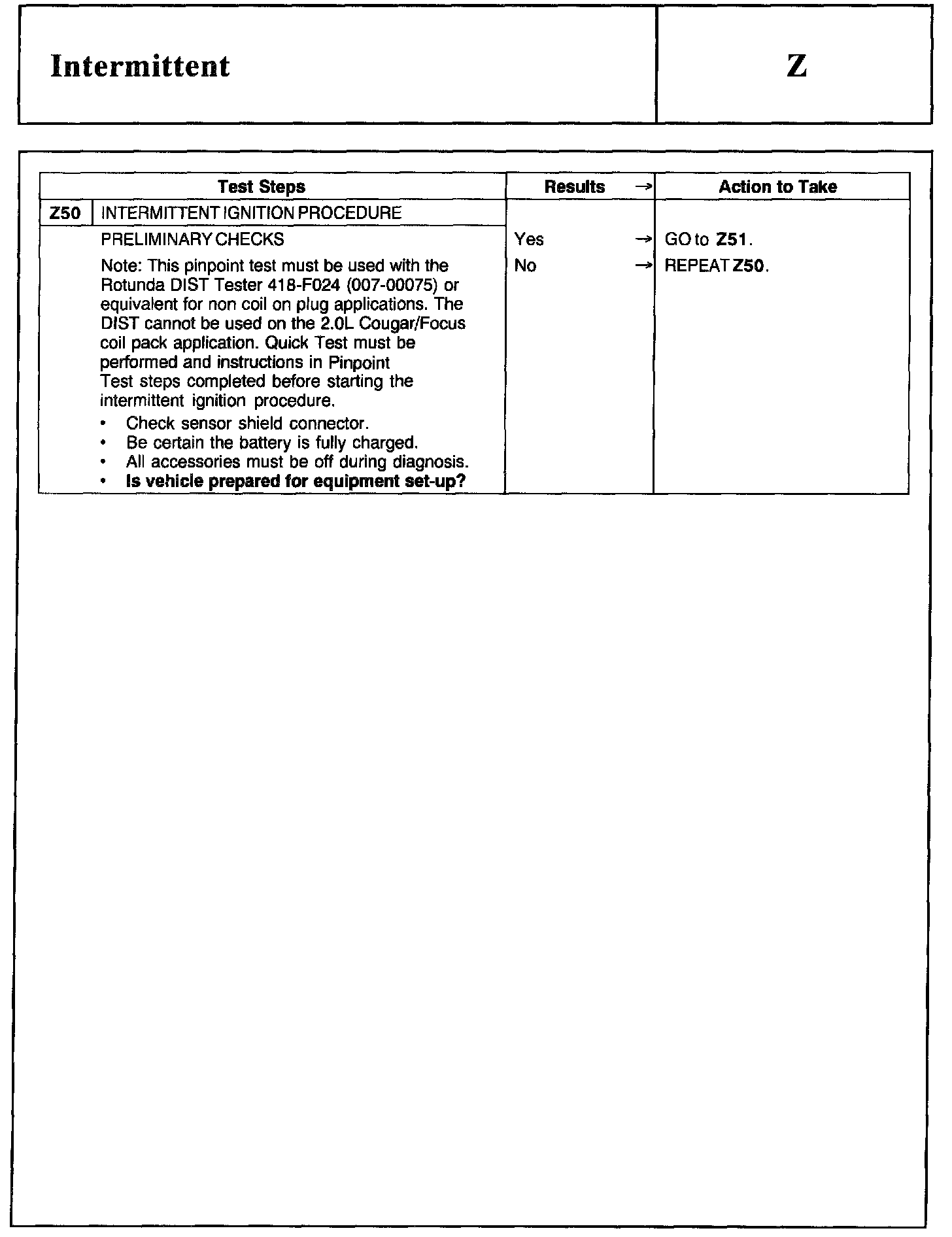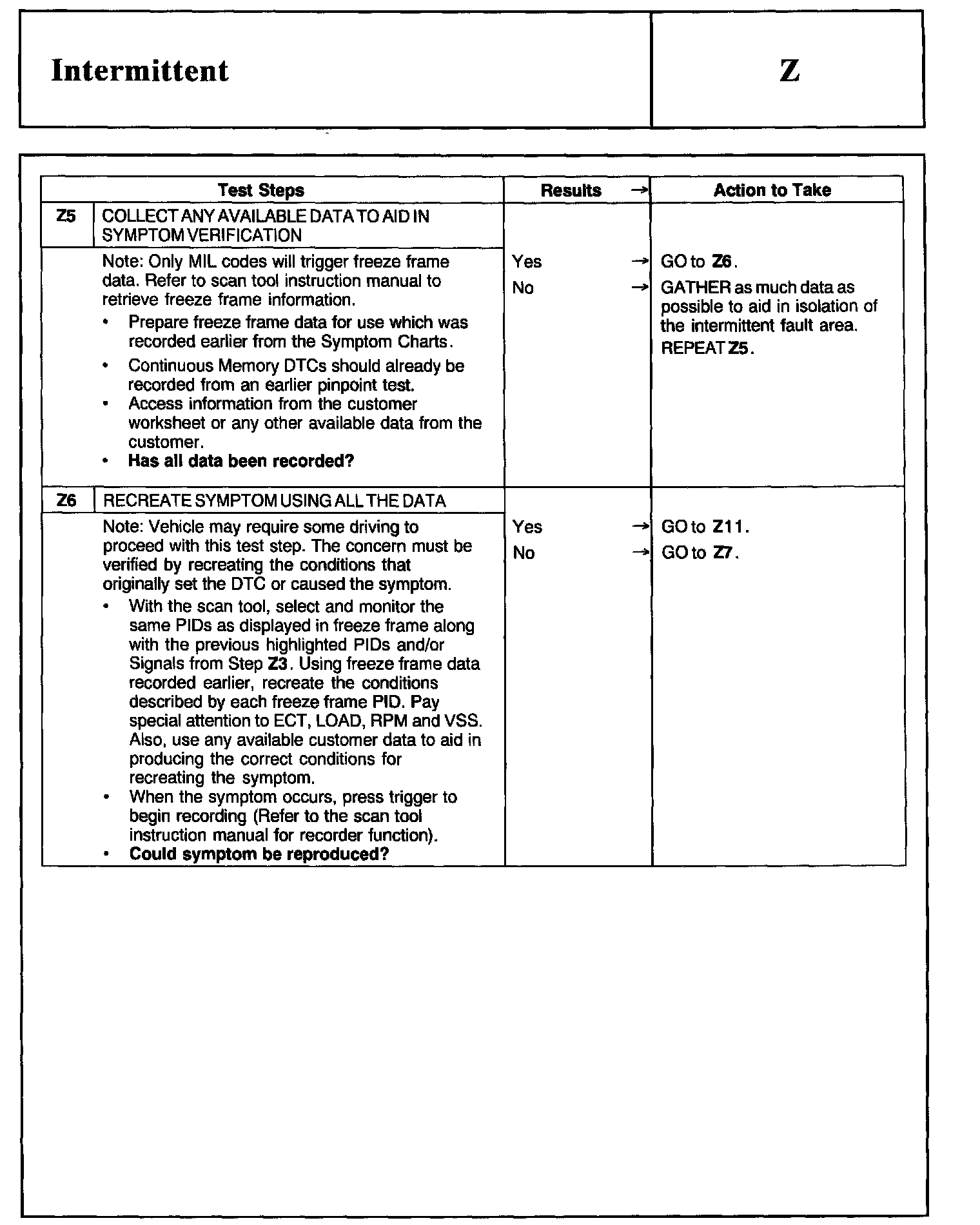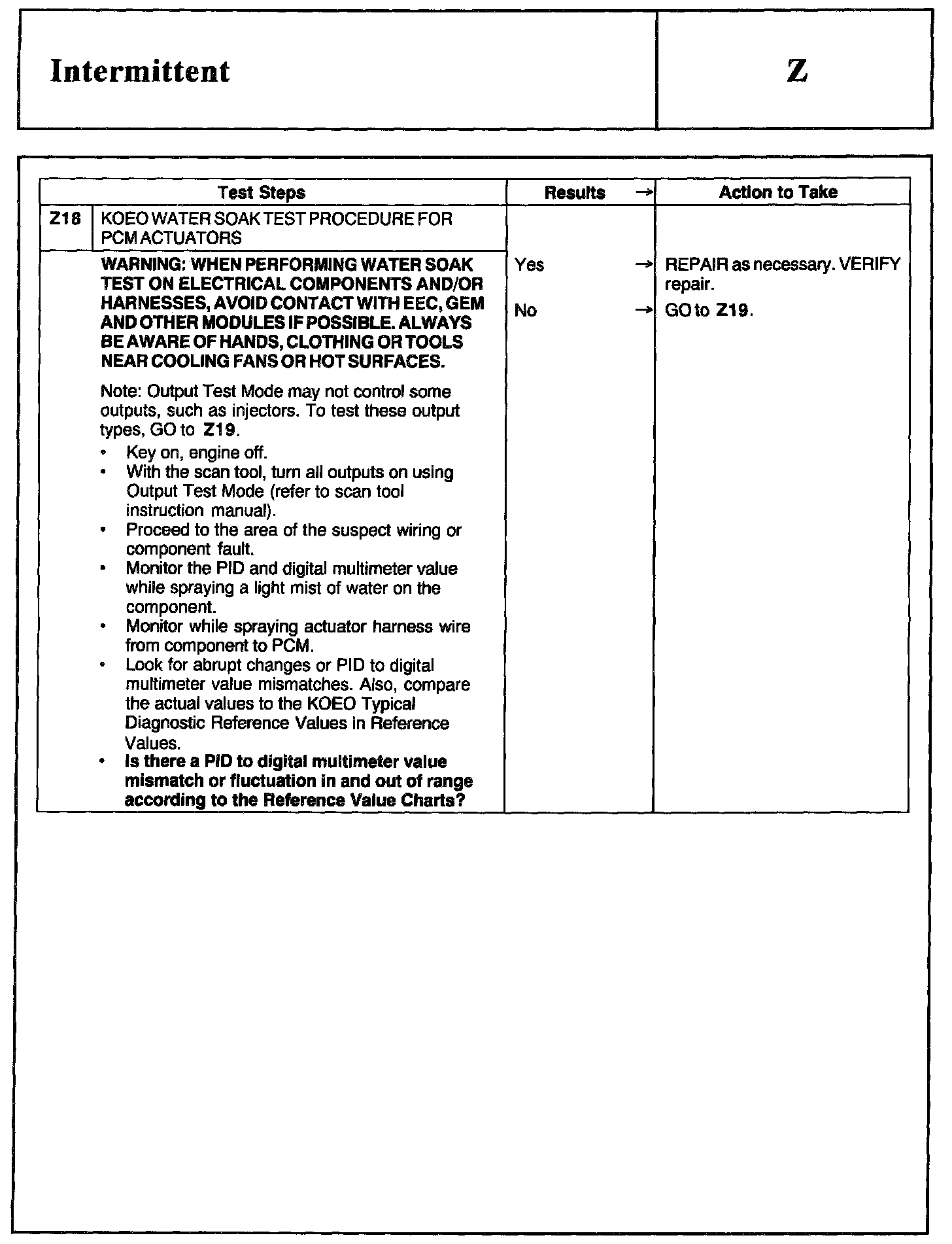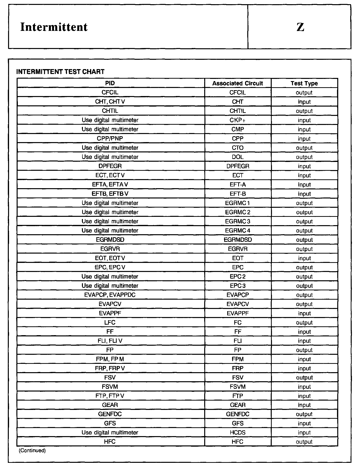Home >> Ford >> 2002 >> Excursion 4WD V10-6.8L >> Repair and Diagnosis >> Powertrain Management >> Computers and Control Systems >> Testing and Inspection >> Pinpoint Tests >> Test Z: Intermittent