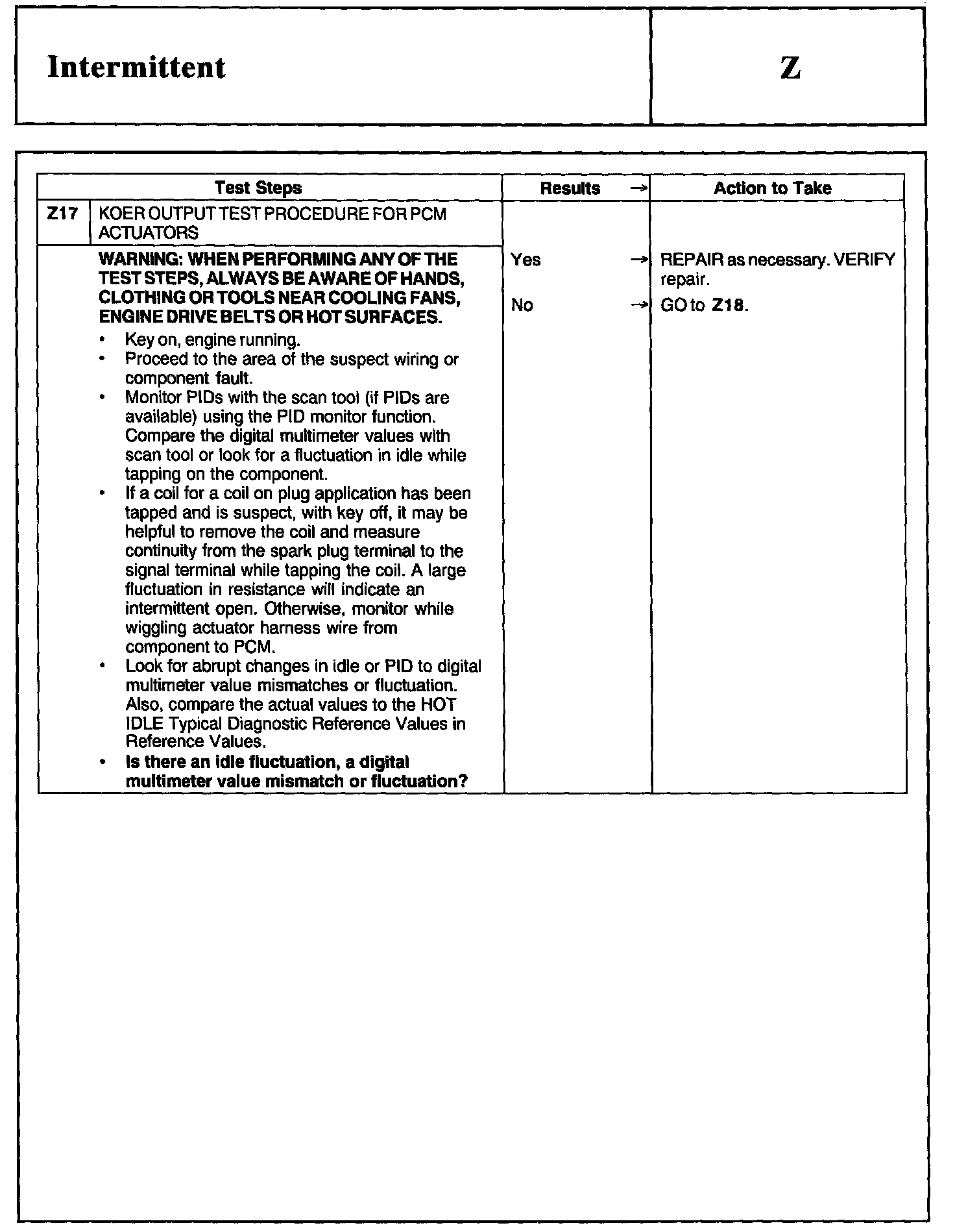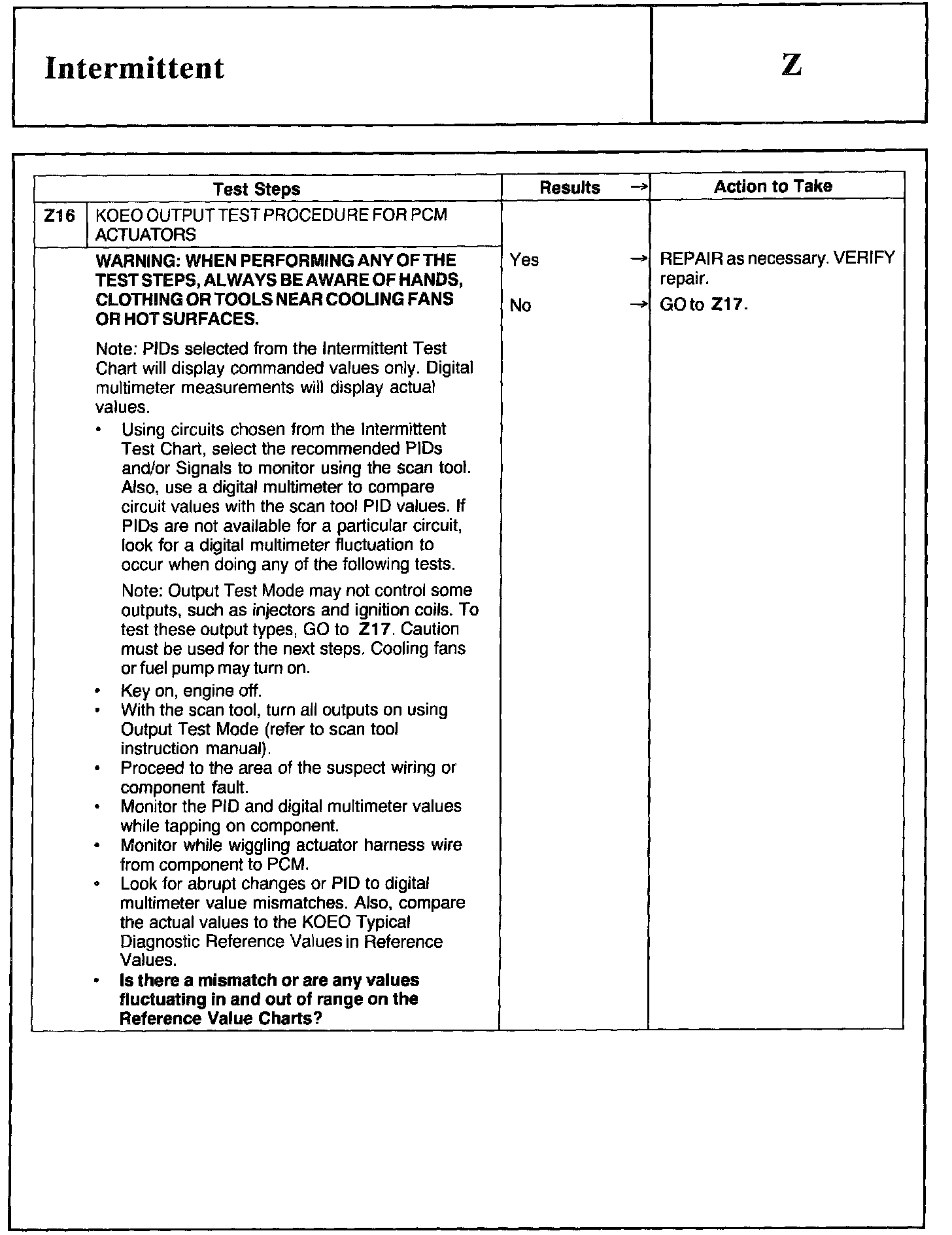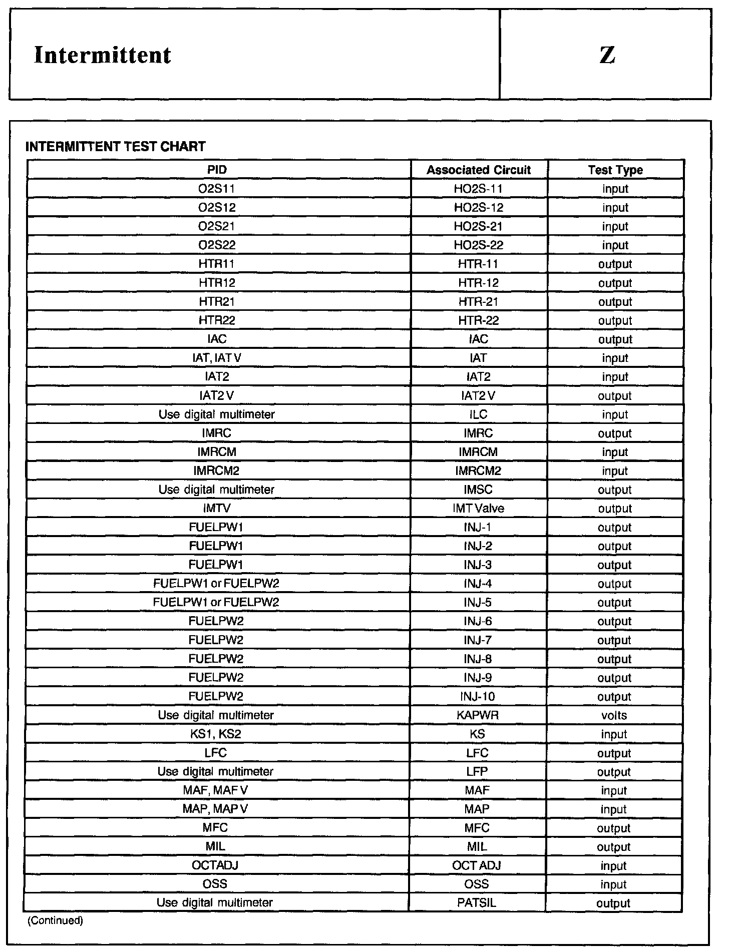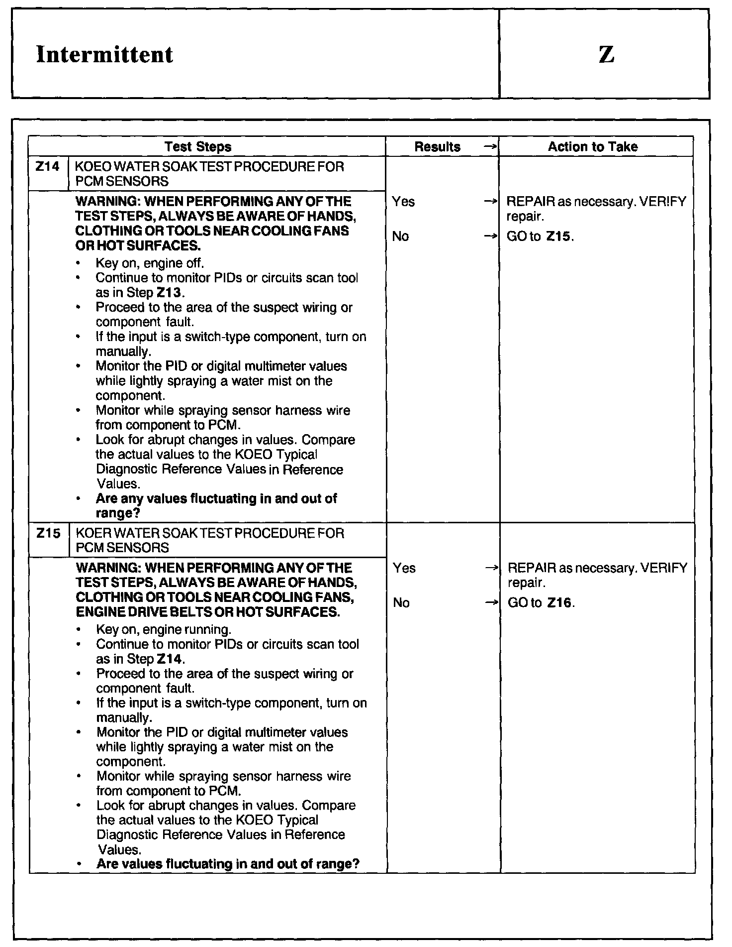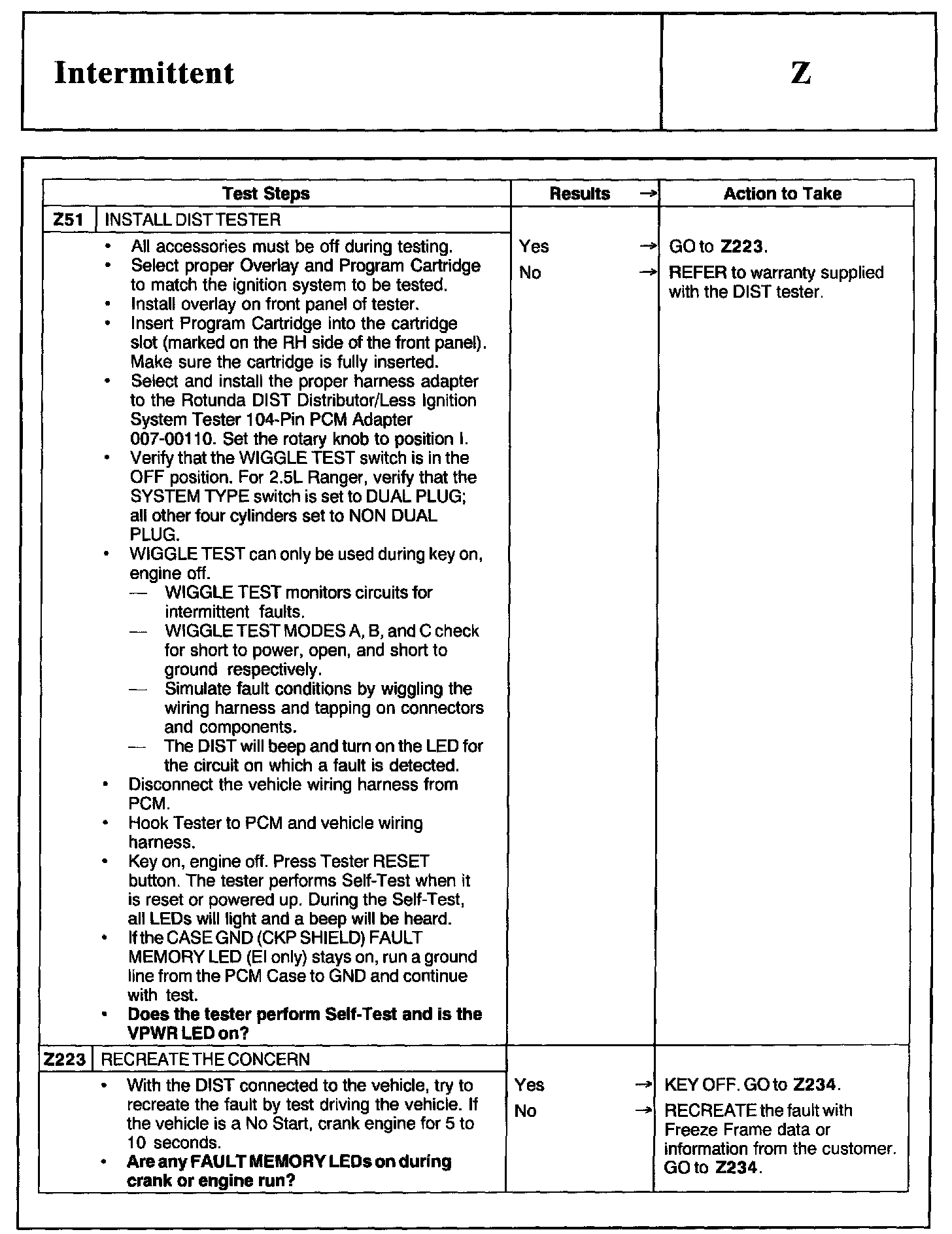 Home >> Ford >> 2002 >> Excursion 4WD V10-6.8L >> Repair and Diagnosis >> Powertrain Management >> Computers and Control Systems >> Testing and Inspection >> Pinpoint Tests >> Test Z: Intermittent