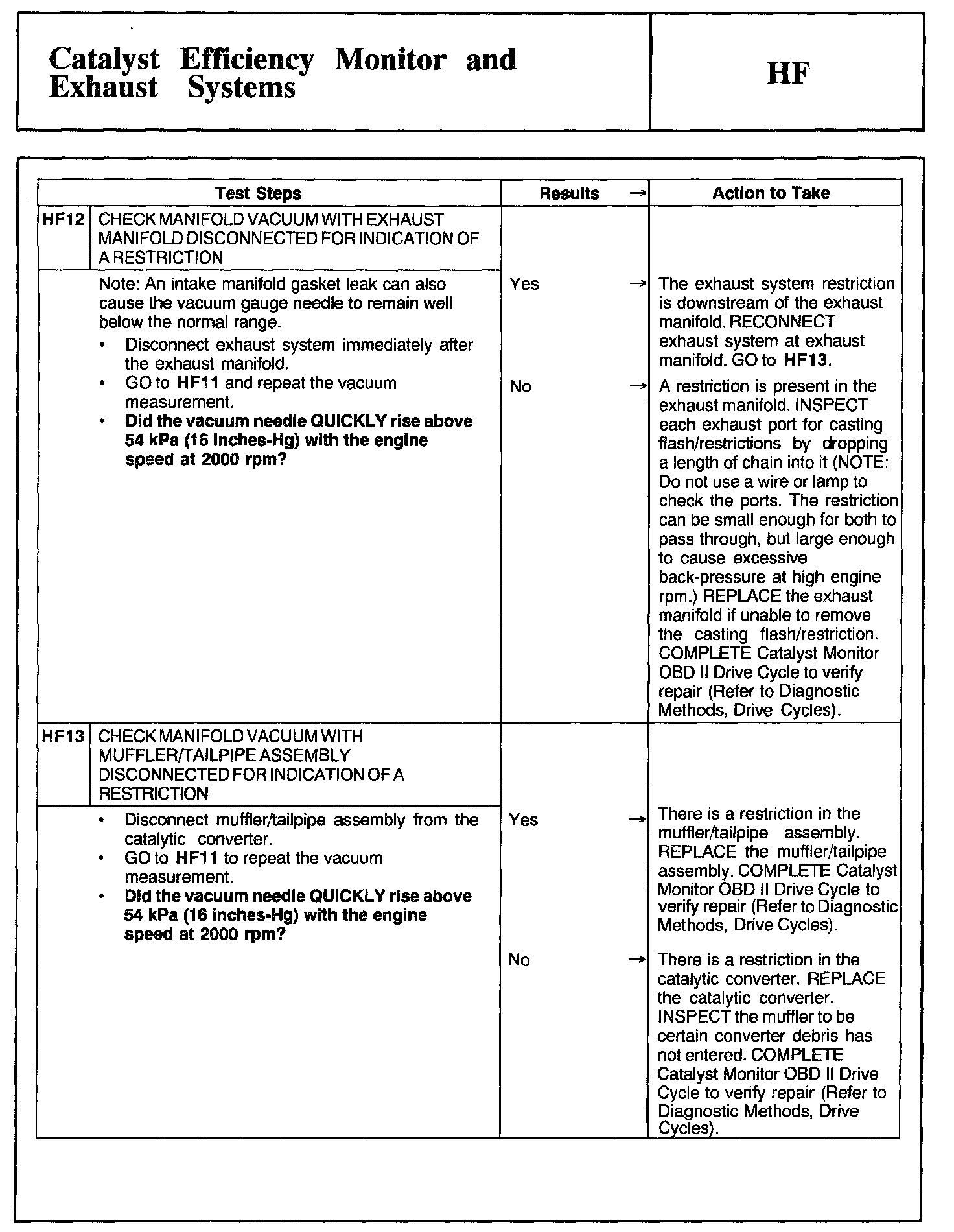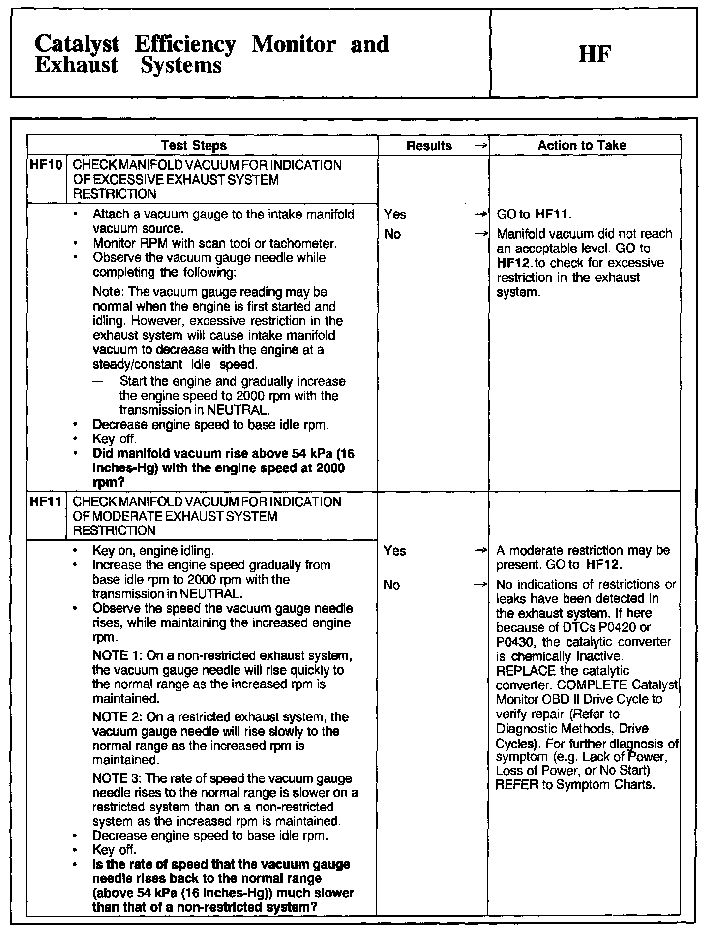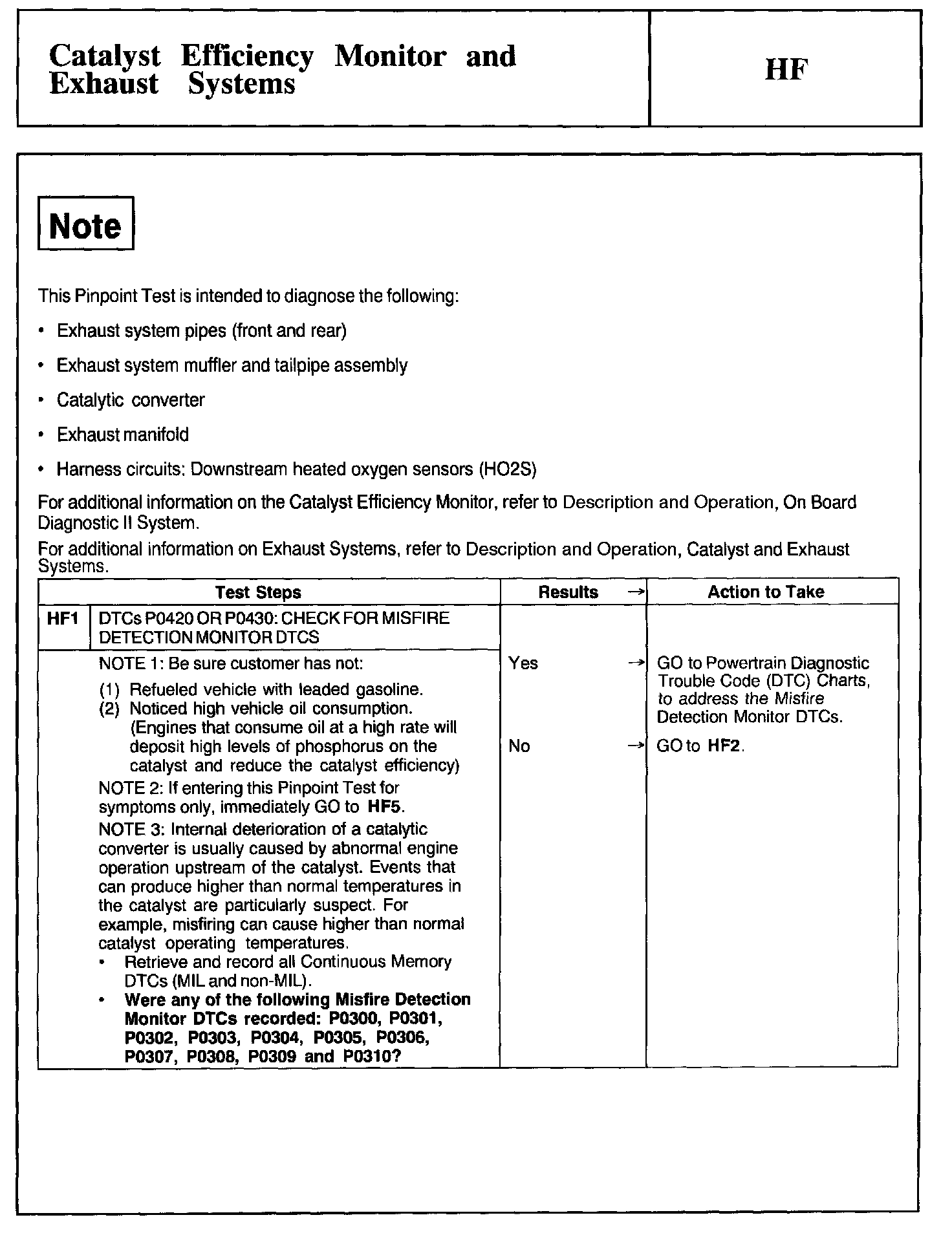 Tests HF: Catalyst Efficiency Monitor and Exhaust Systems