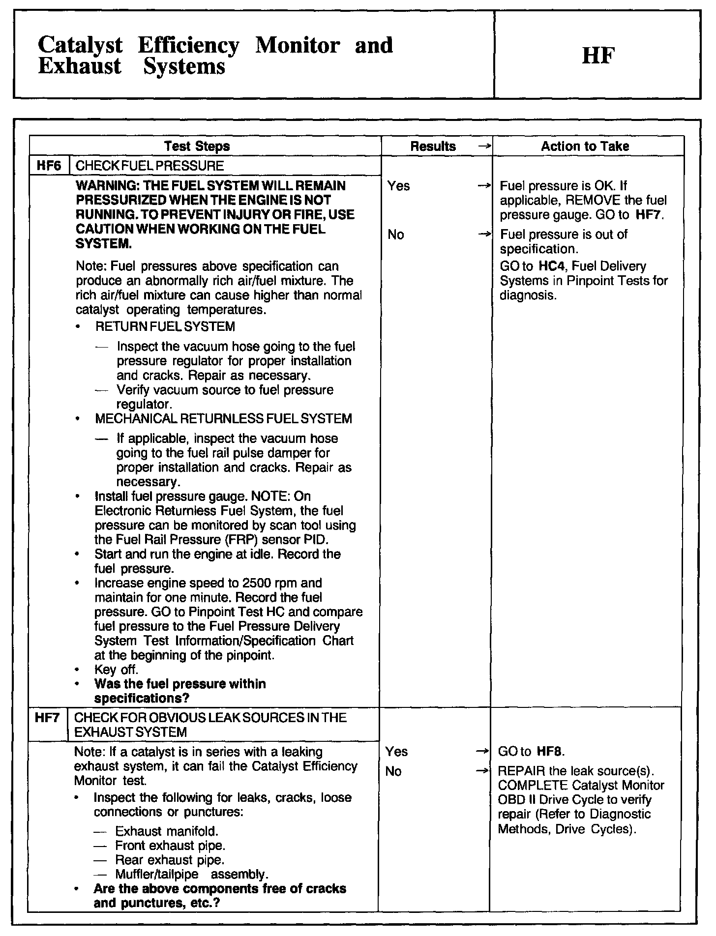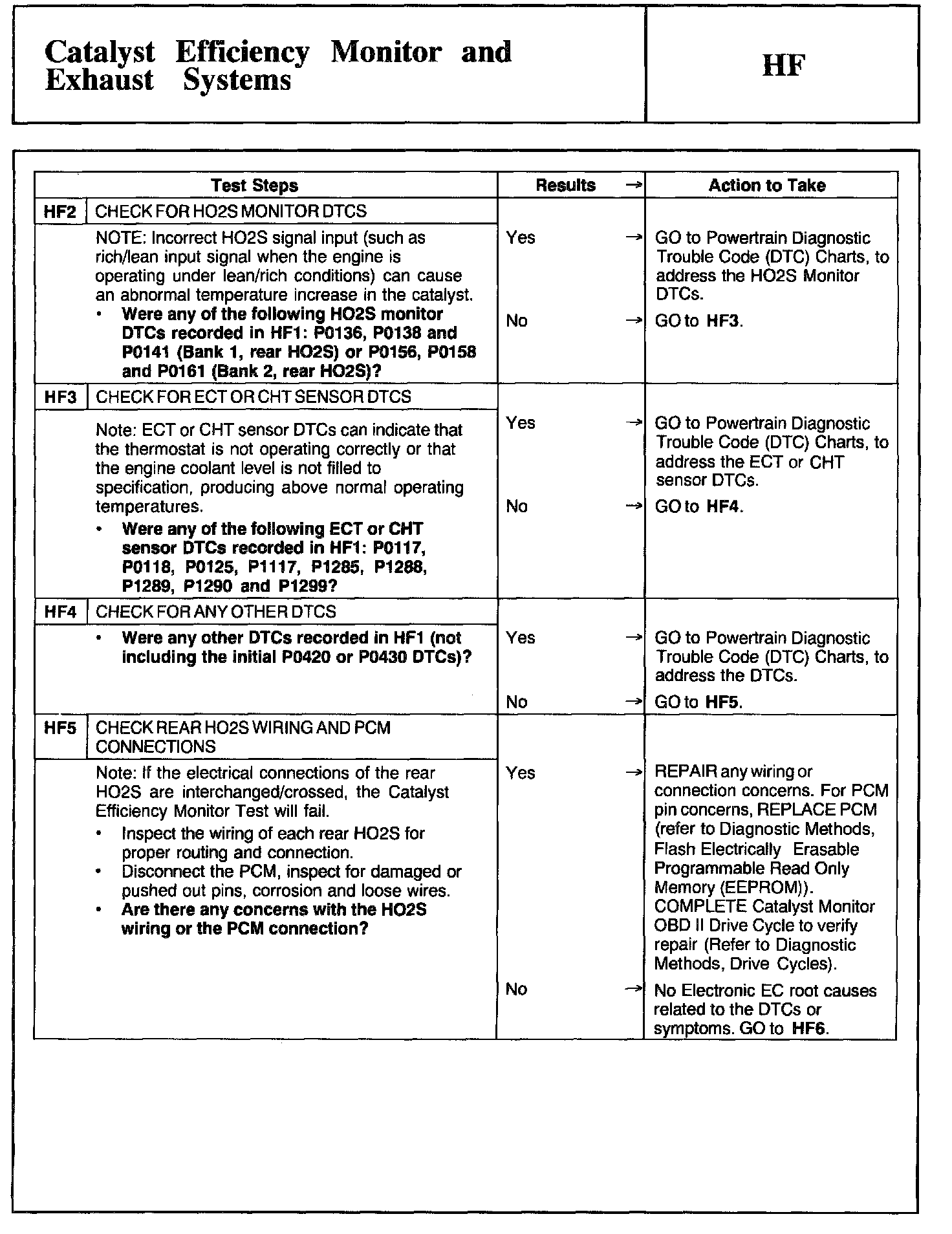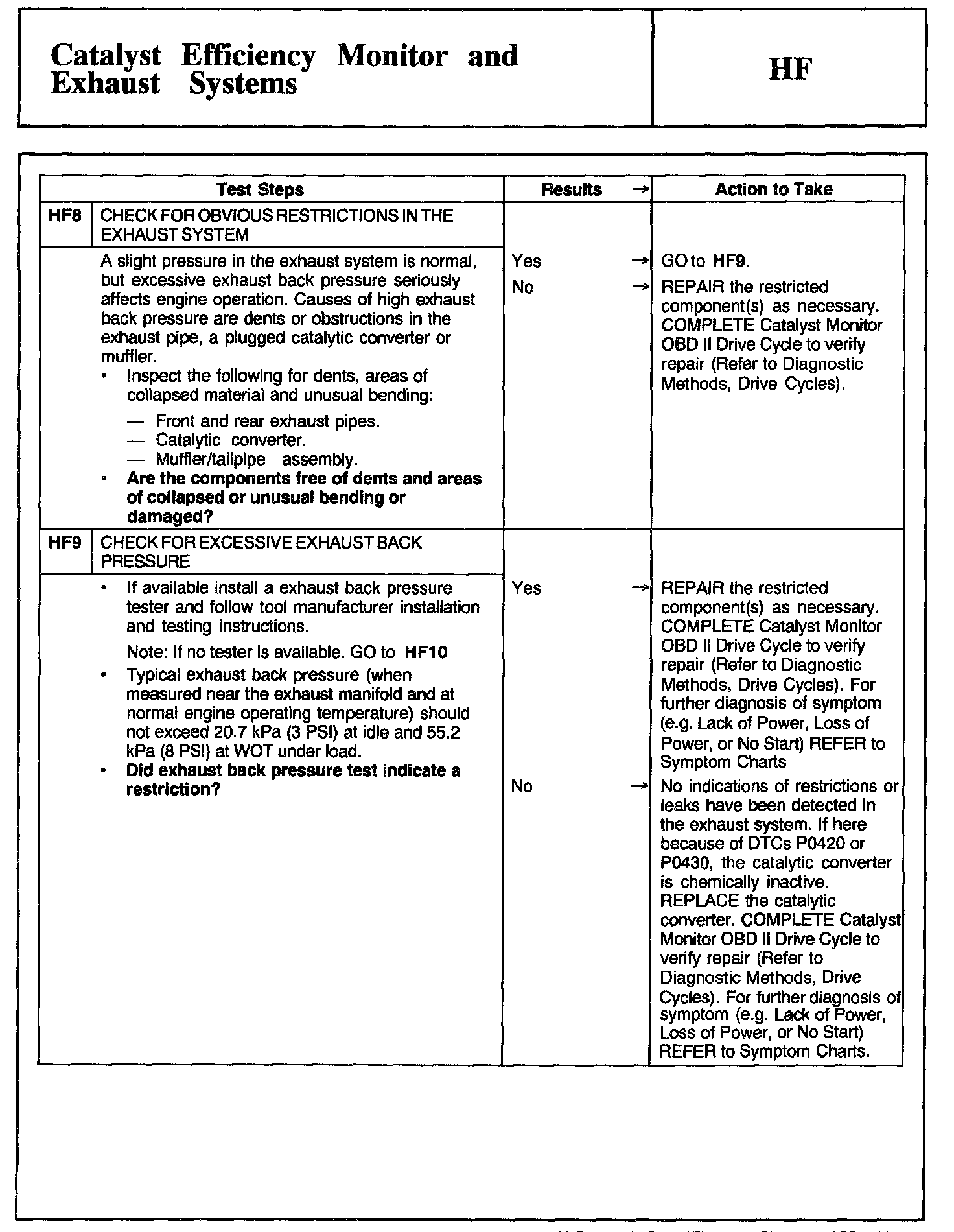 Tests HF: Catalyst Efficiency Monitor and Exhaust Systems