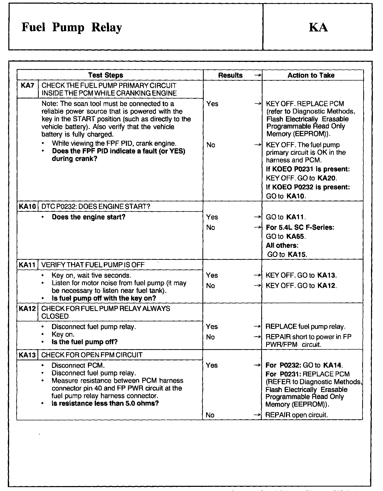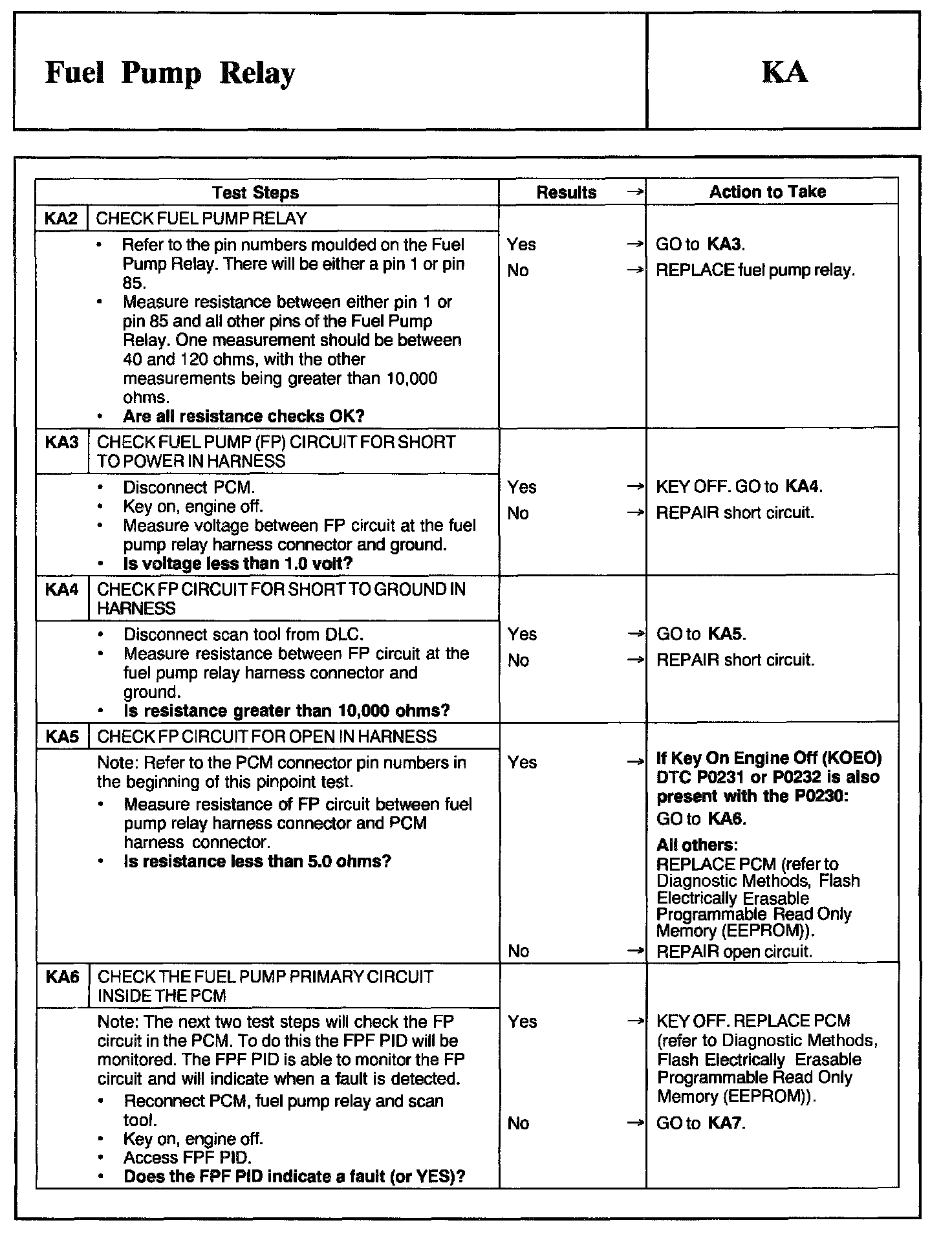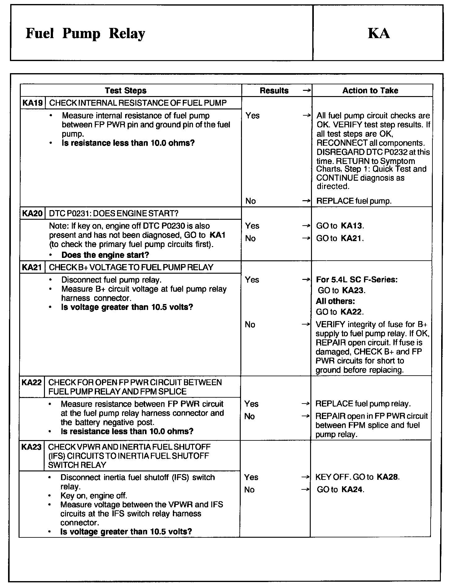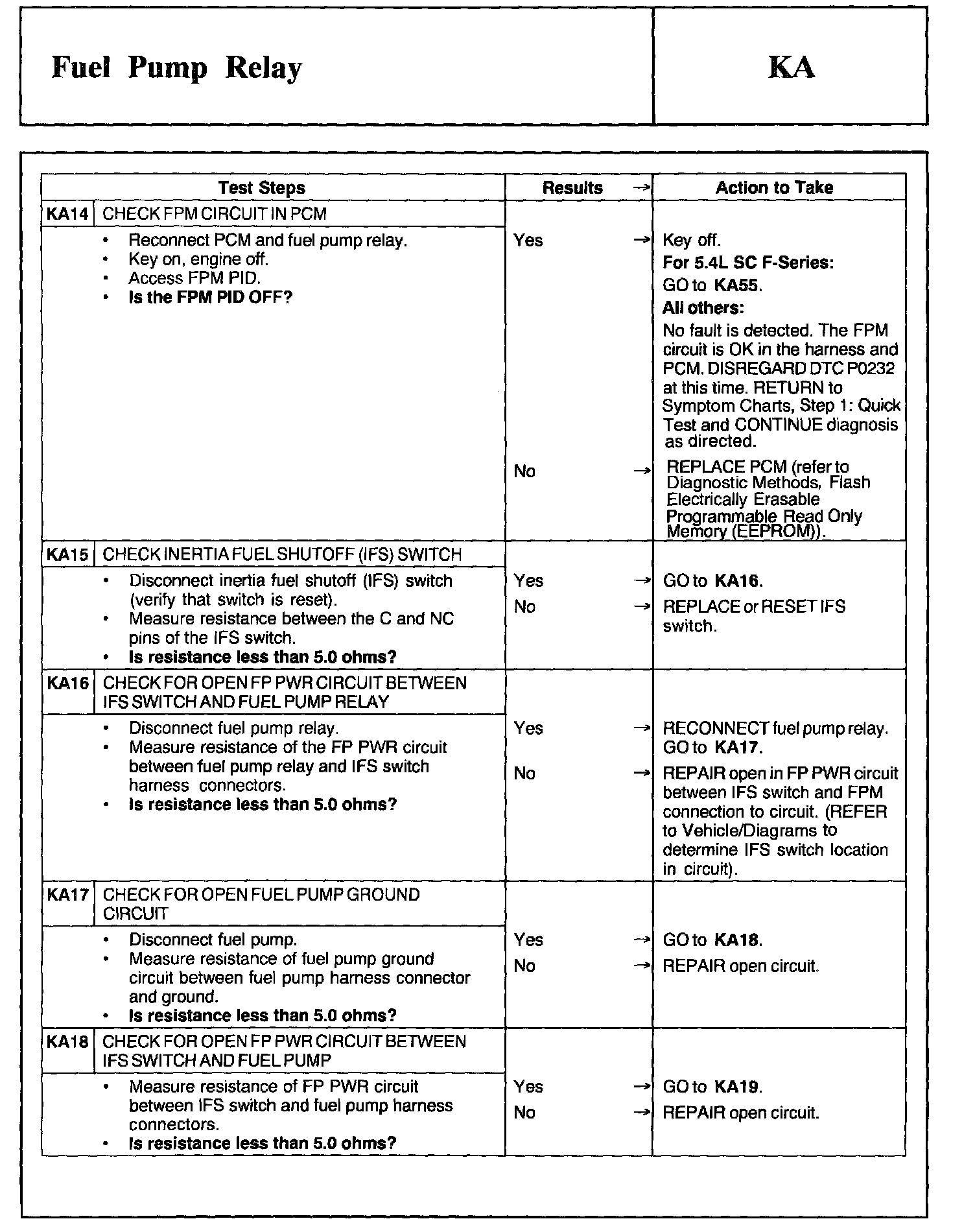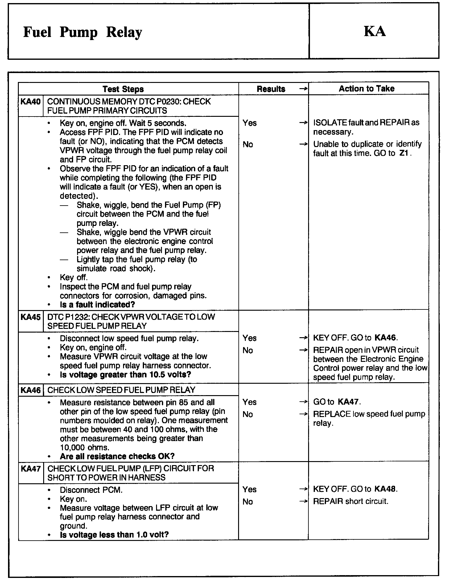 Home >> Ford >> 2002 >> Excursion 4WD V10-6.8L >> Repair and Diagnosis >> Powertrain Management >> Computers and Control Systems >> Testing and Inspection >> Pinpoint Tests >> Tests KA: Fuel Pump Relay