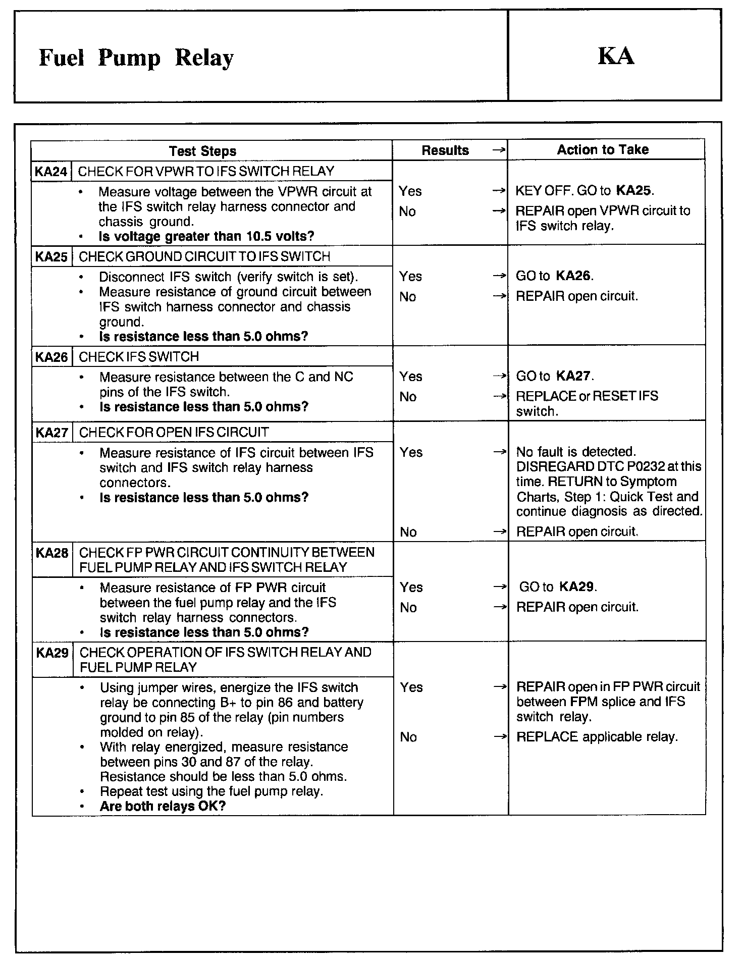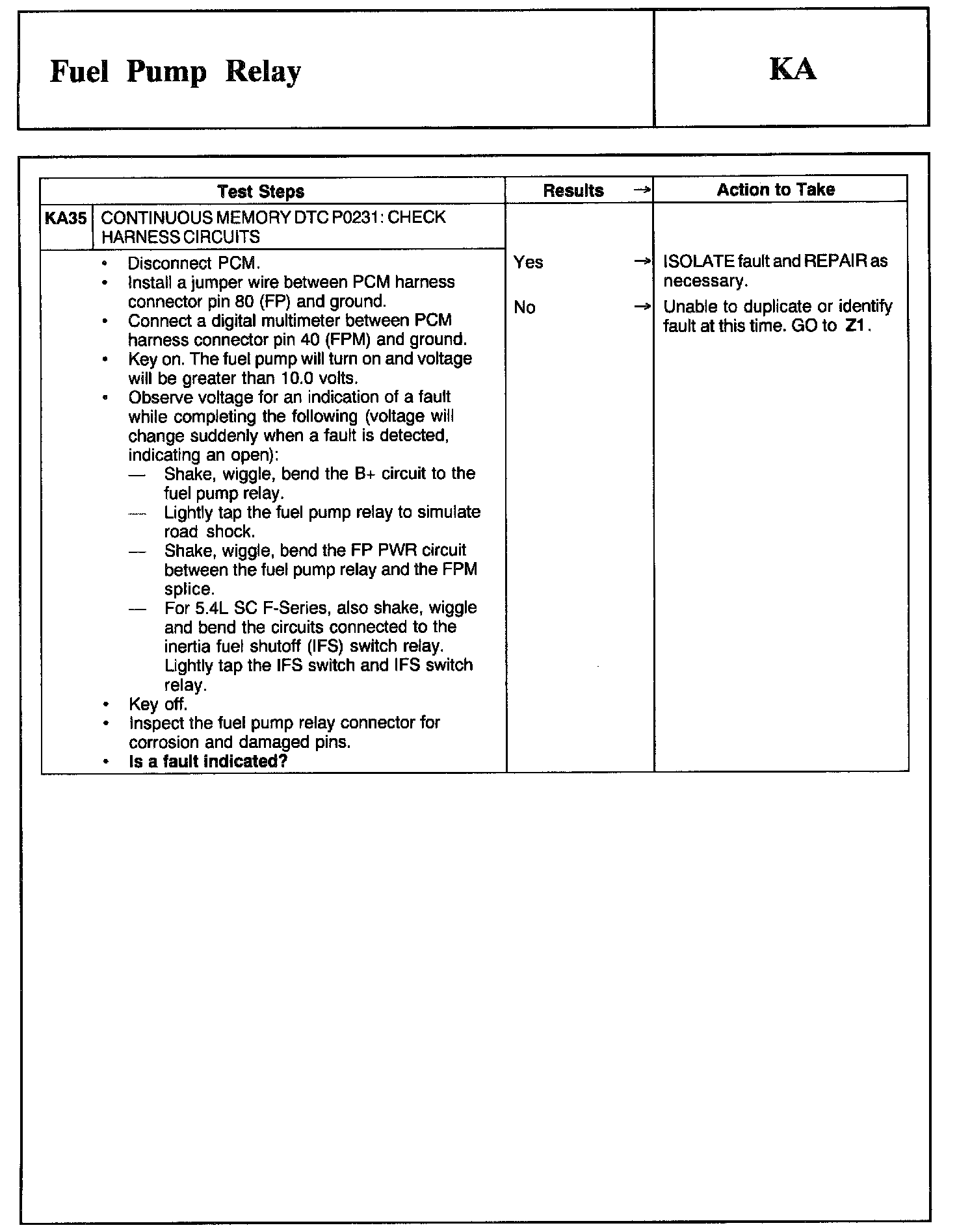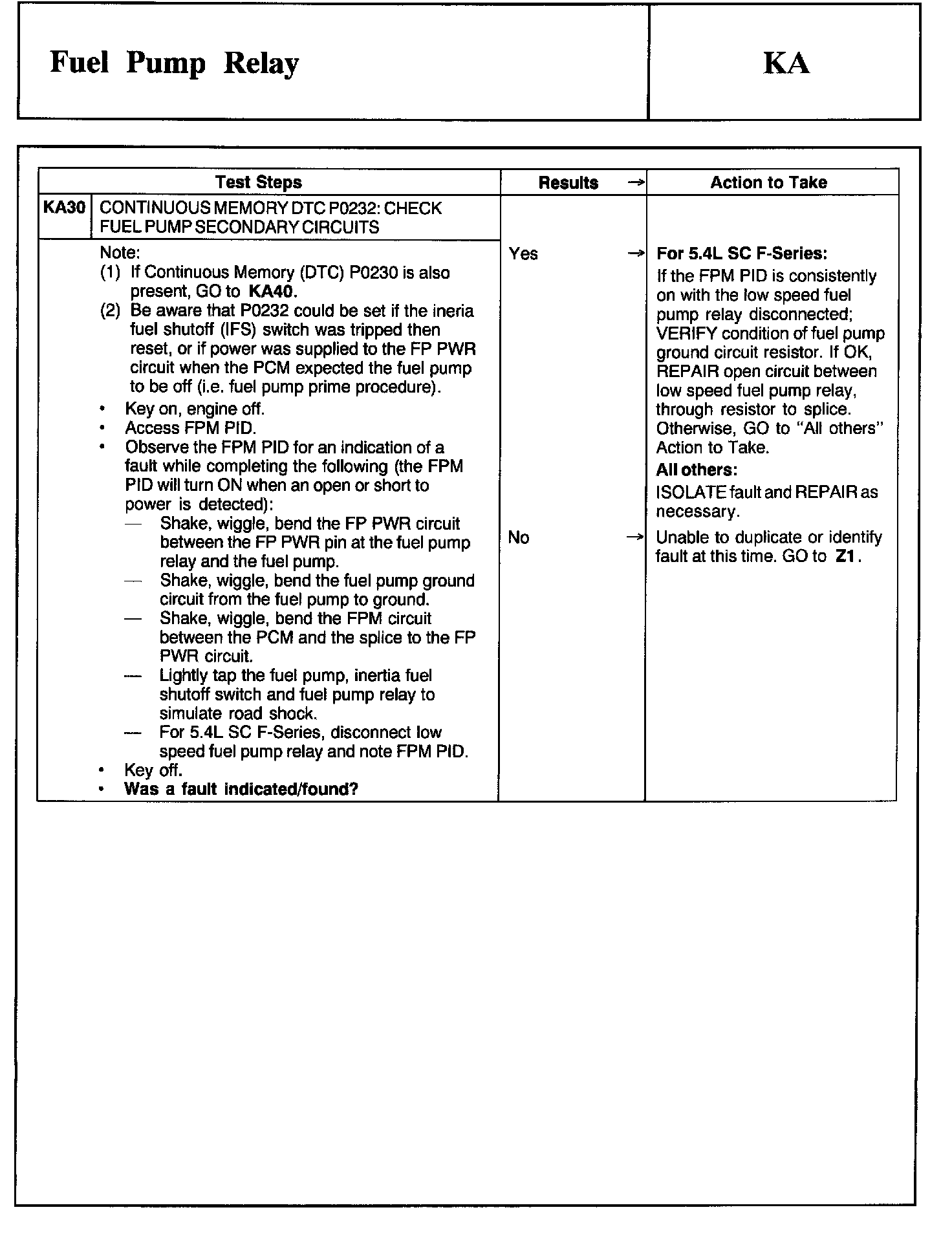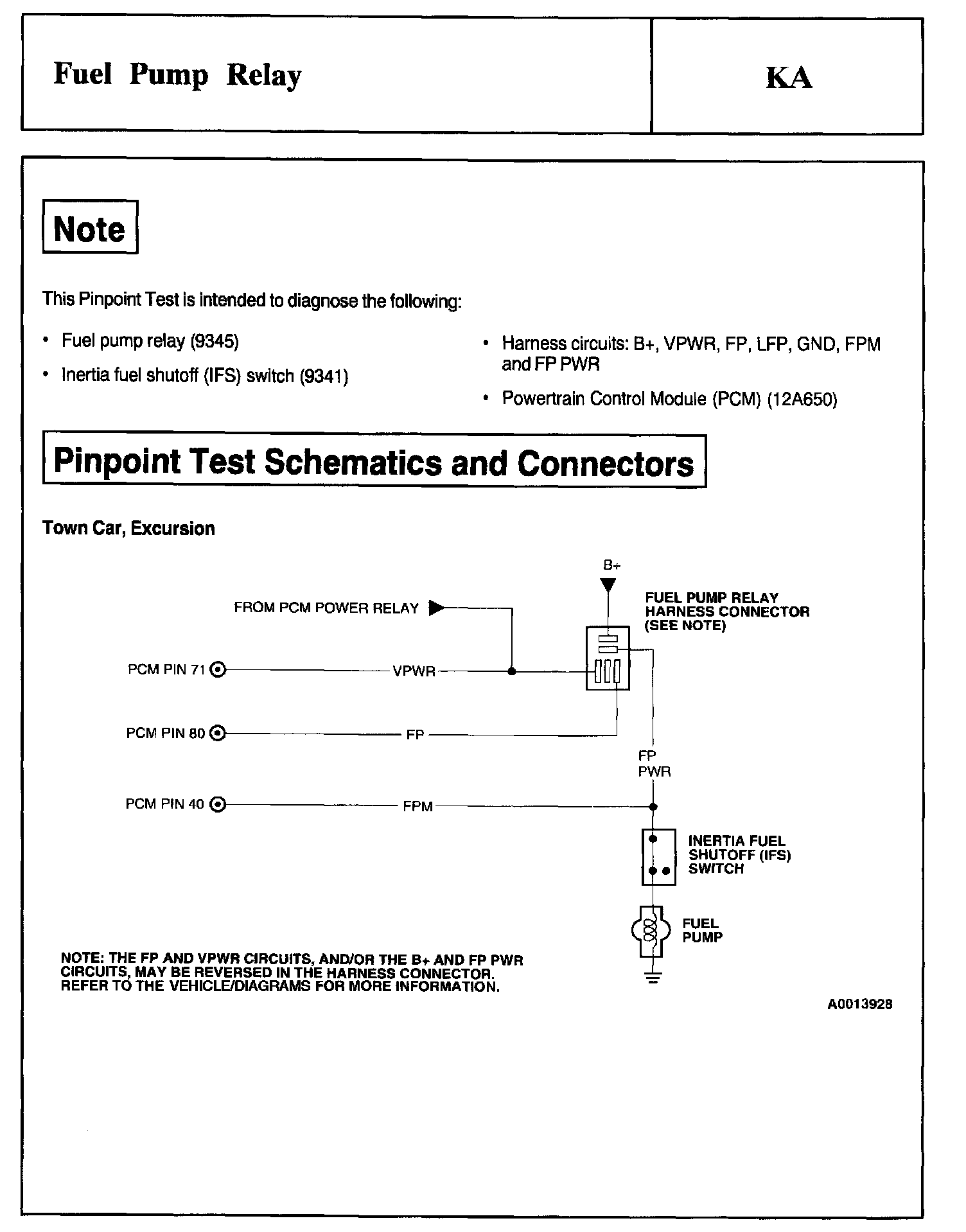 Home >> Ford >> 2002 >> Excursion 4WD V10-6.8L >> Repair and Diagnosis >> Powertrain Management >> Computers and Control Systems >> Testing and Inspection >> Pinpoint Tests >> Tests KA: Fuel Pump Relay