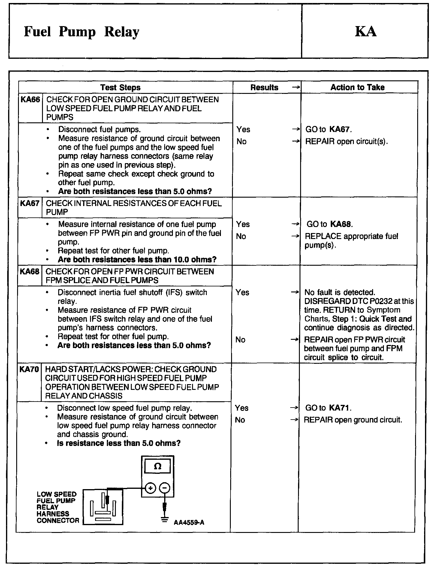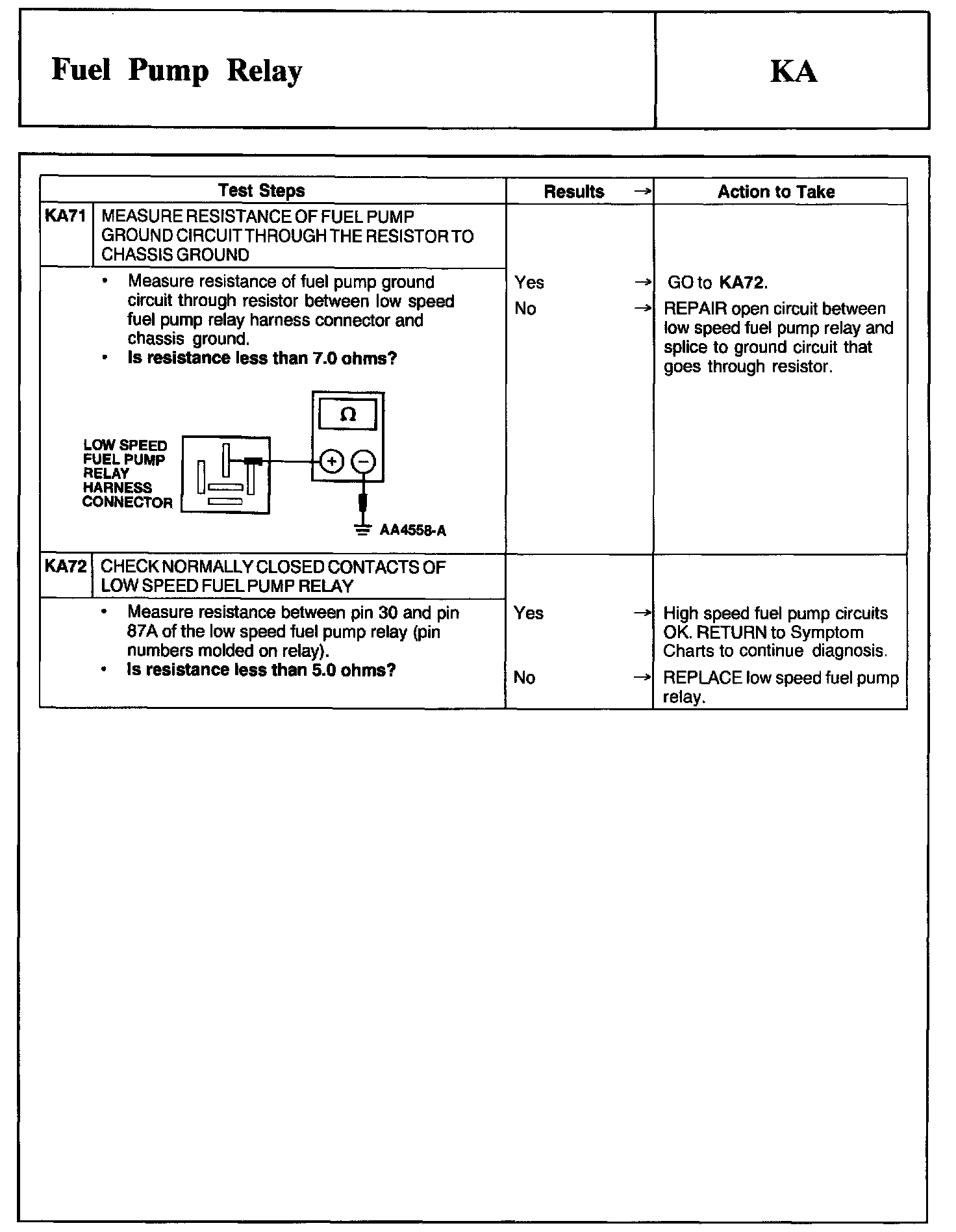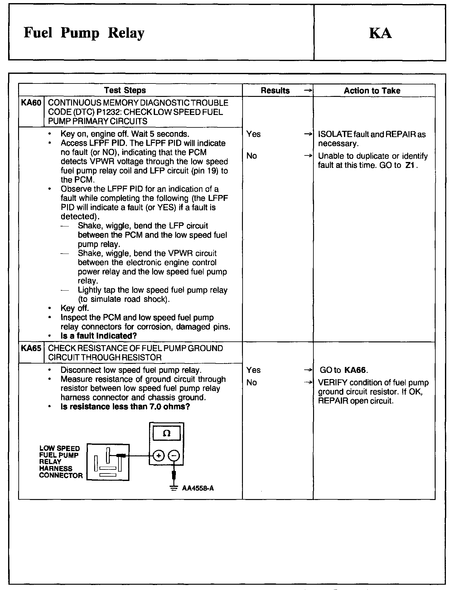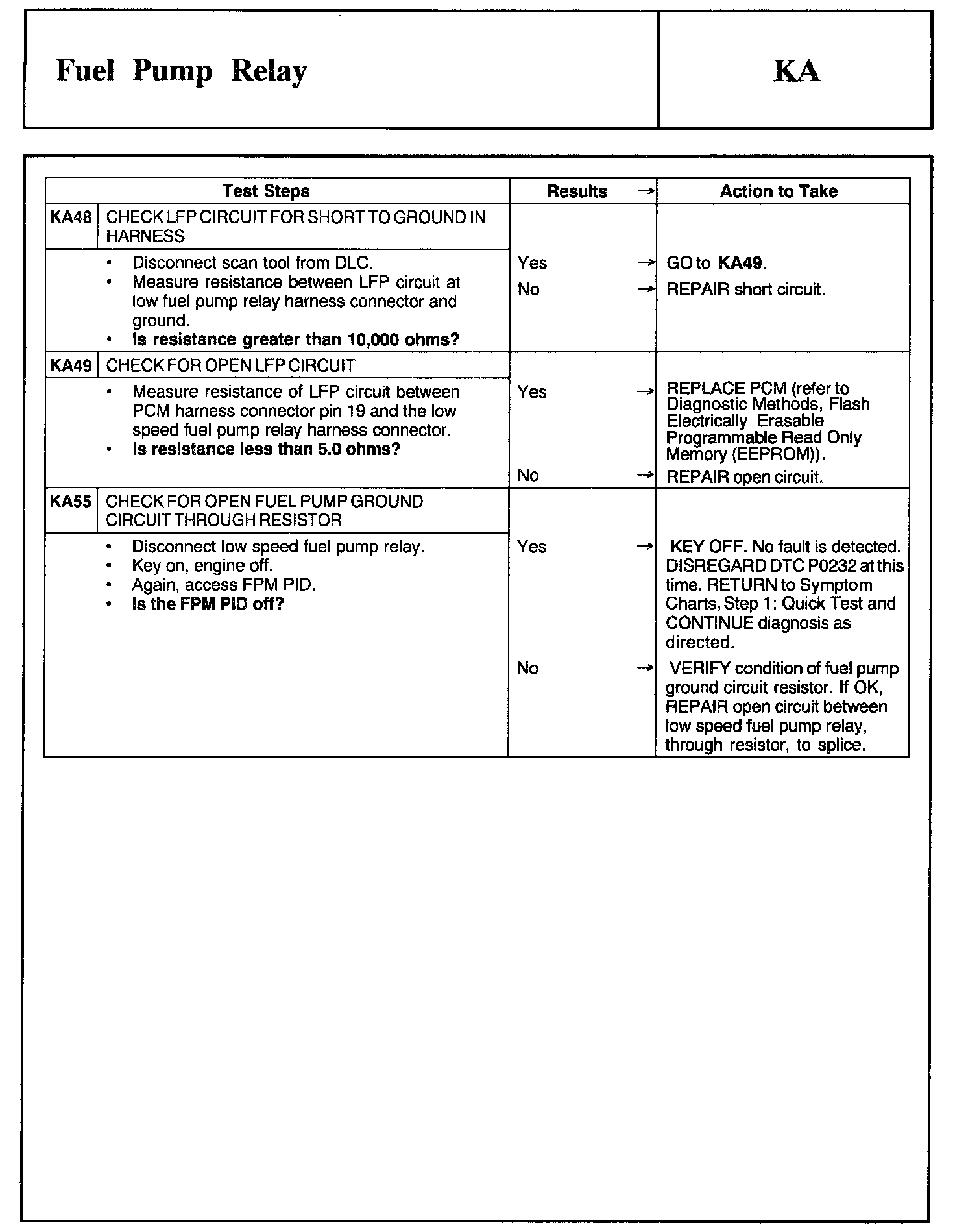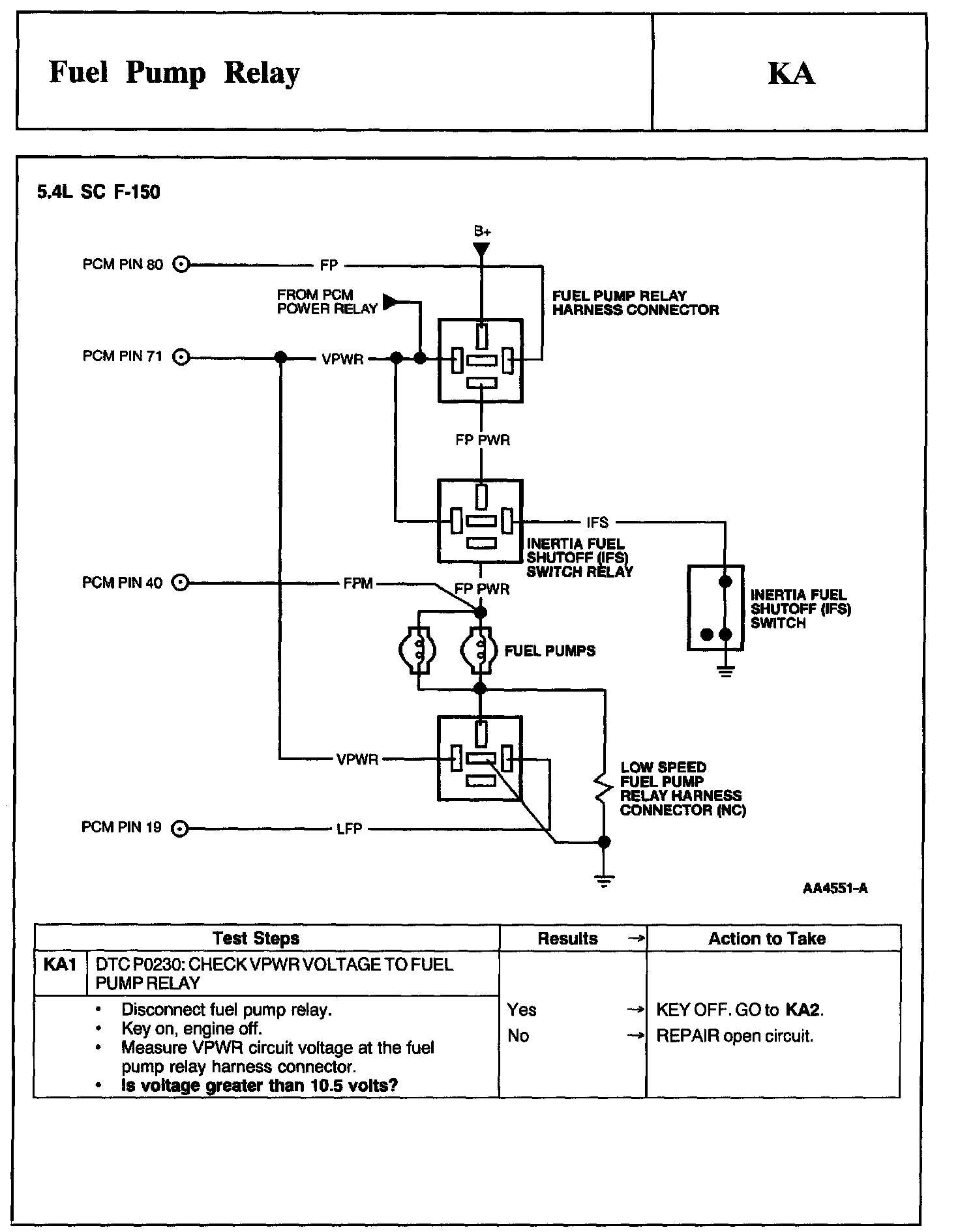 Home >> Ford >> 2002 >> Excursion 4WD V10-6.8L >> Repair and Diagnosis >> Powertrain Management >> Computers and Control Systems >> Testing and Inspection >> Pinpoint Tests >> Tests KA: Fuel Pump Relay