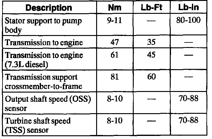 Torque Specifications