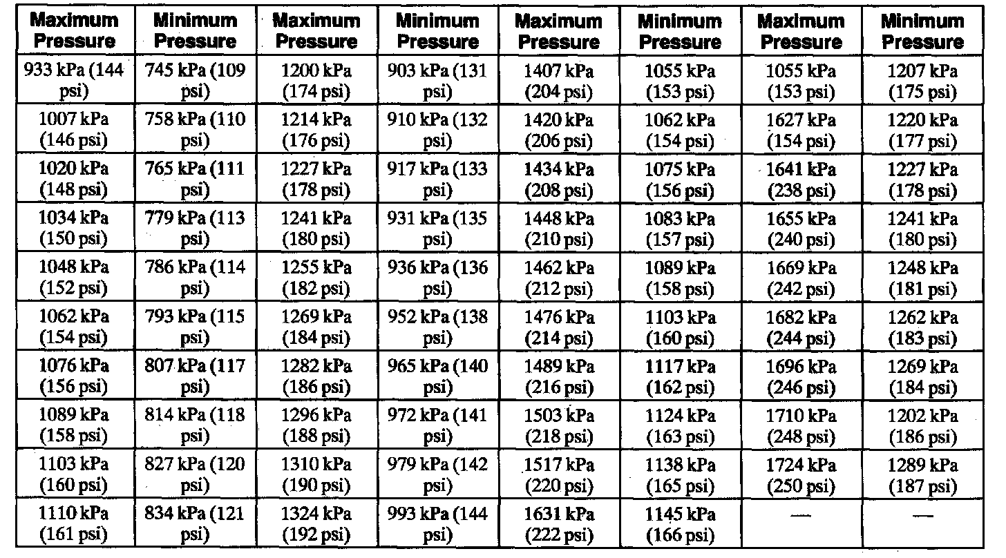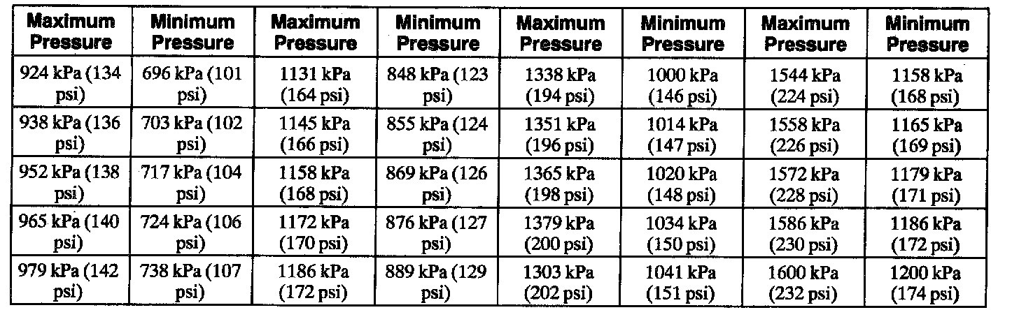 Compression Pressure Limit Chart