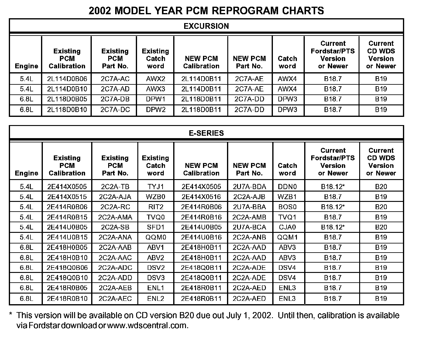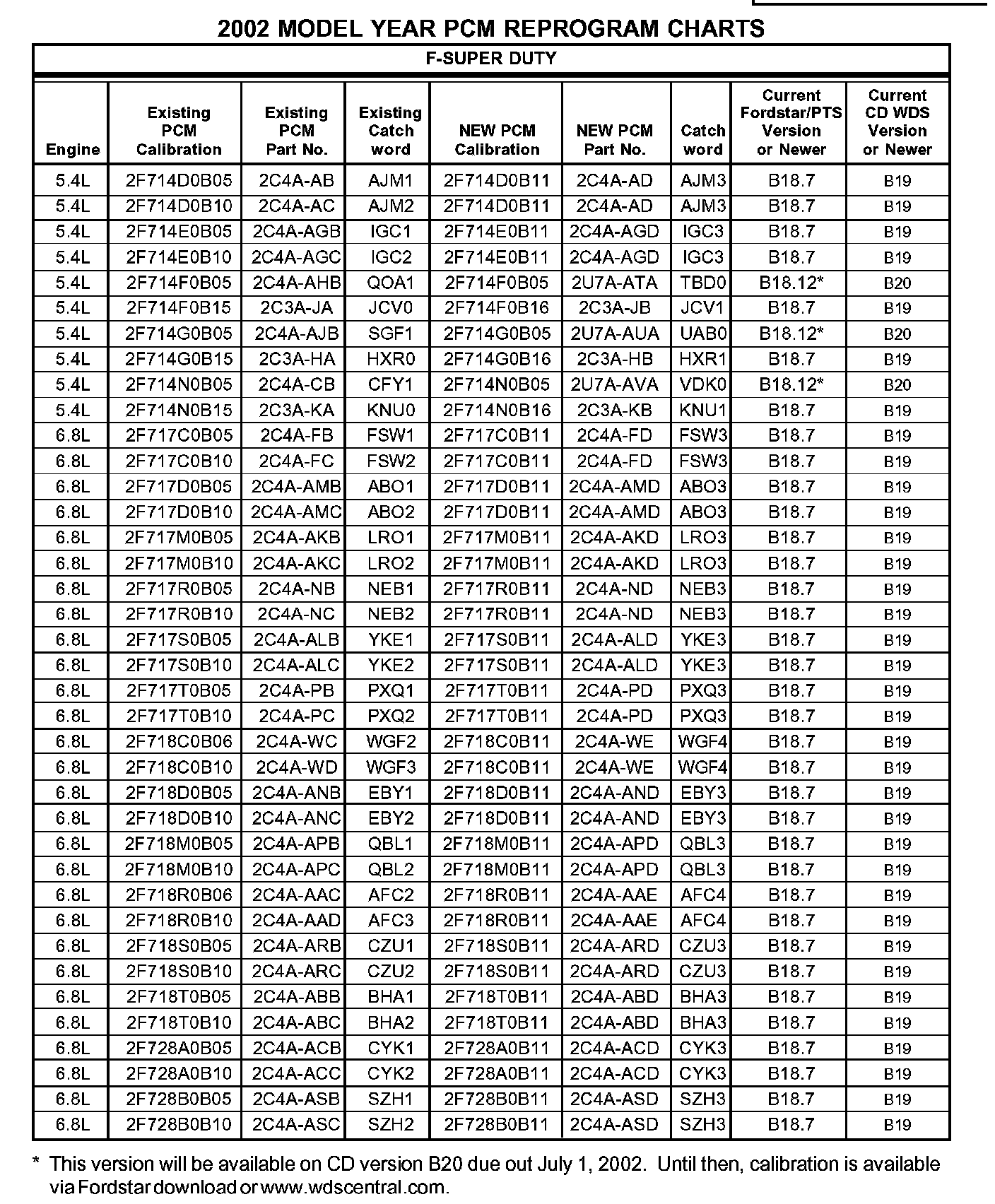 1. NOTE: If you determine that the existing PCM calibration is already at the new level (or later) according to the chart, no reprogramming is necessary.
