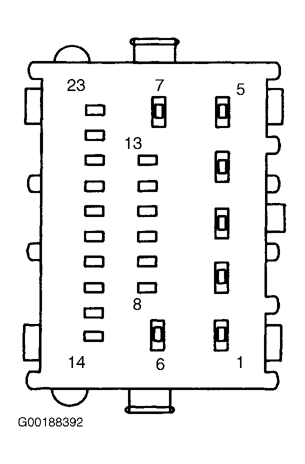 - Turn ignition switch to LOCK. Disconnect Generic Electronic Module (GEM) connector C103. Measure voltage between harness connector C103 terminal No. 5 (Orange/Green wire) and ground. Measure voltage between harness connectors C103 terminal No. 1 (Orange/White wire) and ground. See Fig 1. If battery voltage is present, go to next step. If battery voltage is not present, repair power supply circuits. See POWER DISTRIBUTION in SYSTEM WIRING DIAGRAMS article in ELECTRICAL.