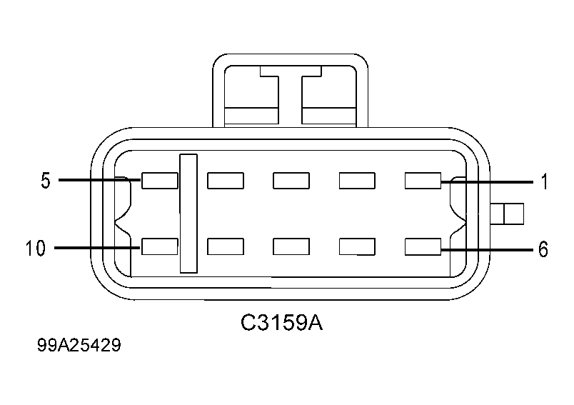 Access and disconnect both RCM connectors. See RESTRAINTS CONTROL MODULE (RCM) under REMOVAL & INSTALLATION. Measure resistance between ground and OCS connector C3159A, terminal No. 5 (Dark Green/Violet wire, circuit No. 1556). Measure resistance between ground and OCS connector C3159A, terminal No. 10 (Dark Blue/Orange wire, circuit No. 1557). If resistance in both circuits is more than one megohm, go to next step. If resistance in either circuit is less than one megohm, repair short to ground in appropriate wire. Go to step 12 . - Check for short to battery between OCS & RCM