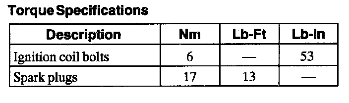 Torque Specifications:
