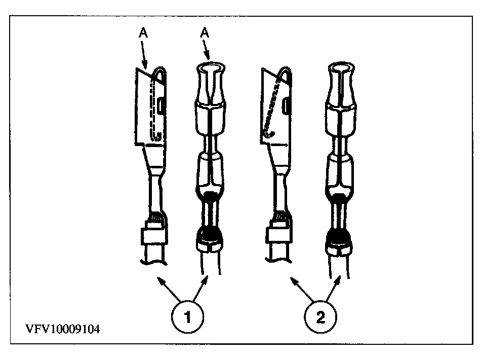 Any probe entering the terminal may enlarge the contact spring opening creating an intermittent signal. Insert the correct mating terminal (Location A) from the service kit and feel for a loose fit.