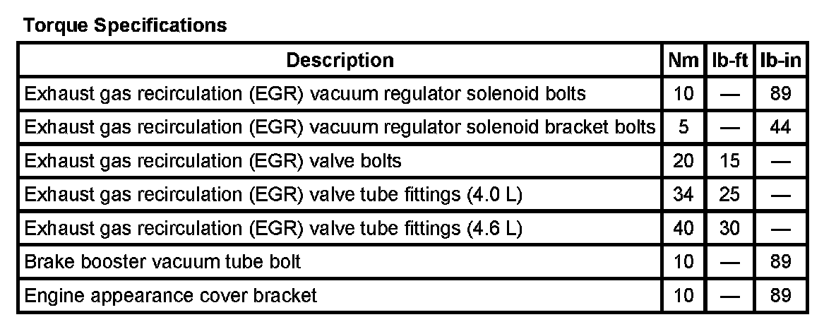 Torque Specifications: