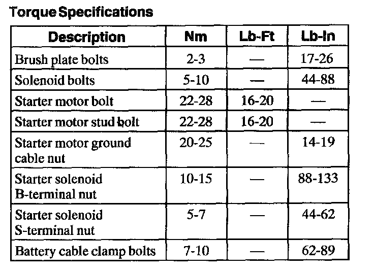 Torque Specifications: