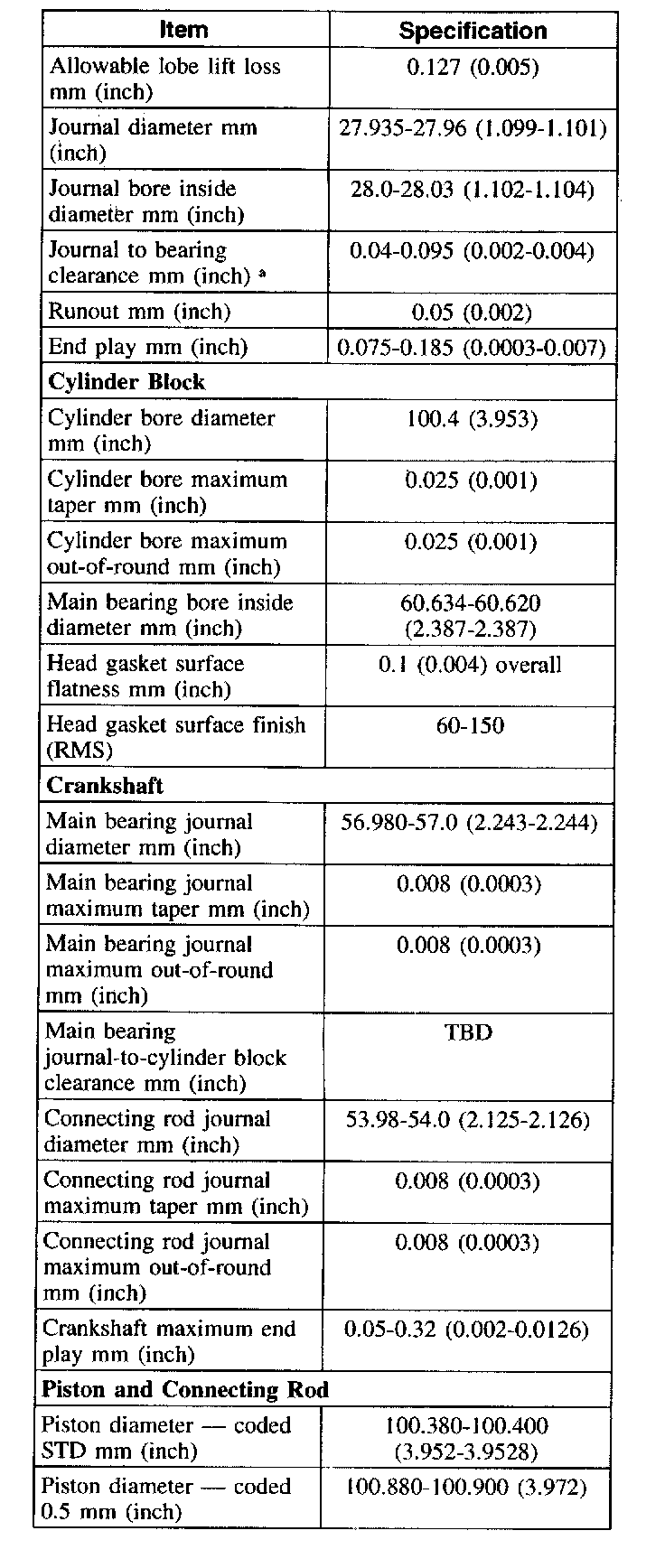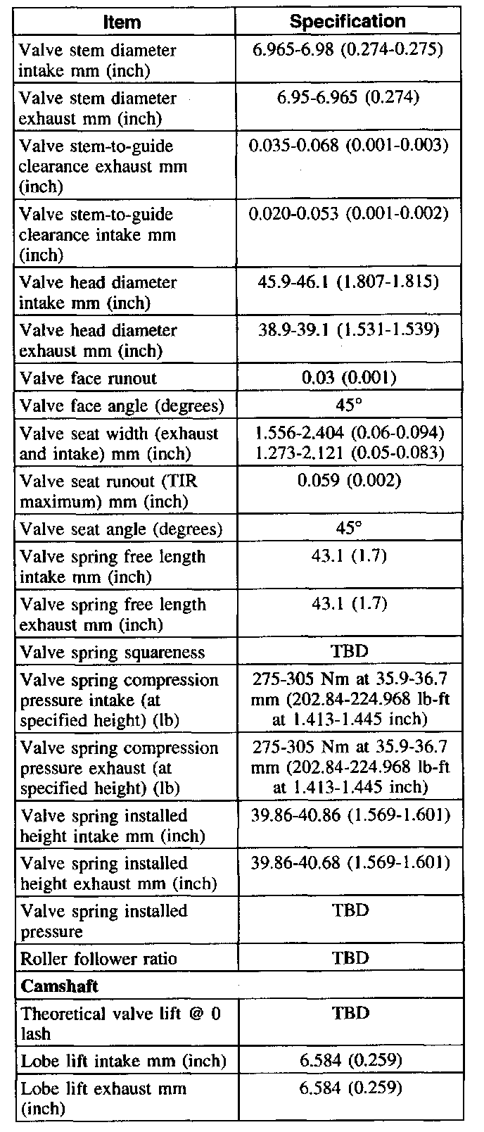 a Tighten camshaft bearing cap bolts to 15 Nm (11 ft. lbs.) when measuring journal clearance.