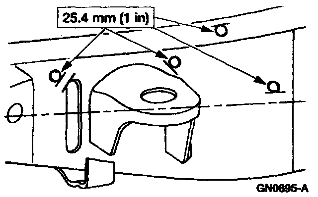 - The drilled hole is at least the specified distance from any other existing bracket or component of the frame.
