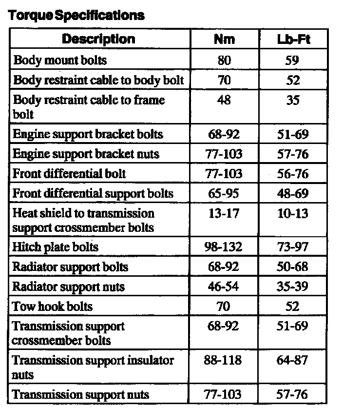 Torque Specifications: