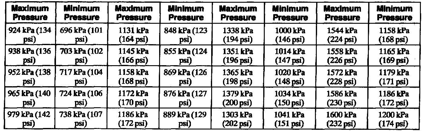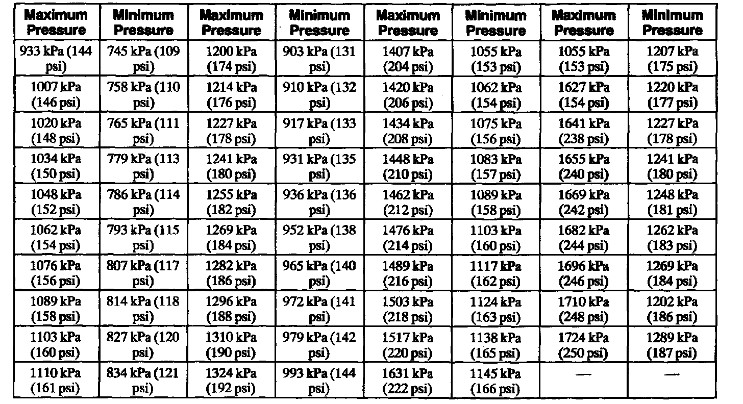 Compression Pressure Limit Chart