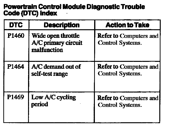 Powertrain Control Module Diagnostic Trouble Code (DTC) Index
