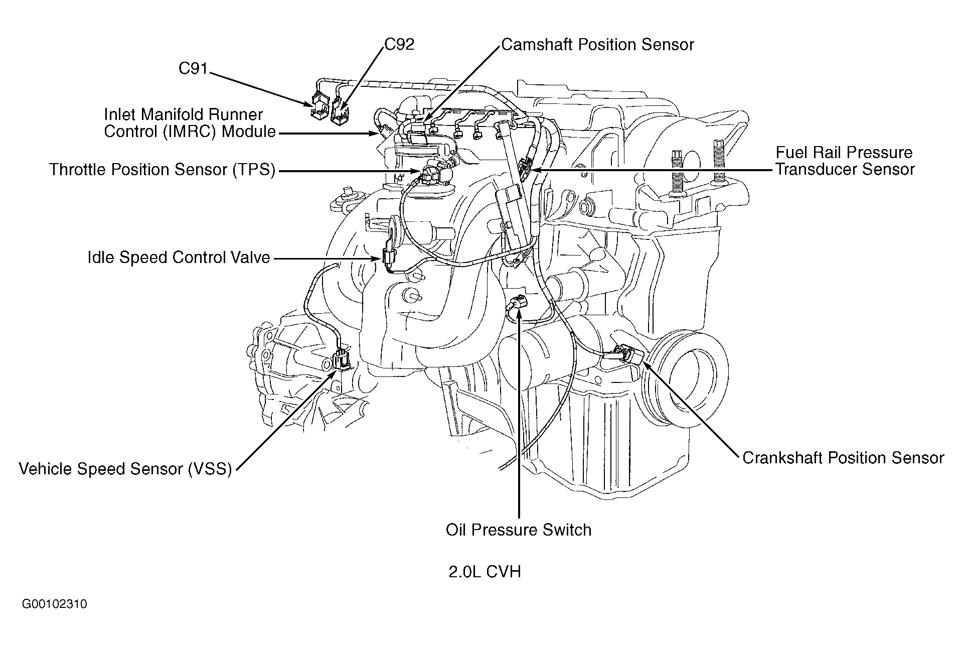Inlet Manifold Runner Control (IMRC) Module (2.0L CVH) On rear of engine. See Figure.