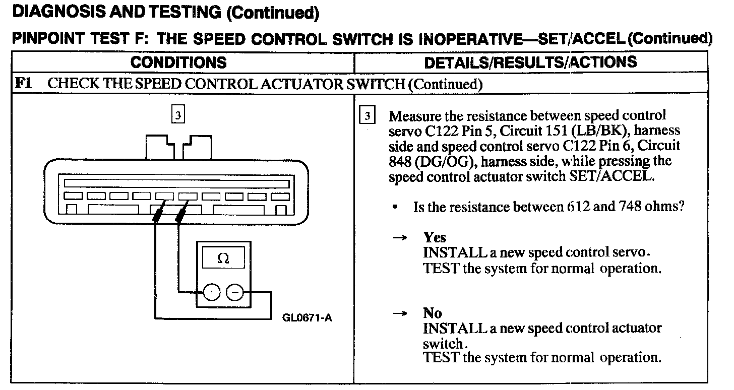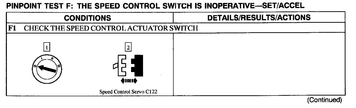 Test F: Speed Control Switch Is Inoperative - Set/Accel