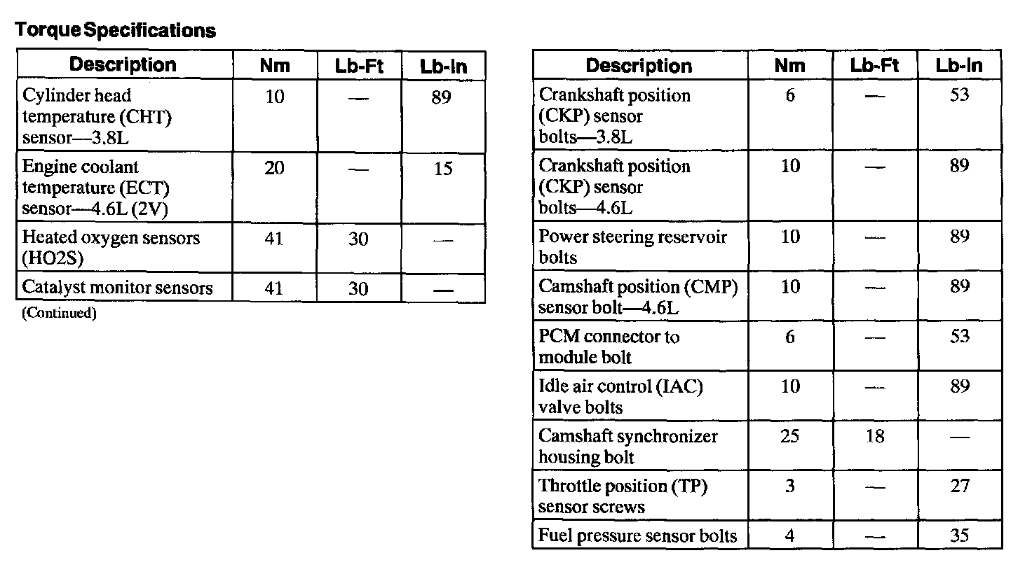 Torque Specifications: