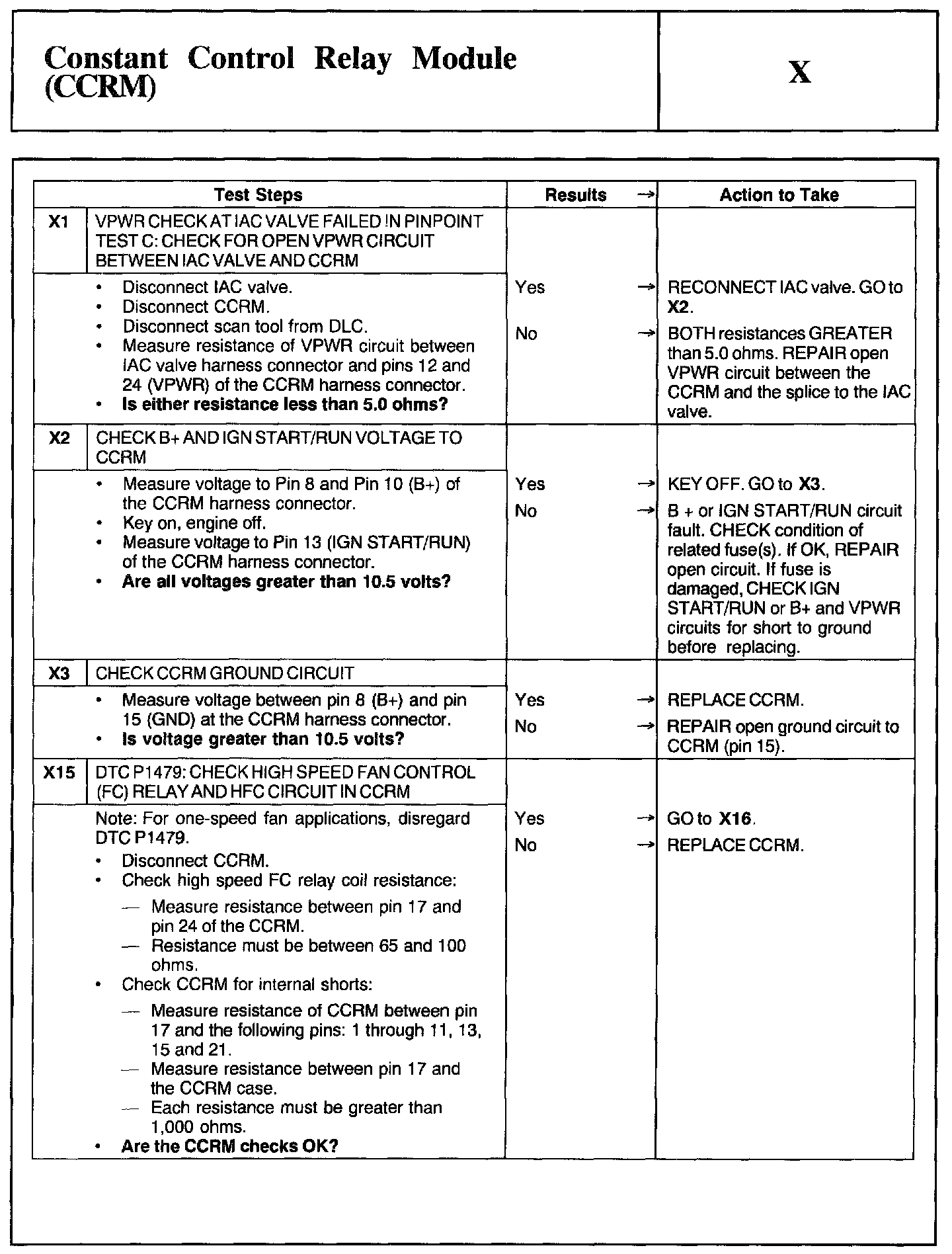 Test X: Constant Control Relay Module (CCRM)