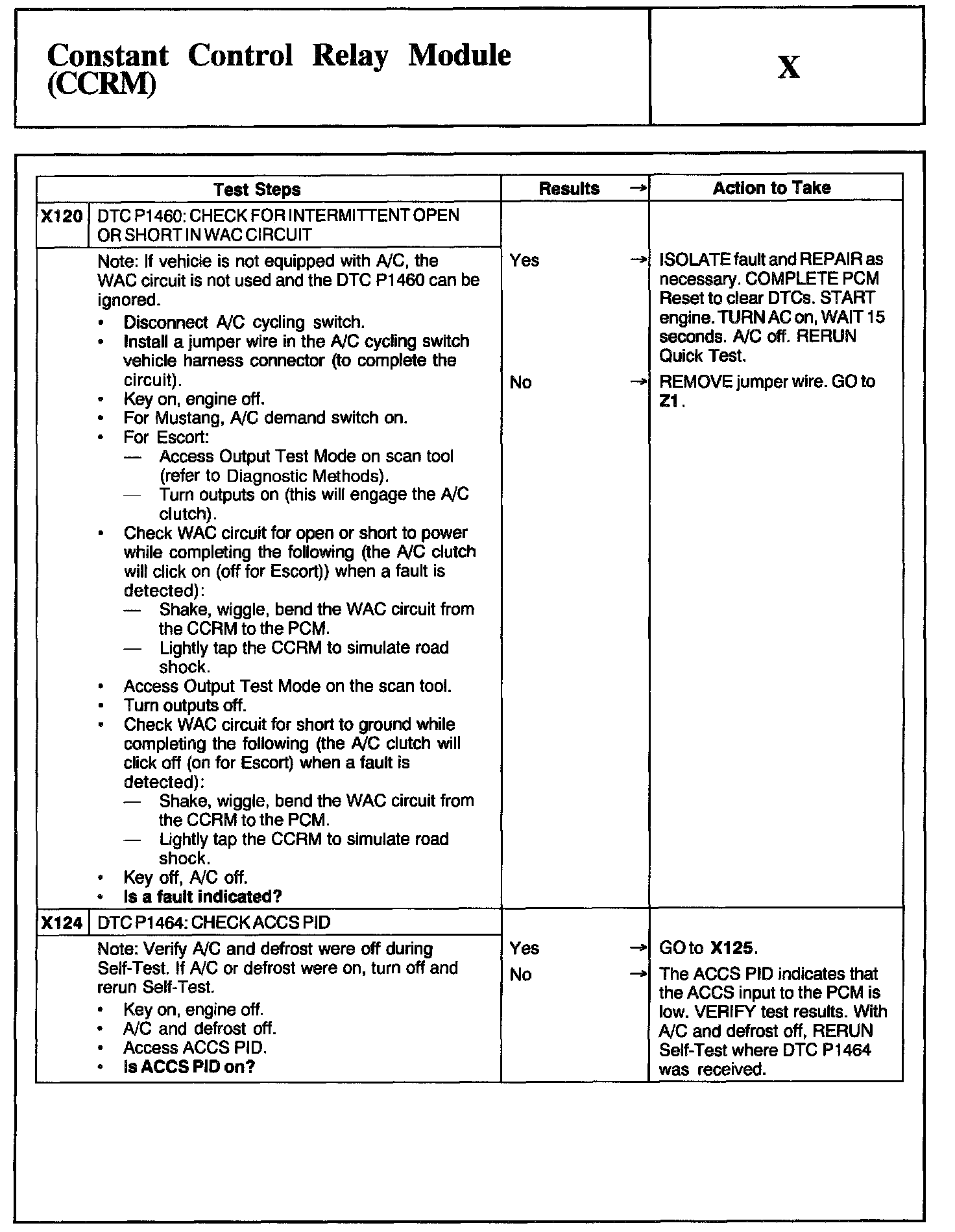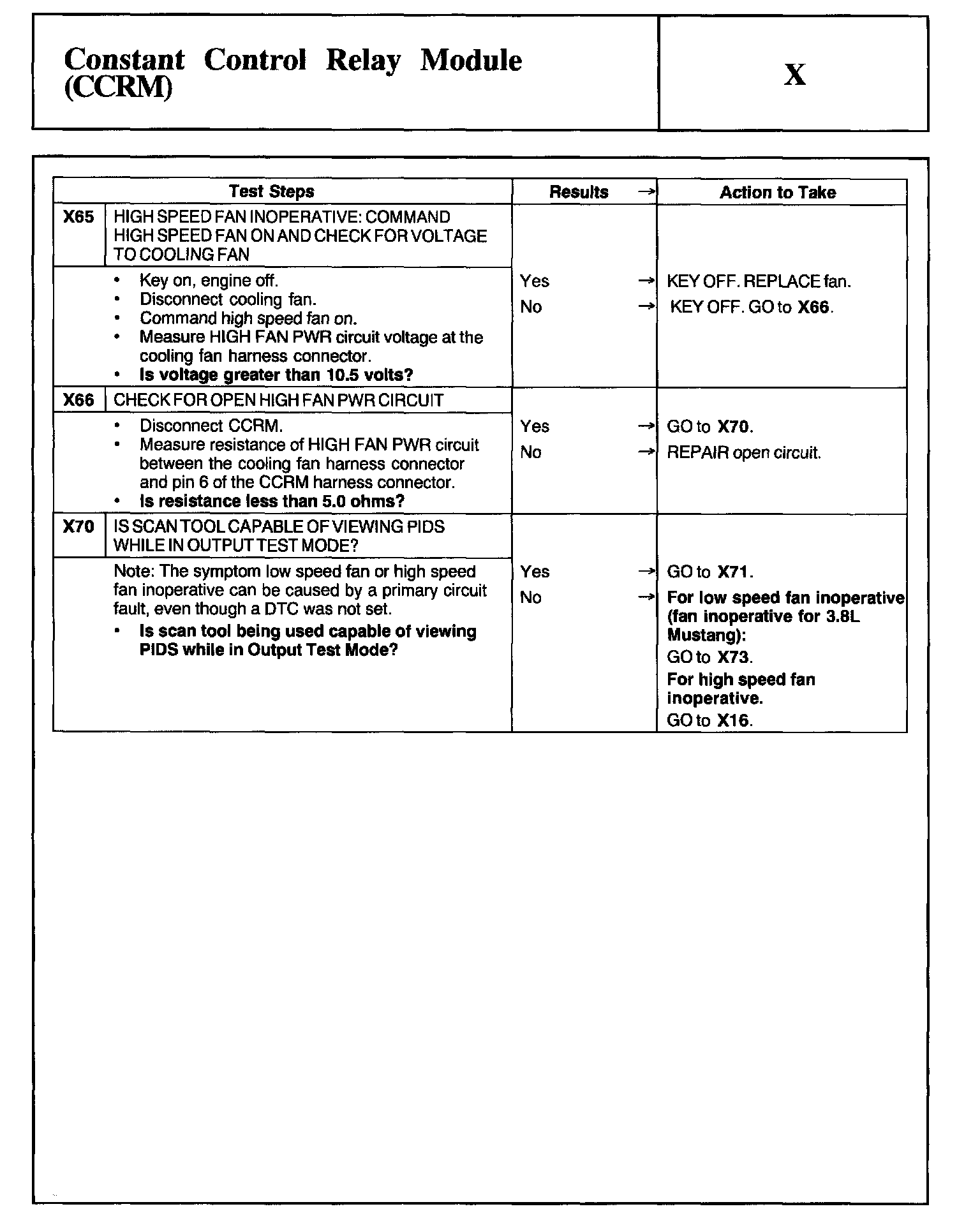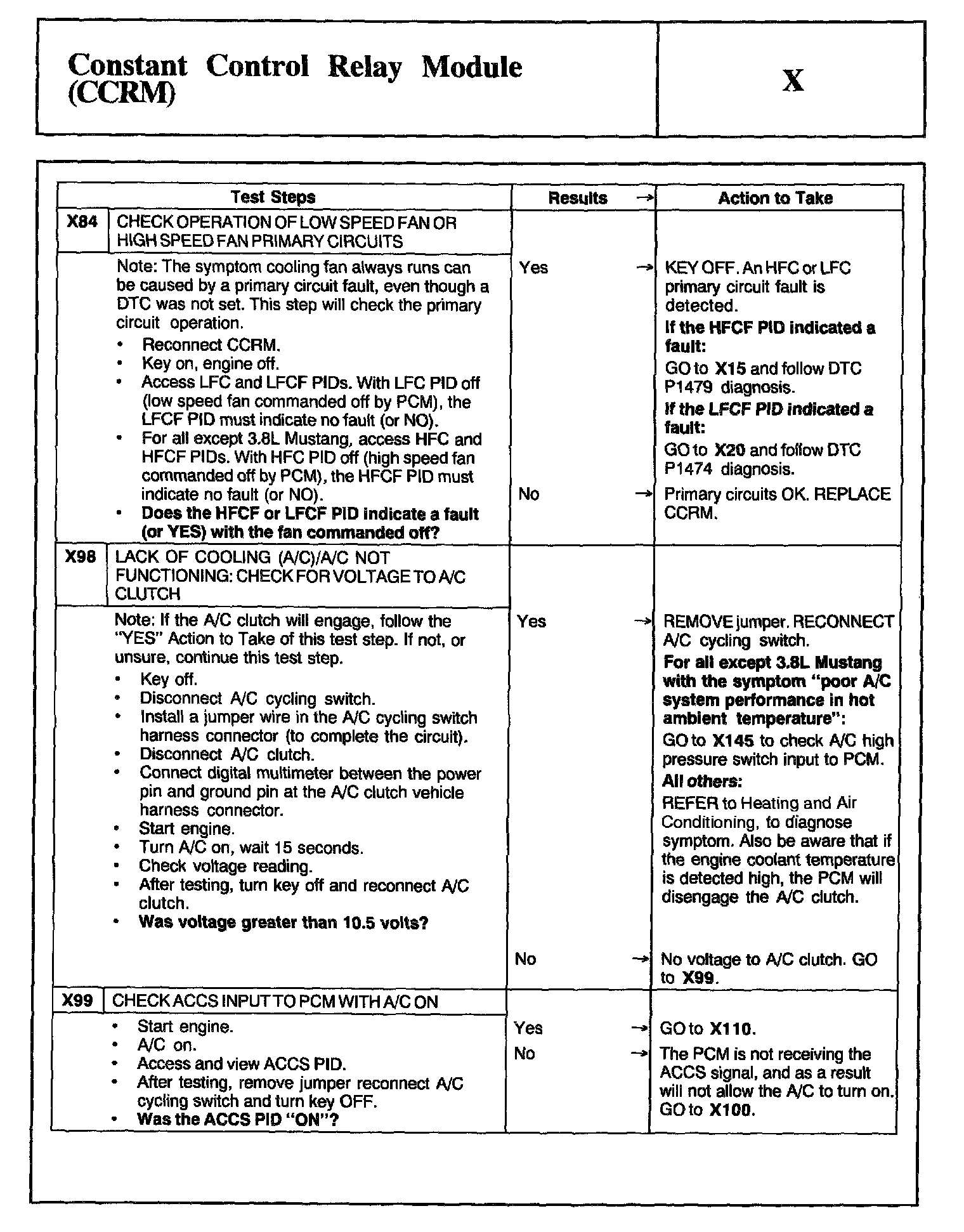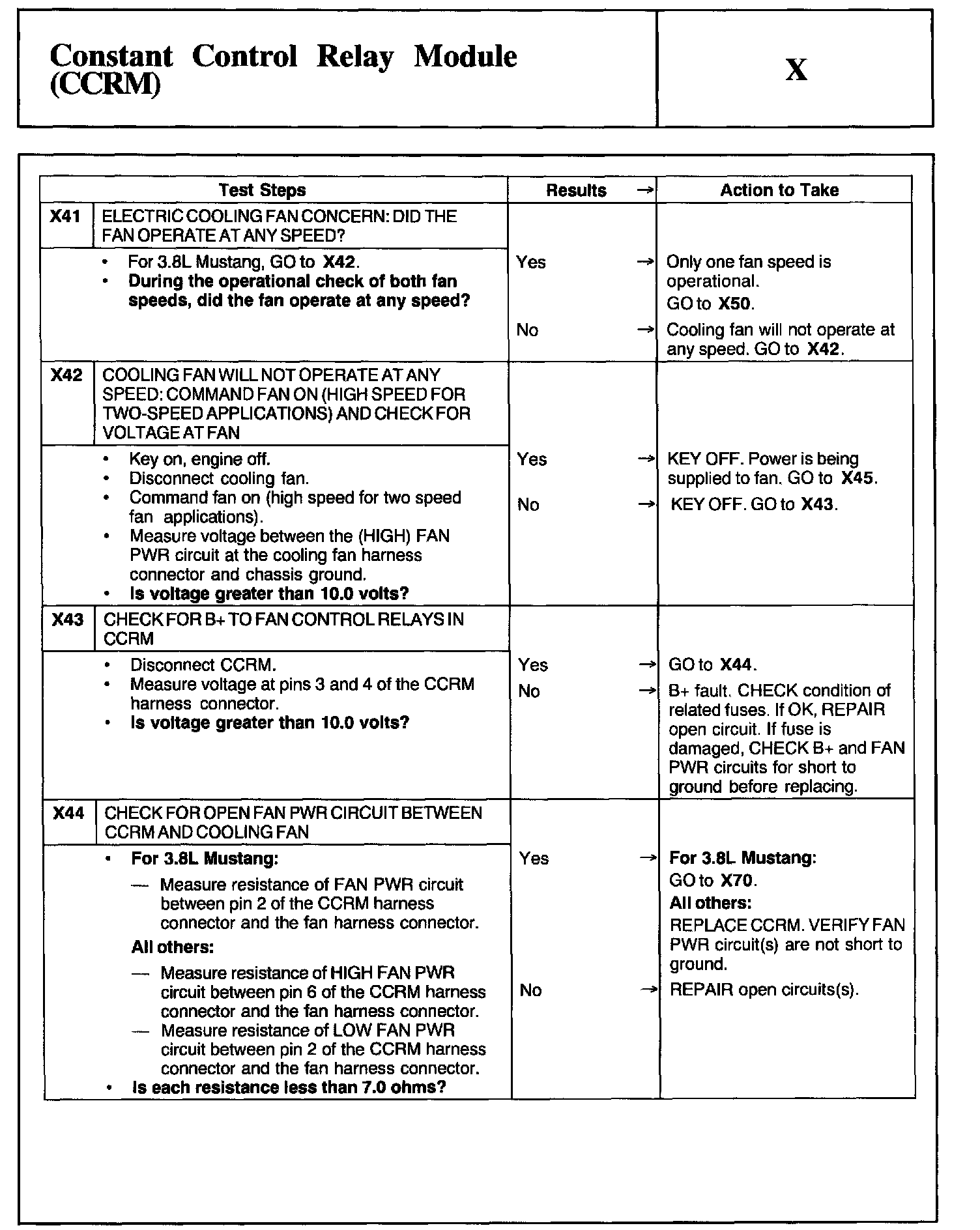 Home >> Ford >> 2002 >> Mustang V6-3.8L VIN 4 >> Repair and Diagnosis >> Powertrain Management >> Computers and Control Systems >> Testing and Inspection >> Pinpoint Tests >> Test X: Constant Control Relay Module (CCRM)