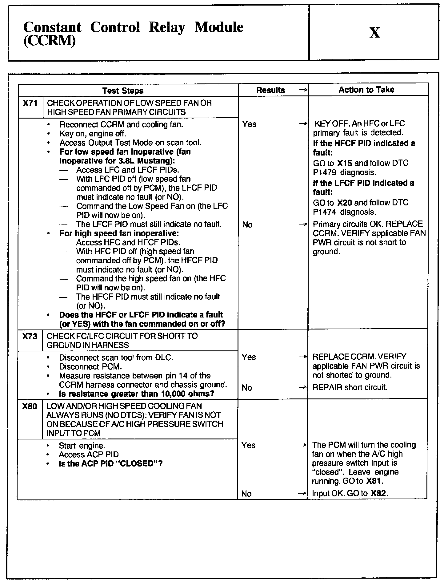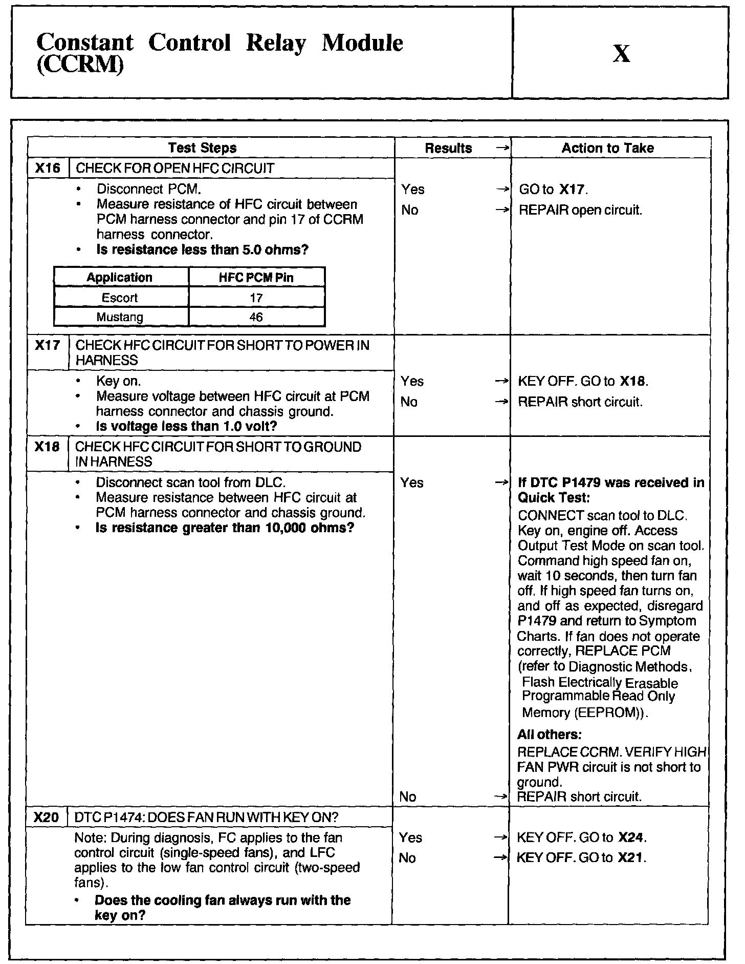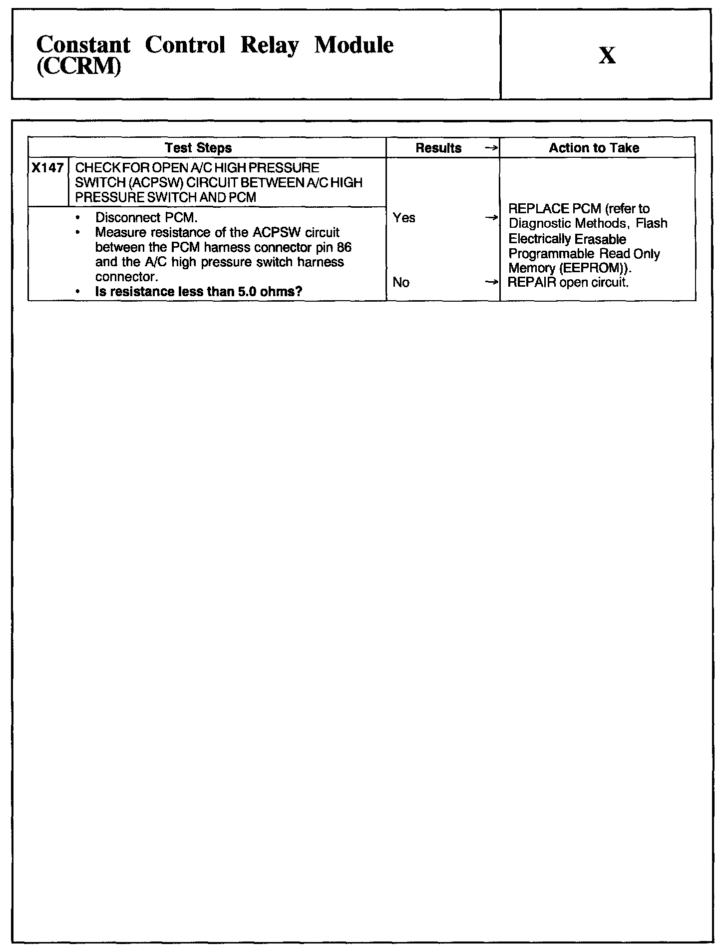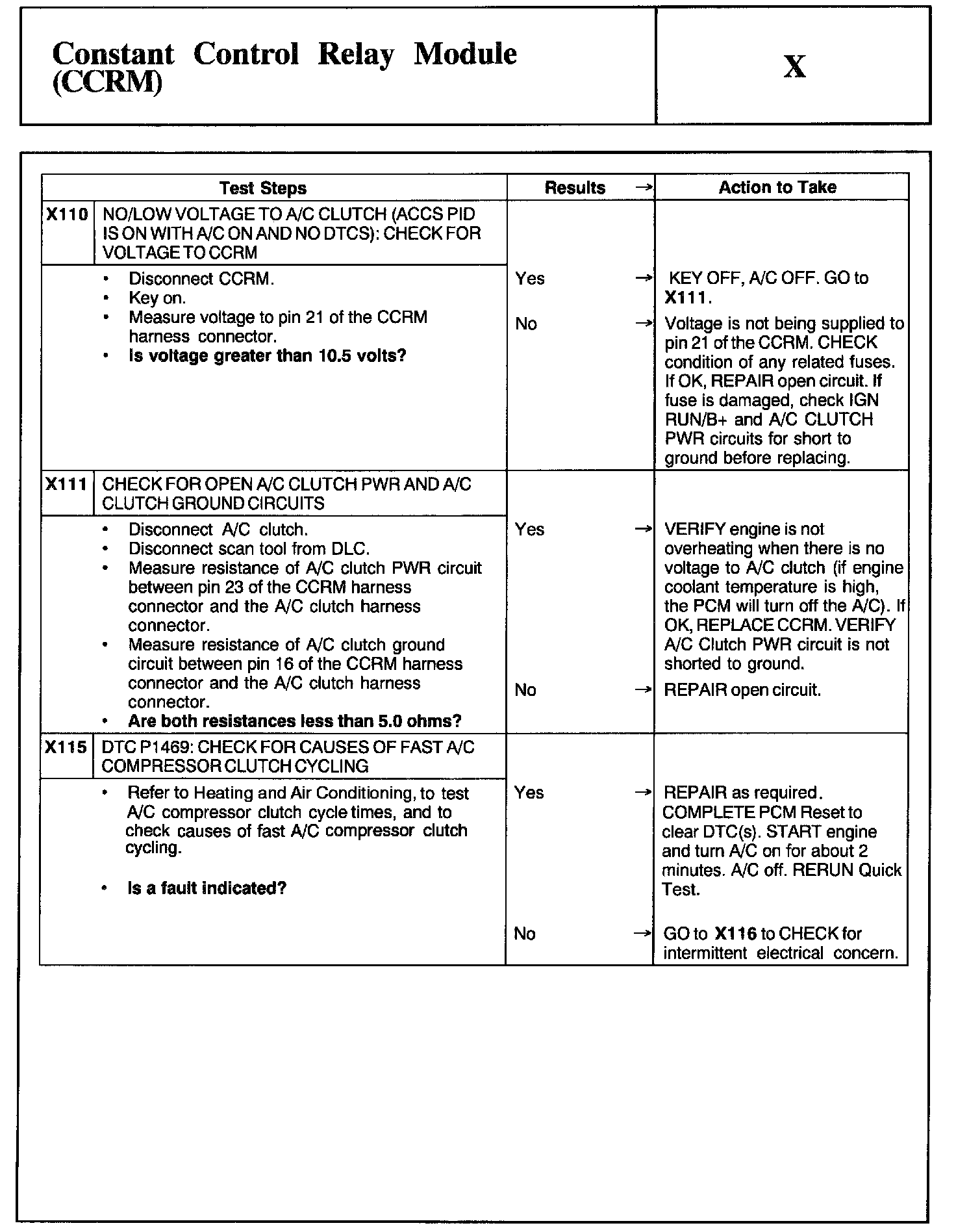 Home >> Ford >> 2002 >> Mustang V6-3.8L VIN 4 >> Repair and Diagnosis >> Powertrain Management >> Computers and Control Systems >> Testing and Inspection >> Pinpoint Tests >> Test X: Constant Control Relay Module (CCRM)