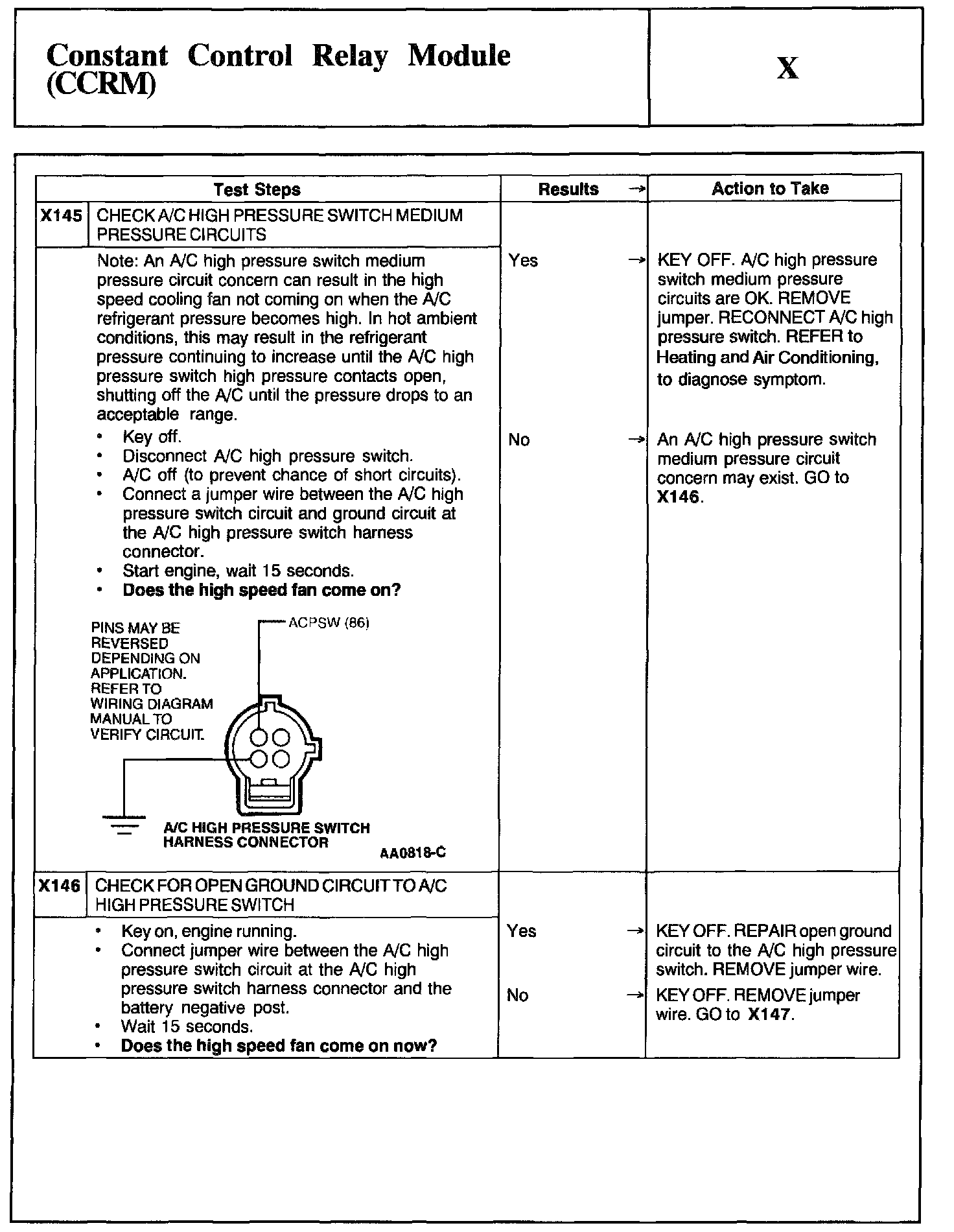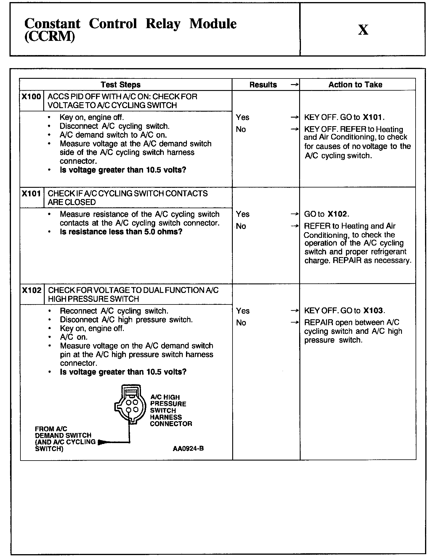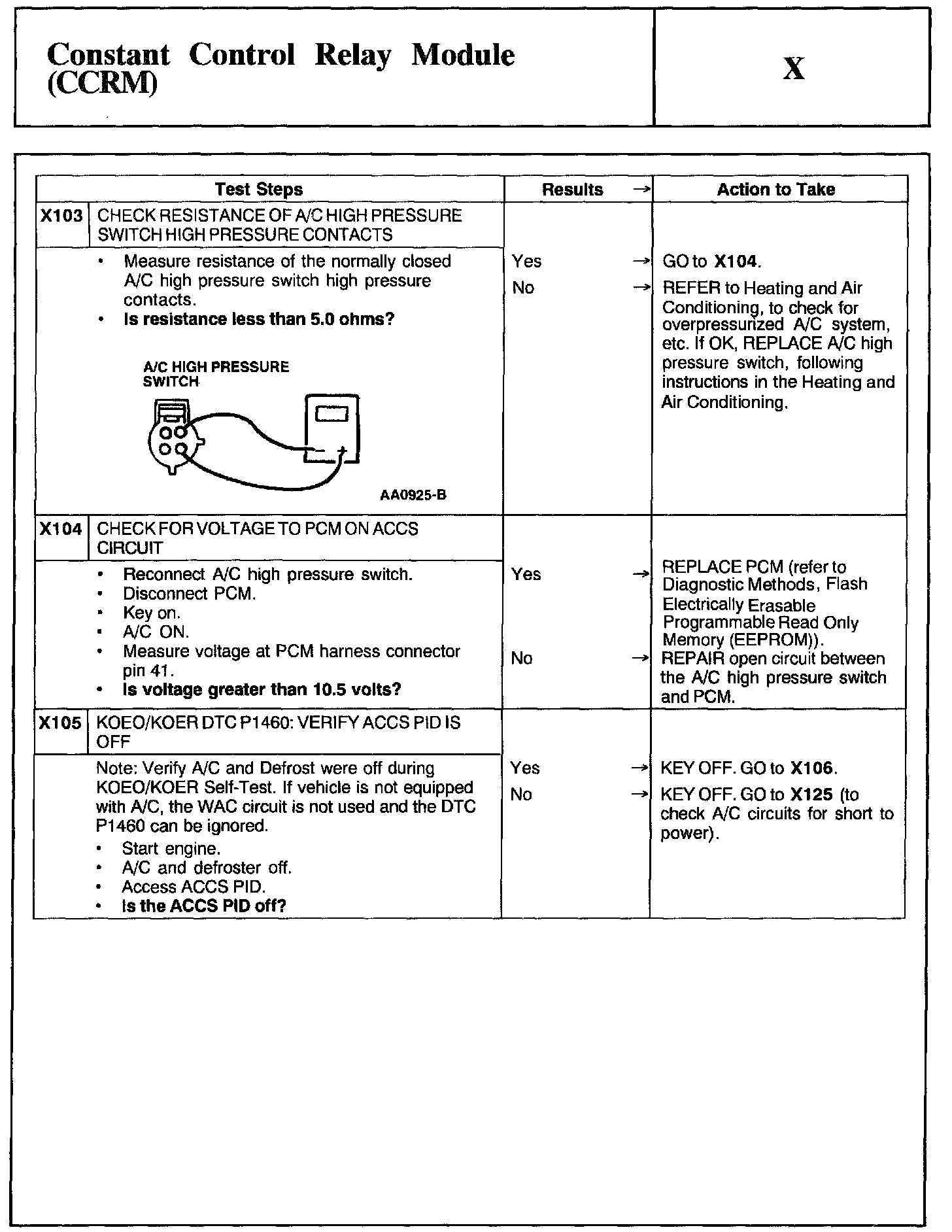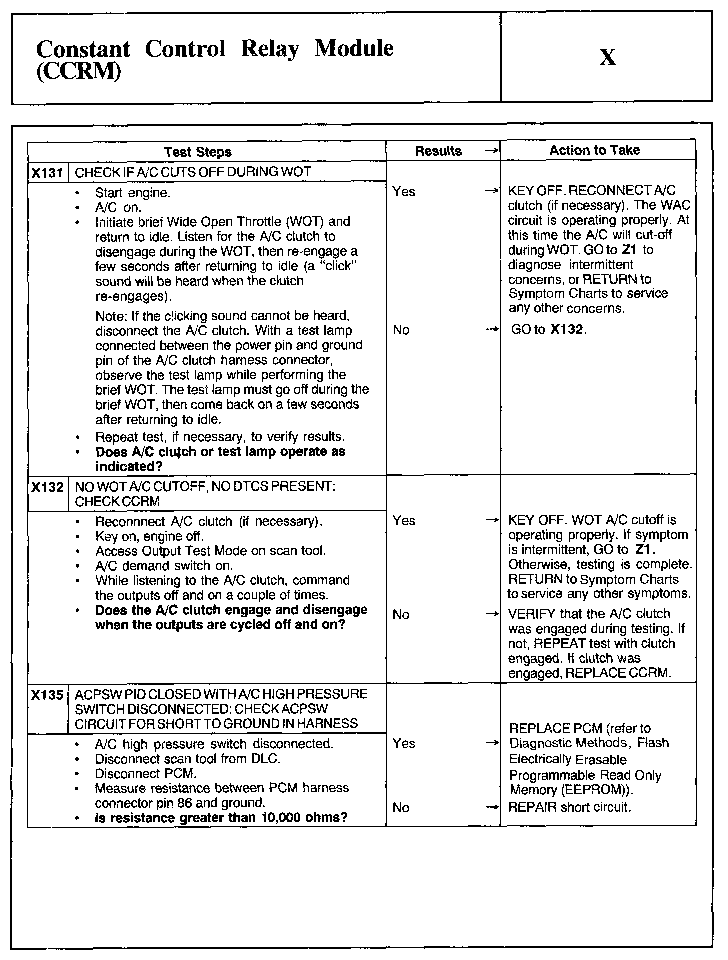 Home >> Ford >> 2002 >> Mustang V6-3.8L VIN 4 >> Repair and Diagnosis >> Powertrain Management >> Computers and Control Systems >> Testing and Inspection >> Pinpoint Tests >> Test X: Constant Control Relay Module (CCRM)