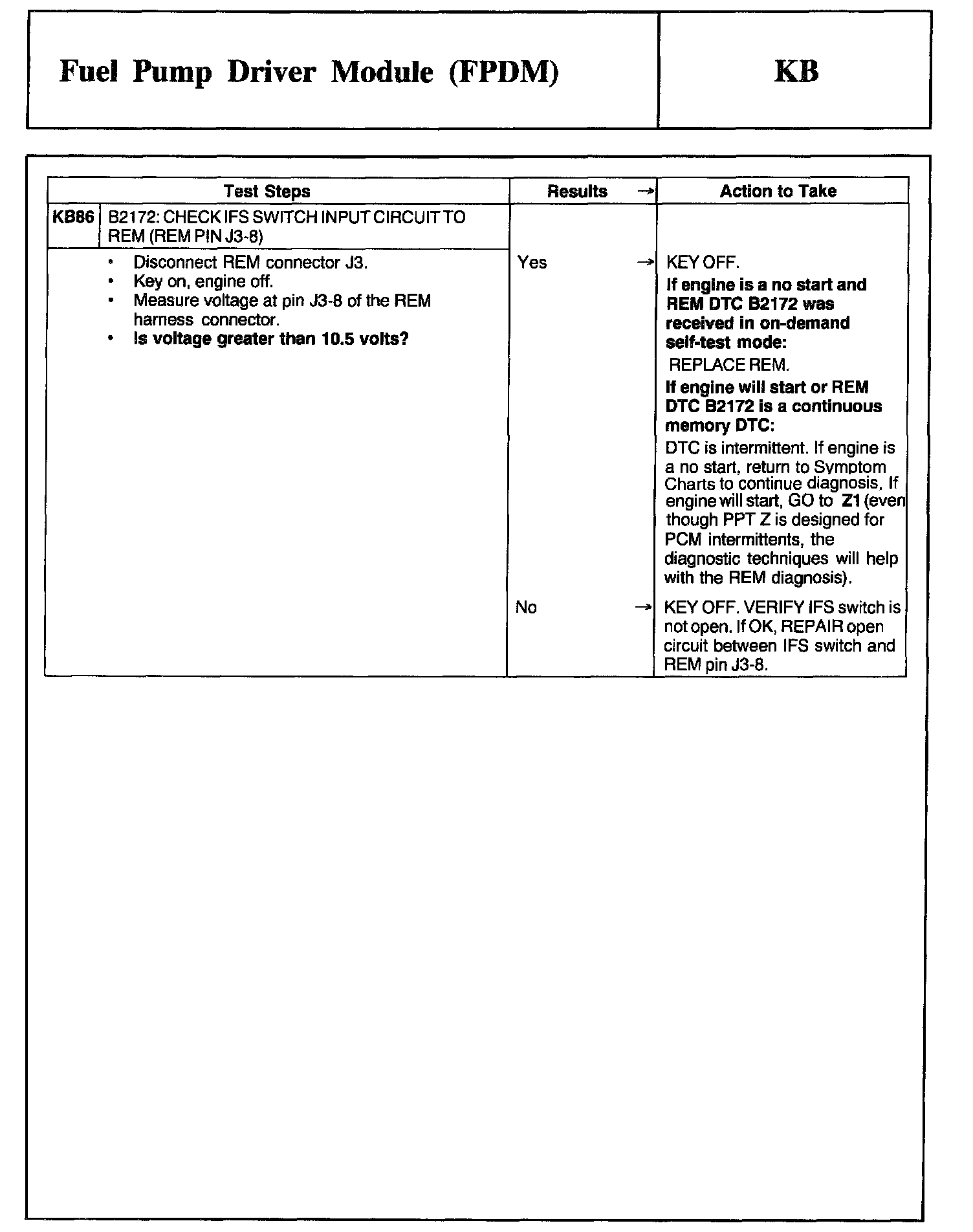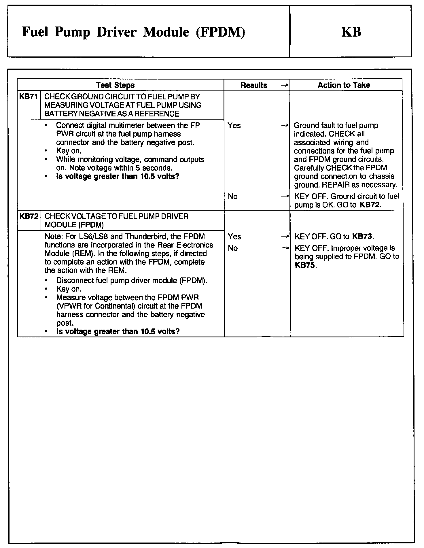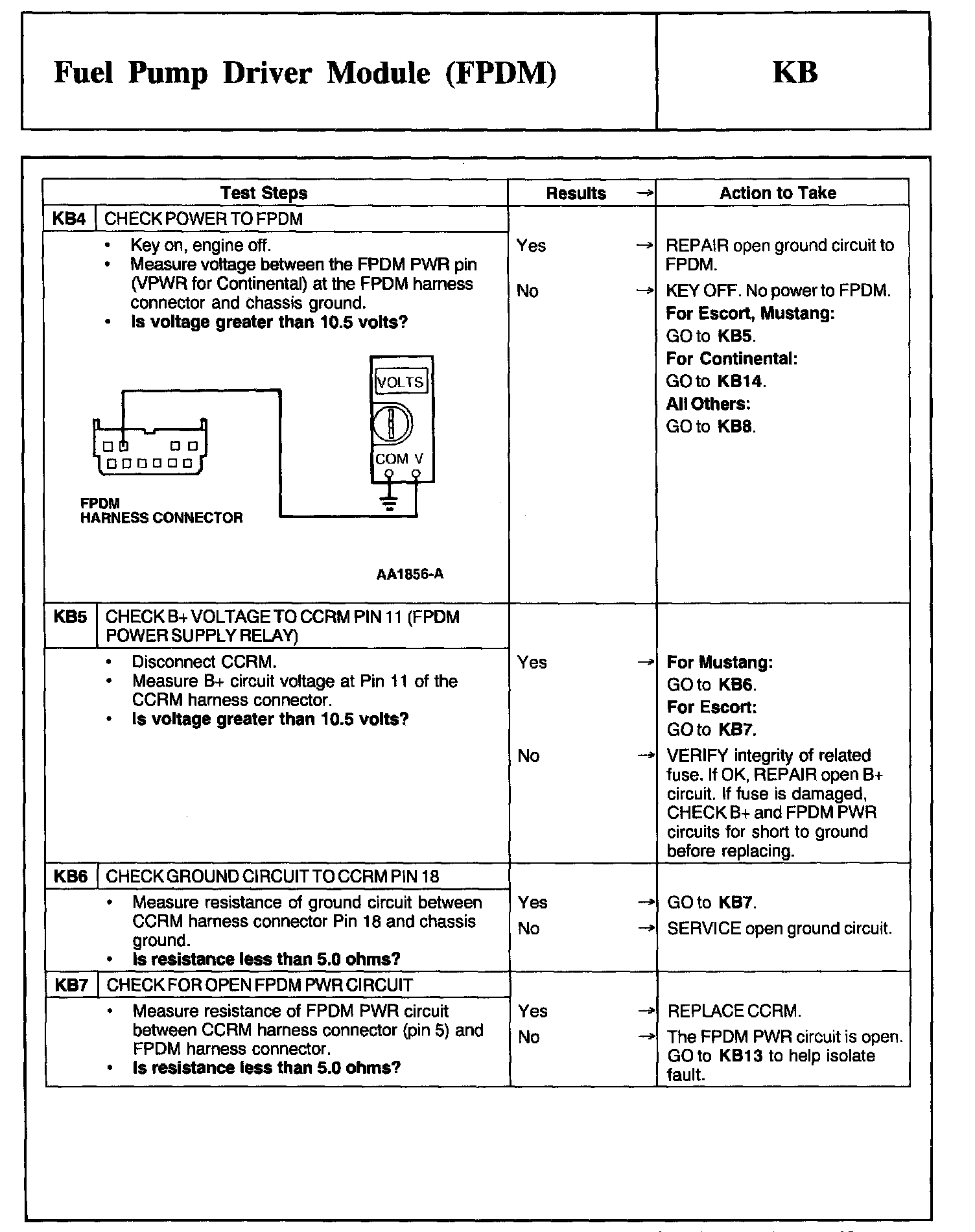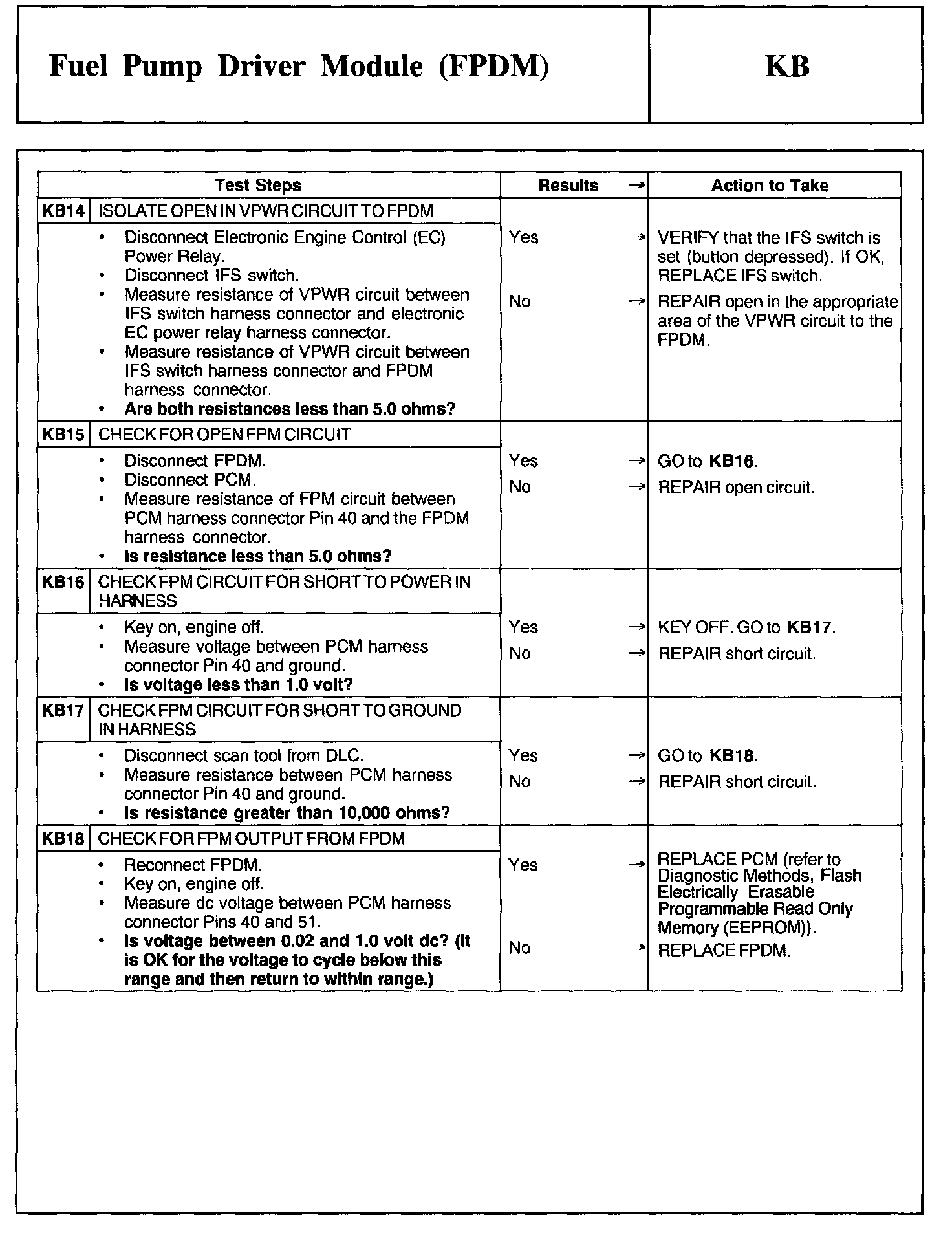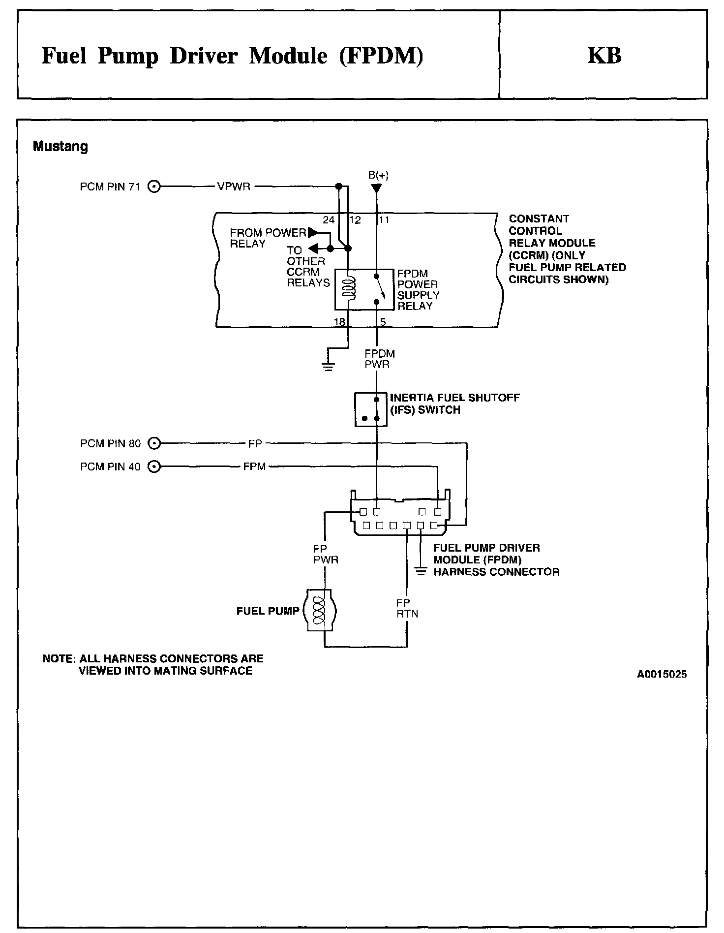 Home >> Ford >> 2002 >> Mustang V6-3.8L VIN 4 >> Repair and Diagnosis >> Powertrain Management >> Computers and Control Systems >> Testing and Inspection >> Pinpoint Tests >> Tests KB: Fuel Pump Driver Module (FPDM)