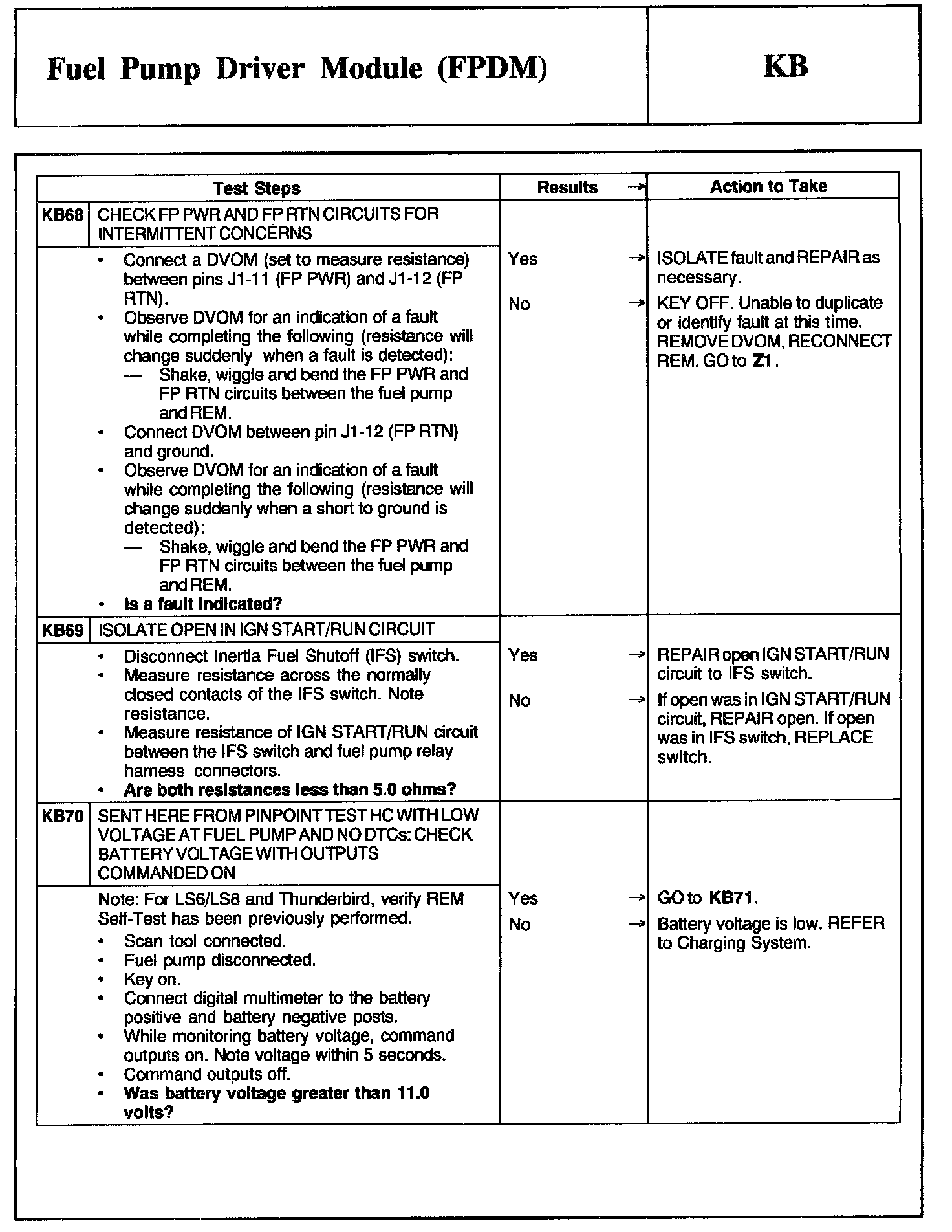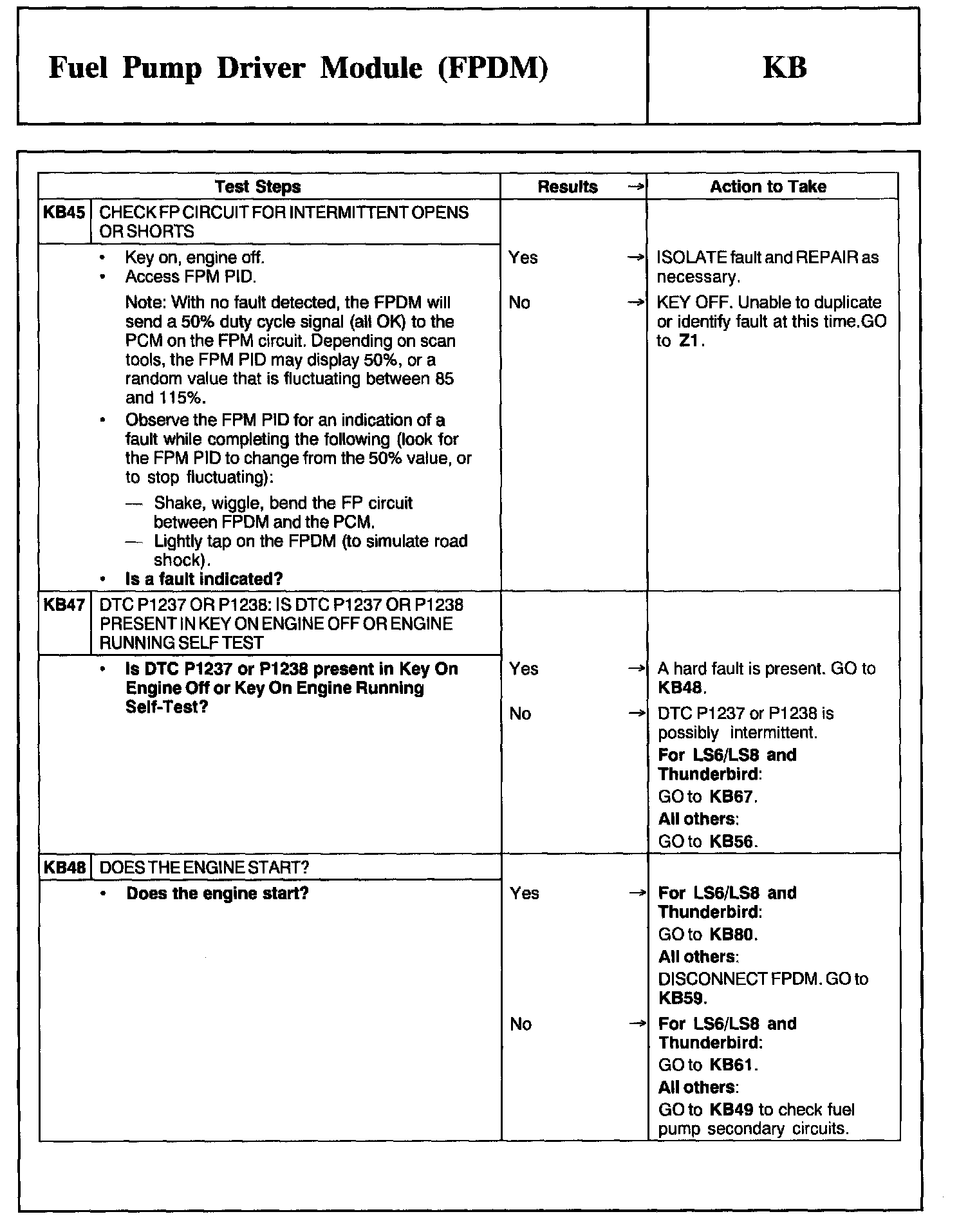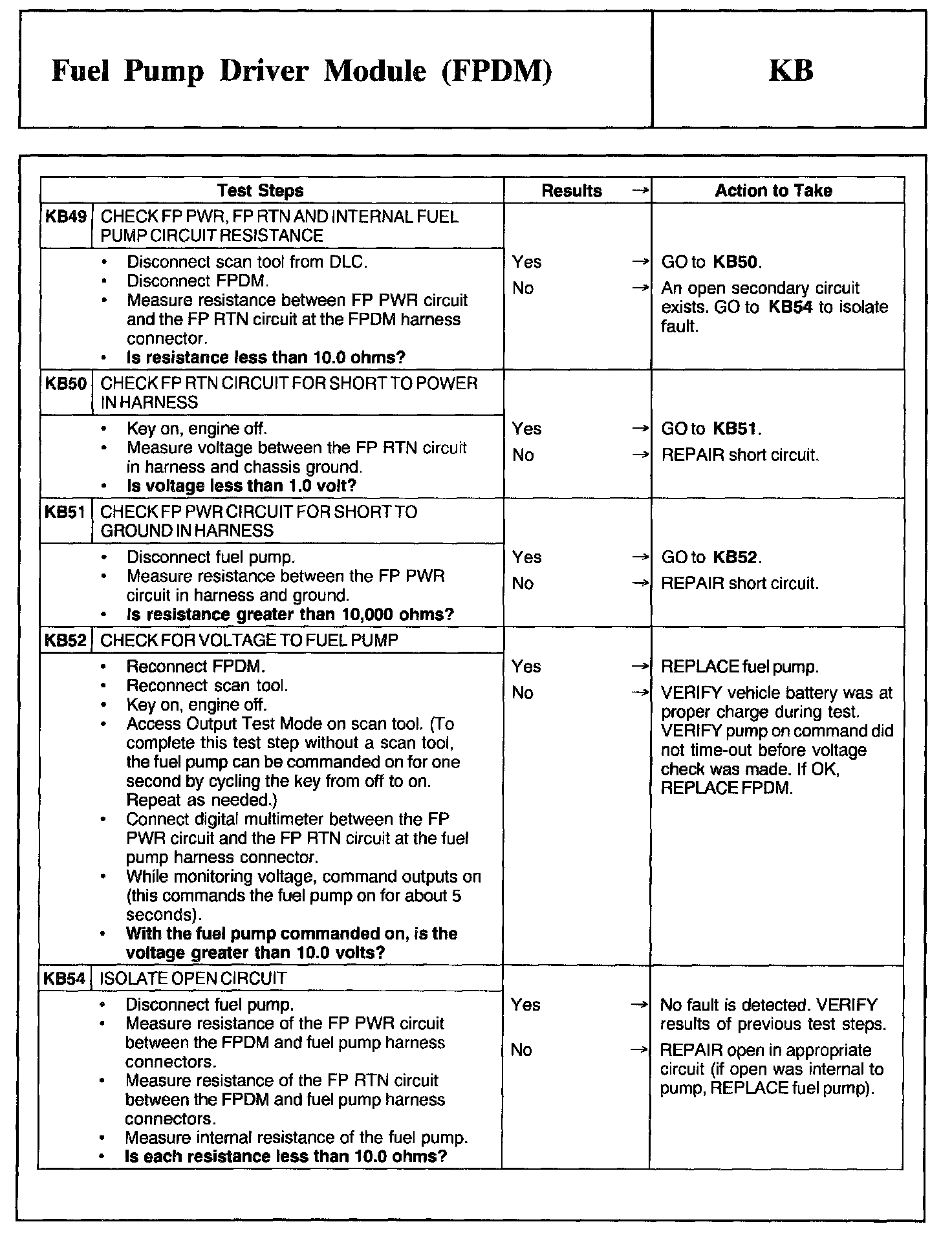 Tests KB: Fuel Pump Driver Module (FPDM)