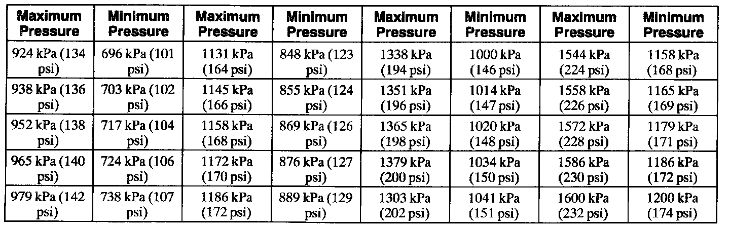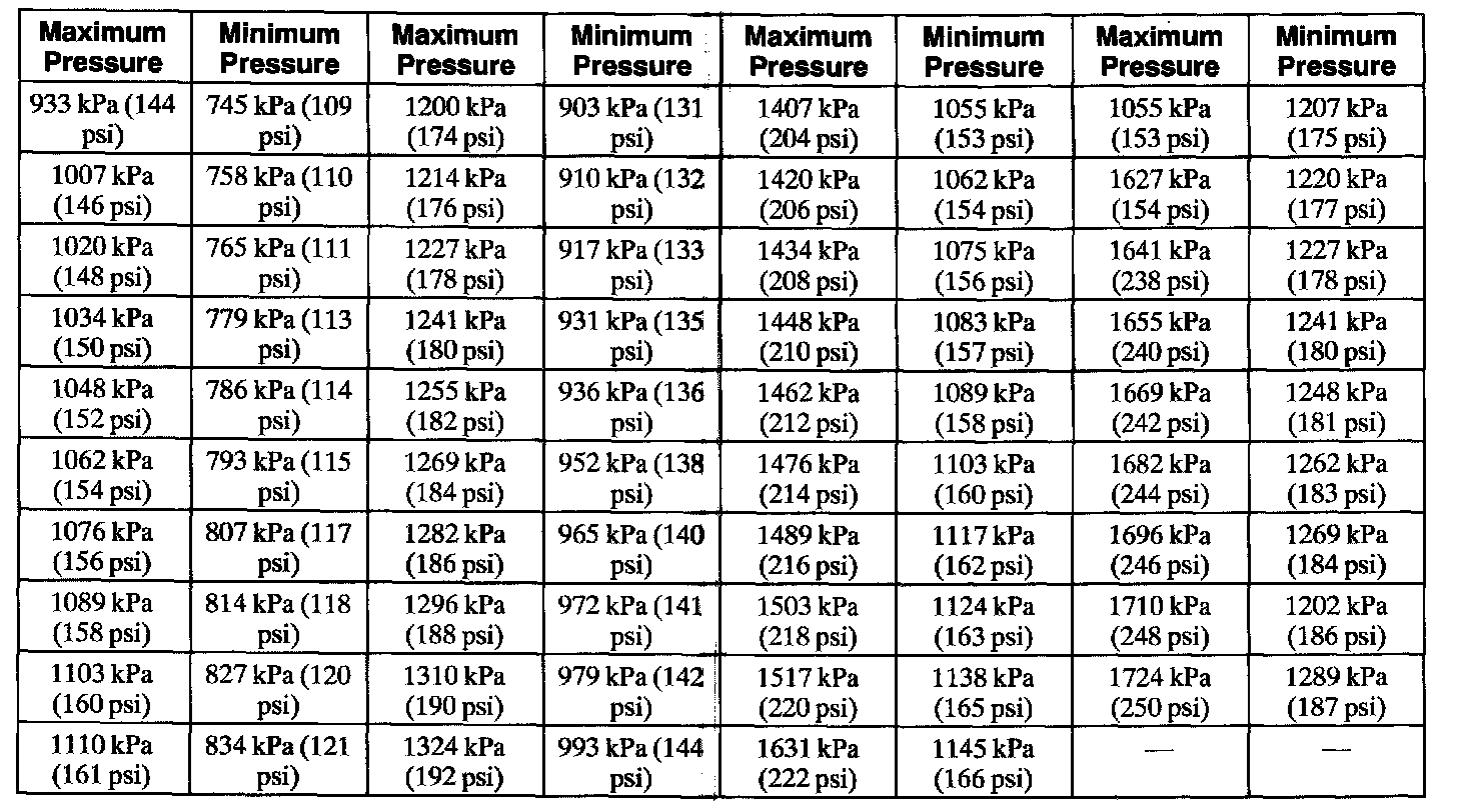The indicated compression pressures are considered within specification if the lowest reading cylinder is within 75 percent of the highest reading. Refer to the Compression Pressure Limit Chart.