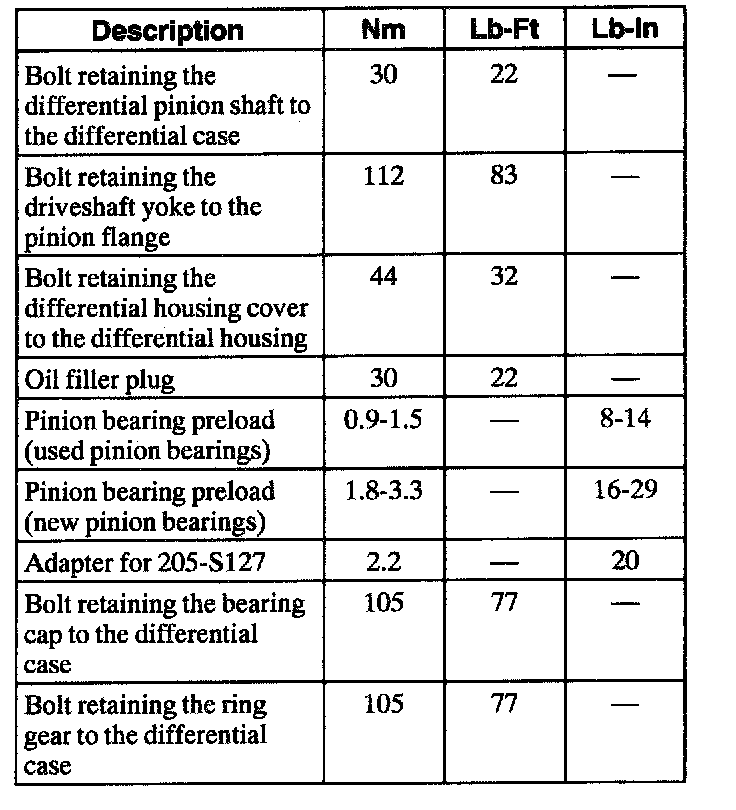 Torque Specifications