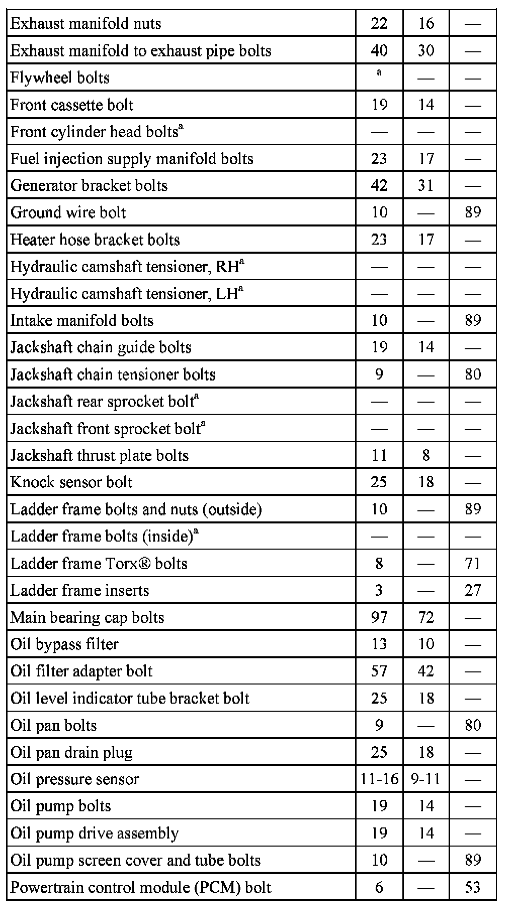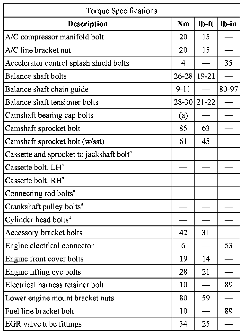 Torque Specifications