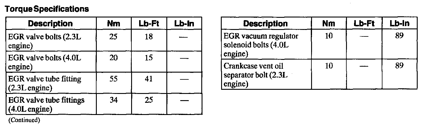 Torque Specifications: