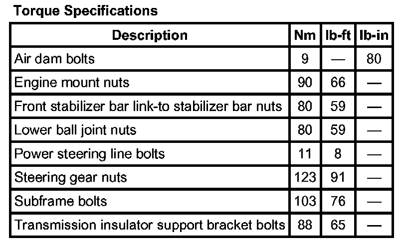 Torque Specification: