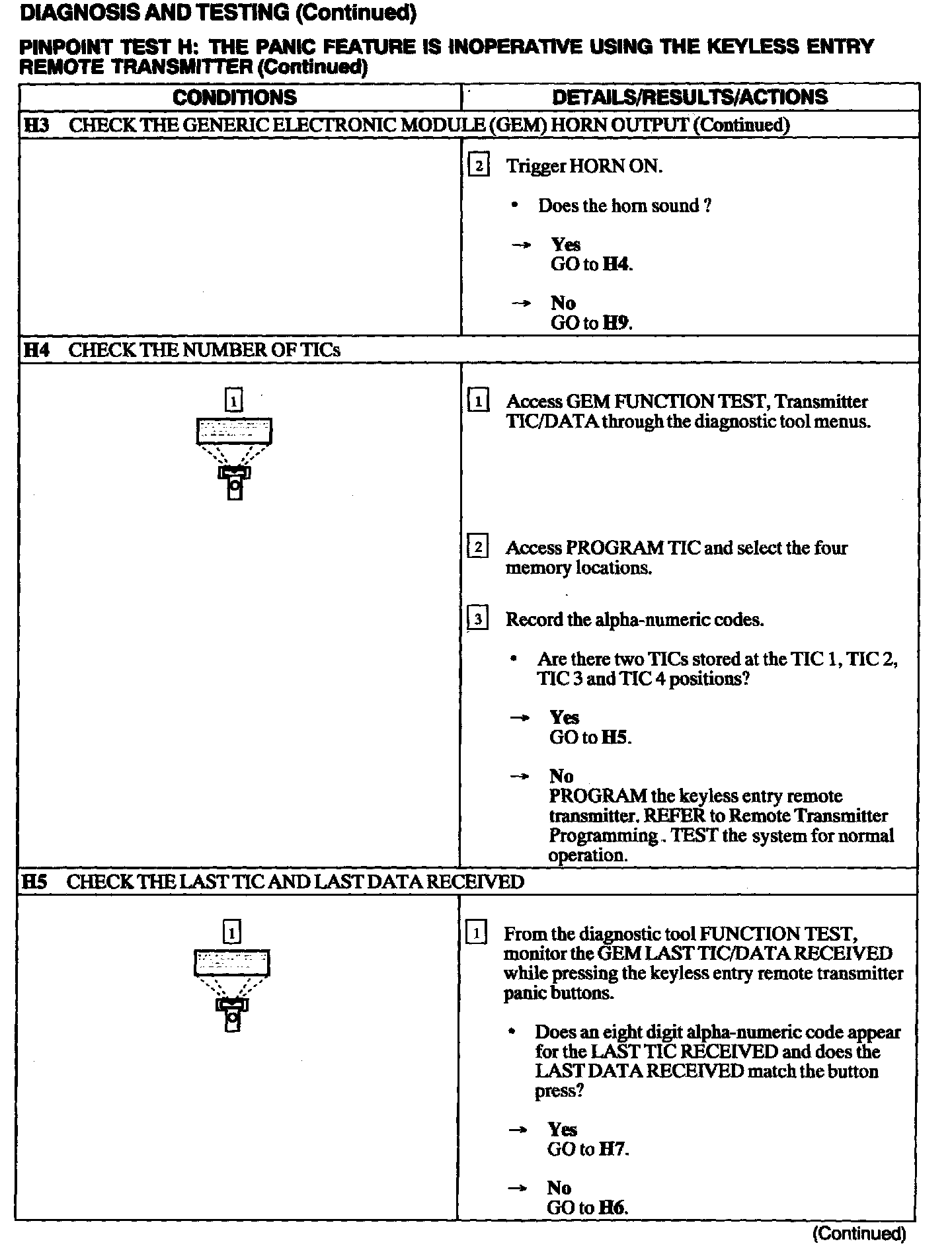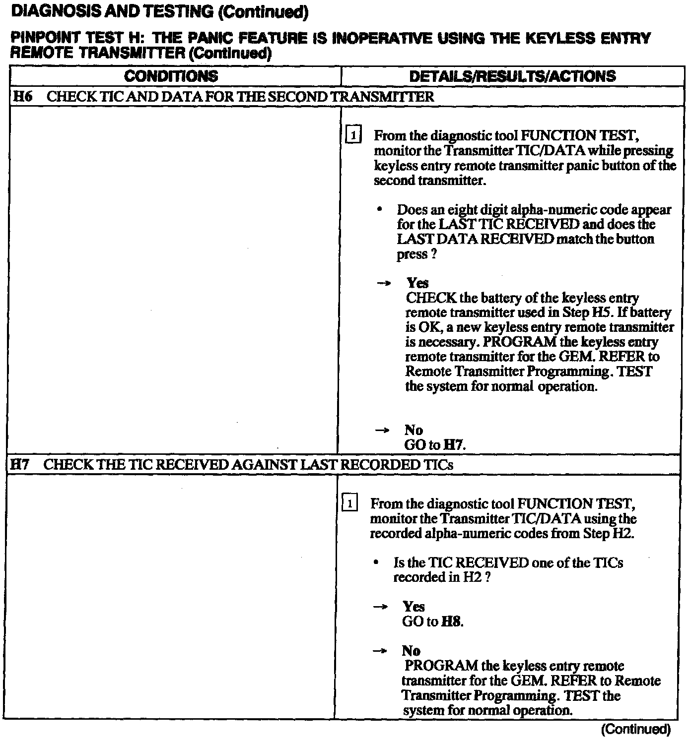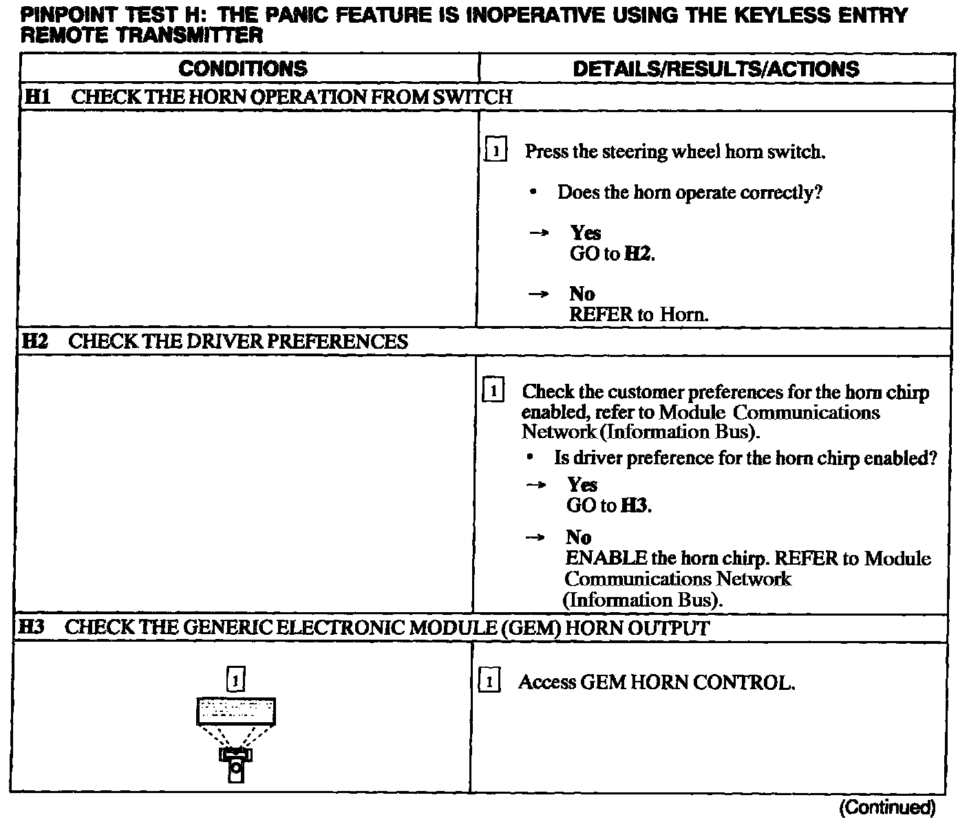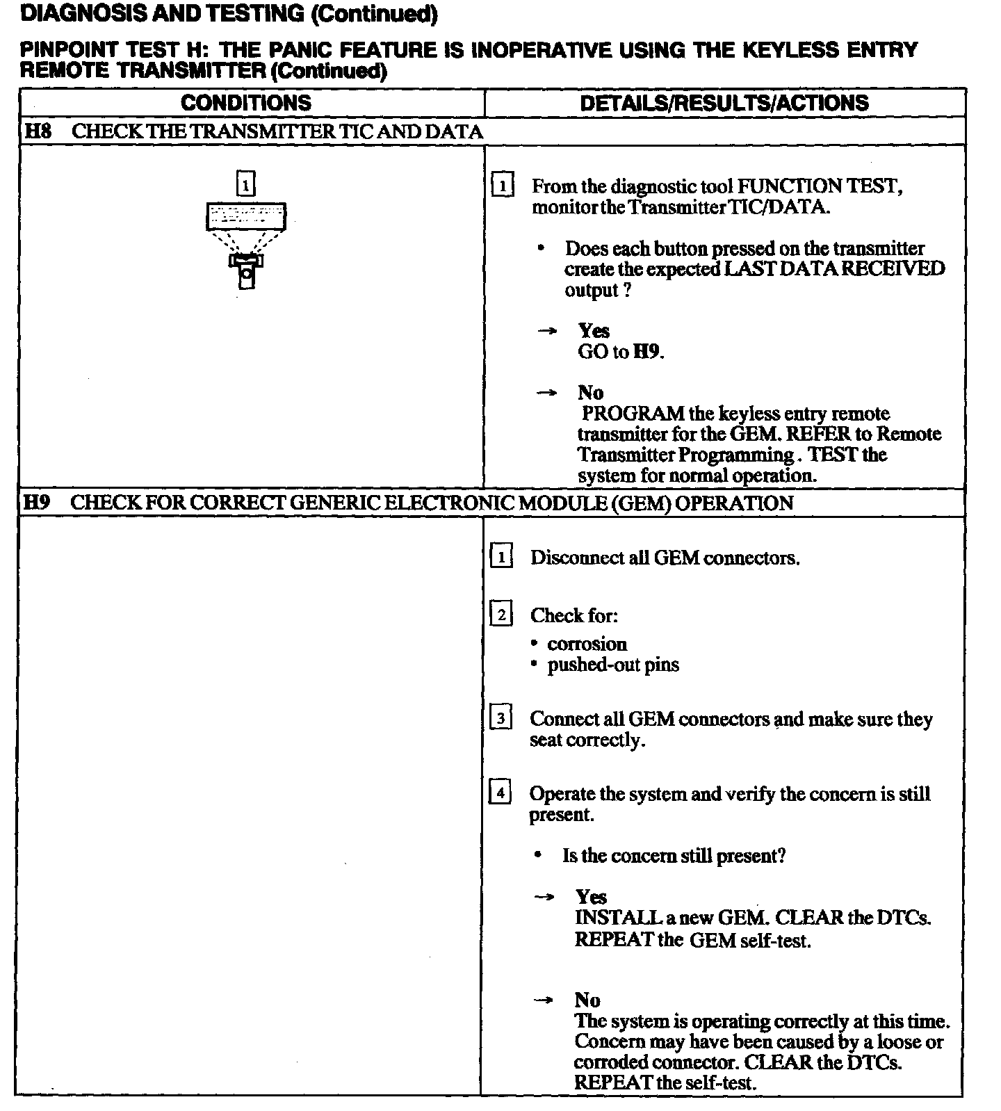 Test H: Panic Feature Is Inoperative Using The Keyless Entry Remote Transmitter