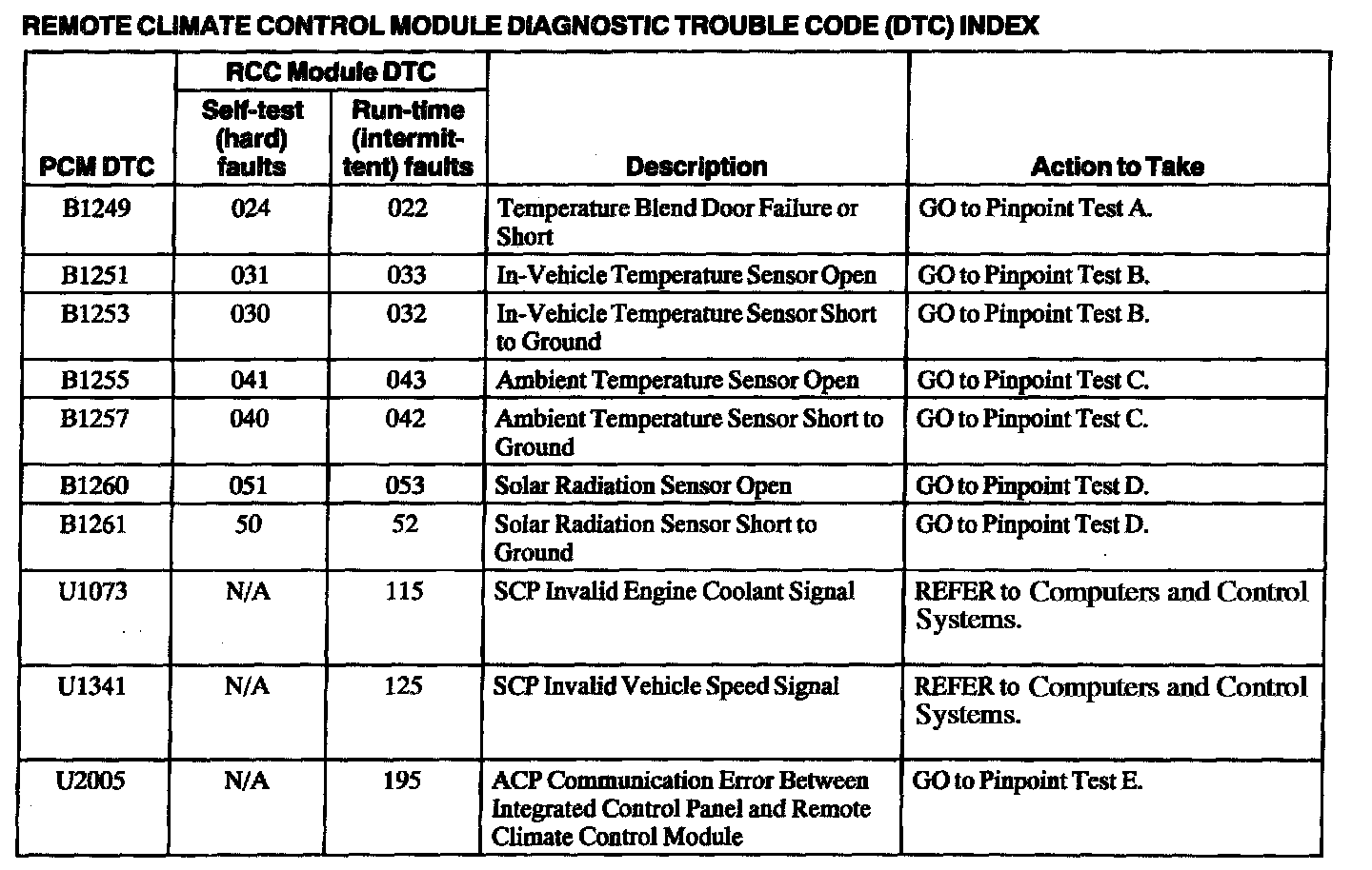 Remote Climate Control Module Diagnostic Trouble Code Index