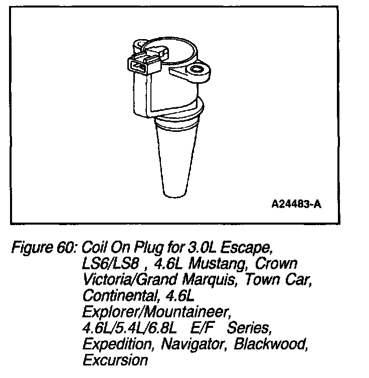 The coil on plug (COP) (Figure 60) ignition operates similar to standard coil pack ignition except each plug has one coil per plug. COP has three different modes of operation: engine crank, engine running, and CMP Failure Mode Effects Management (FMEM).