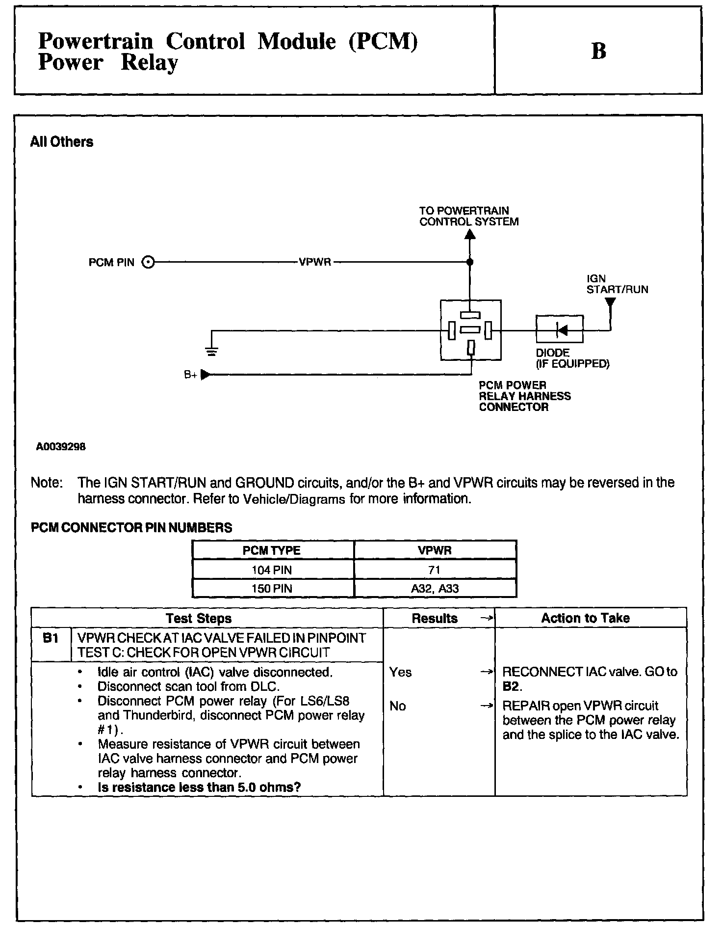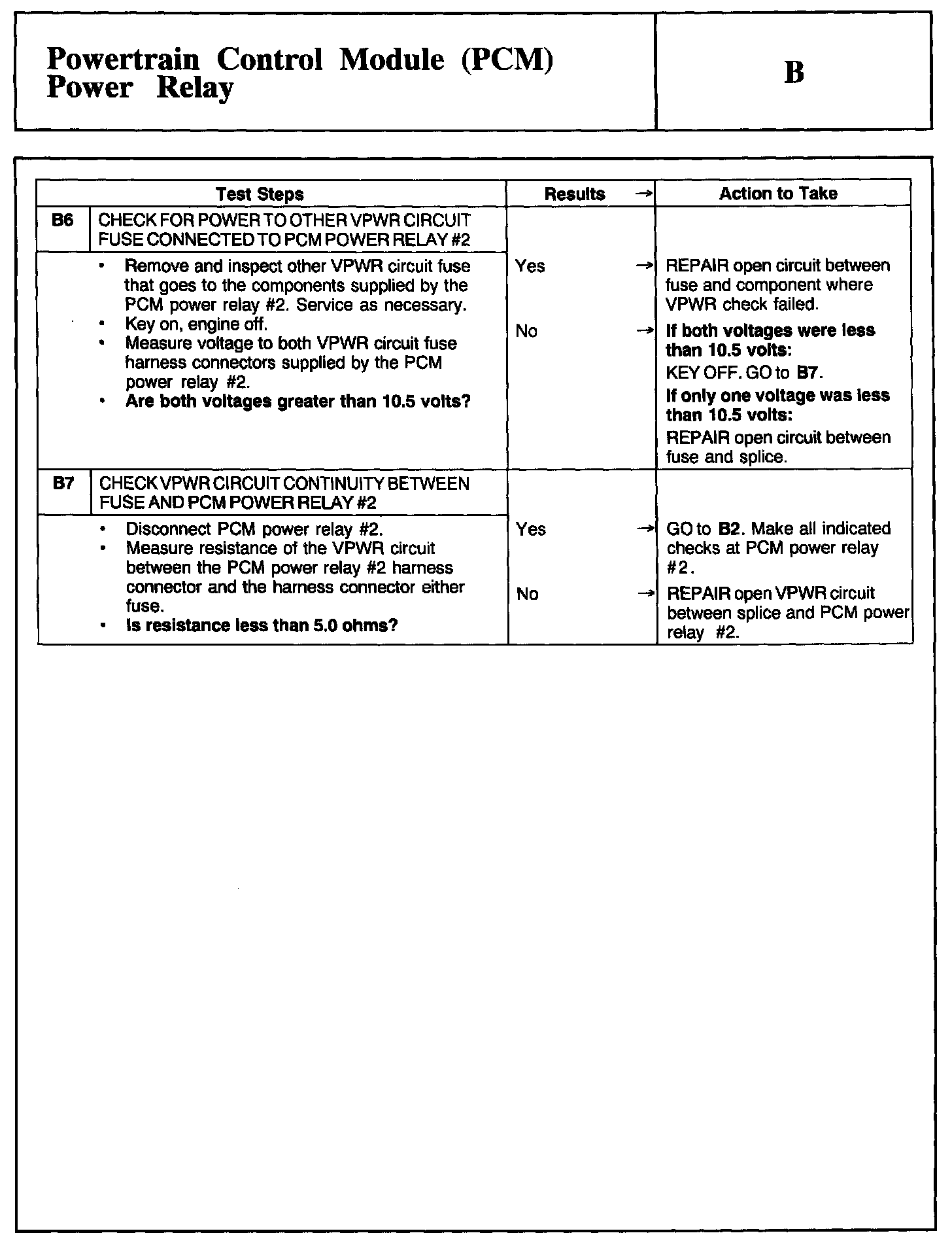 Test B: Powertrain Control Module PCM Power Relay