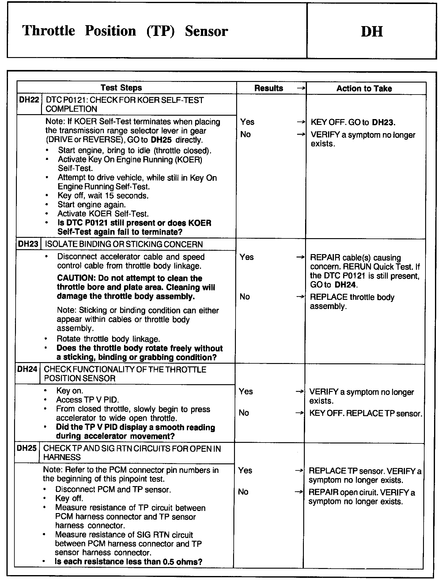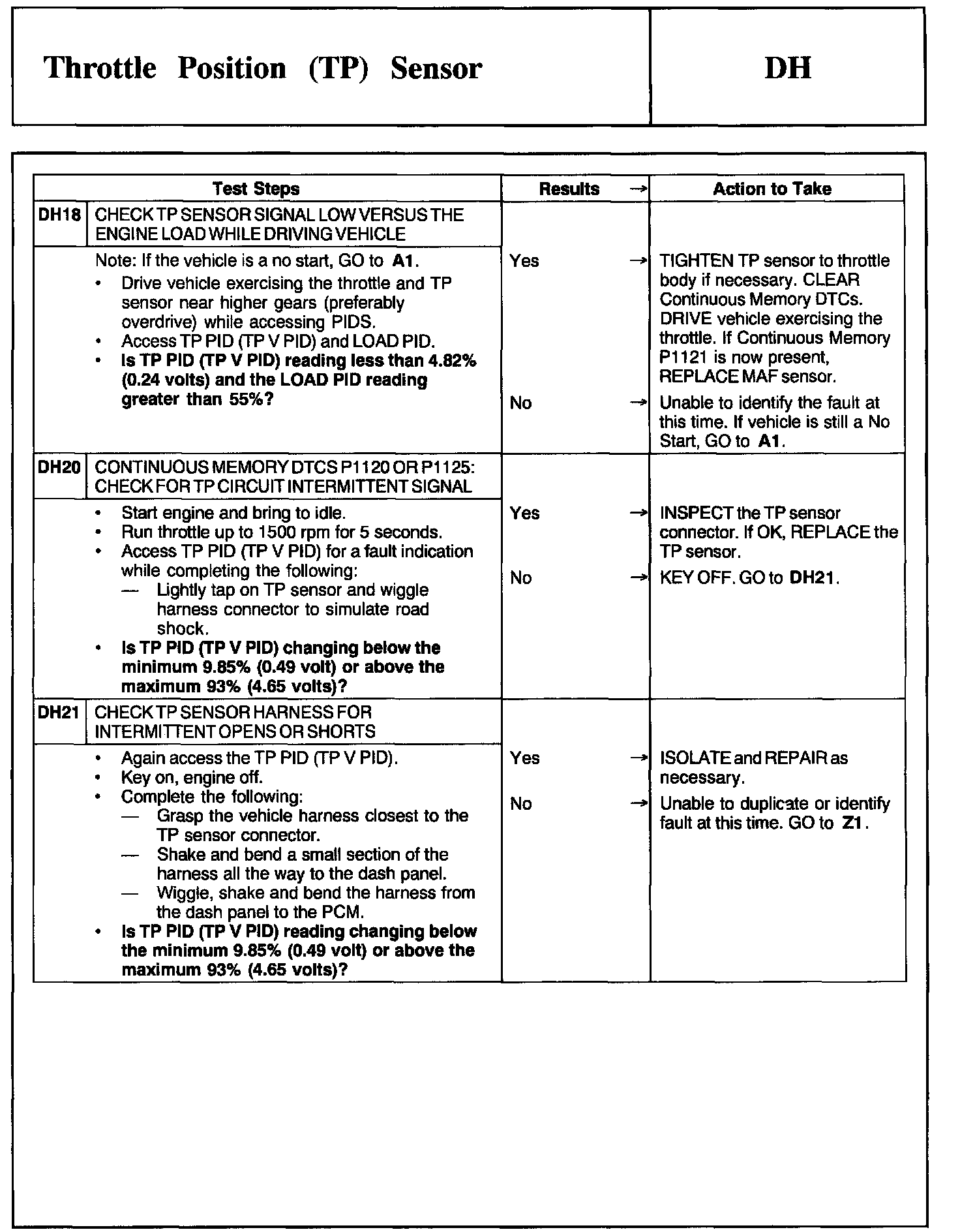 Tests DH: Throttle Position (TP) Sensor