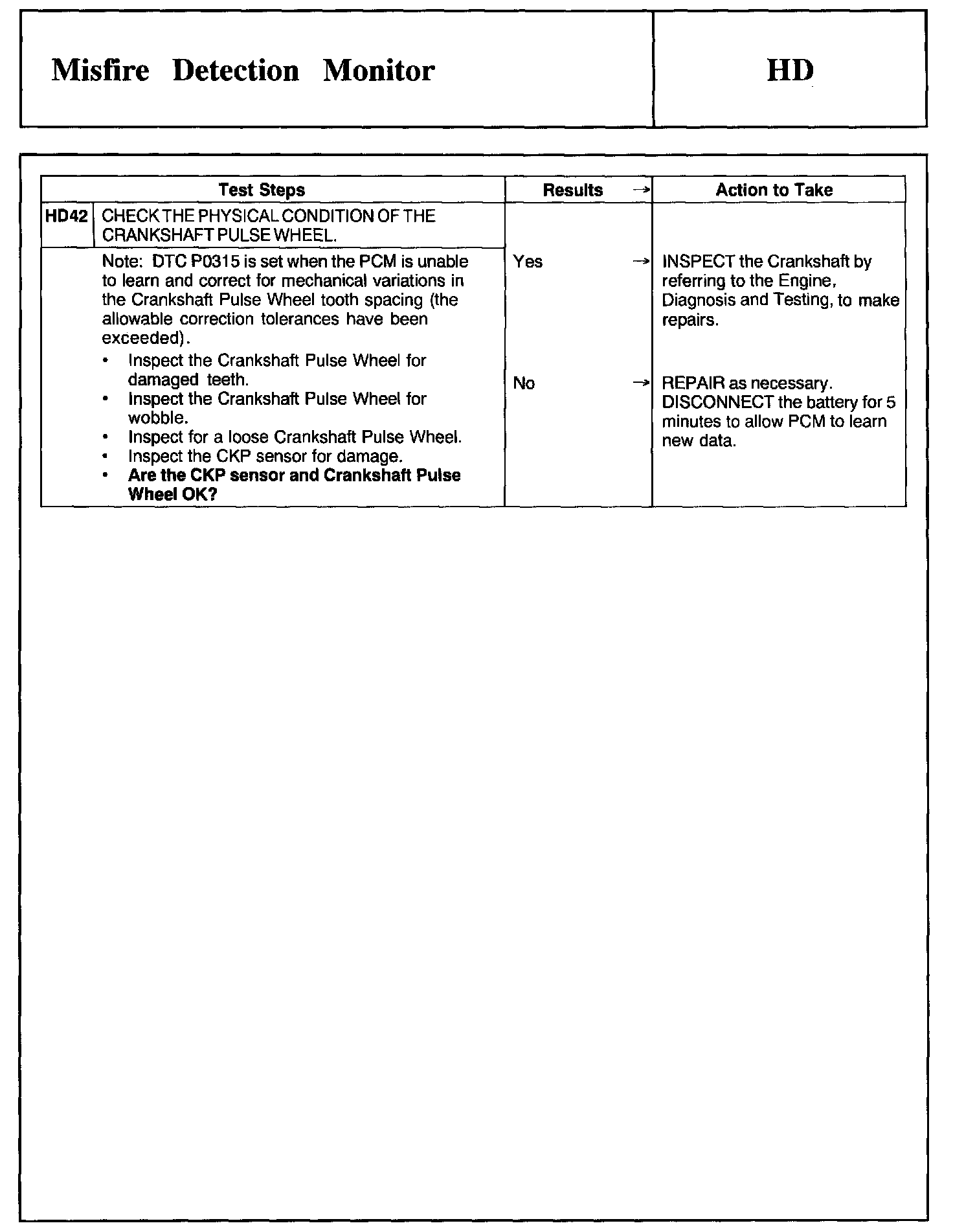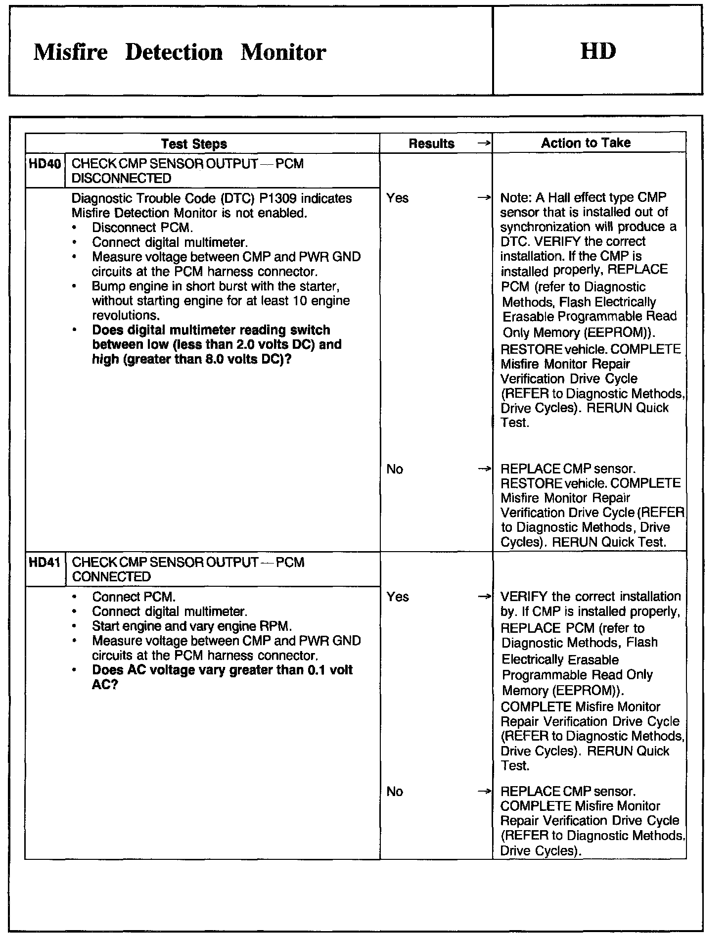 Tests HD: Misfire Detection Monitor