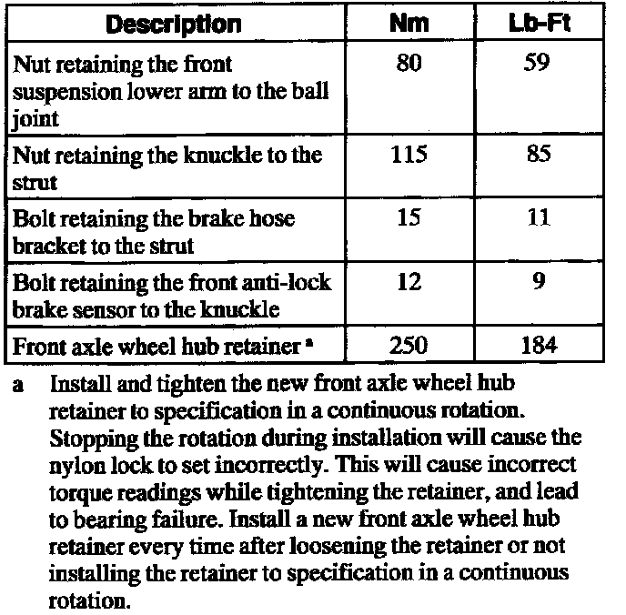 Home >> Ford >> 2002 >> Taurus V6-3.0L VIN U >> Repair and Diagnosis >> Specifications >> Mechanical Specifications >> Axle Shaft Assembly >> System Specifications >> Torque Specifications
