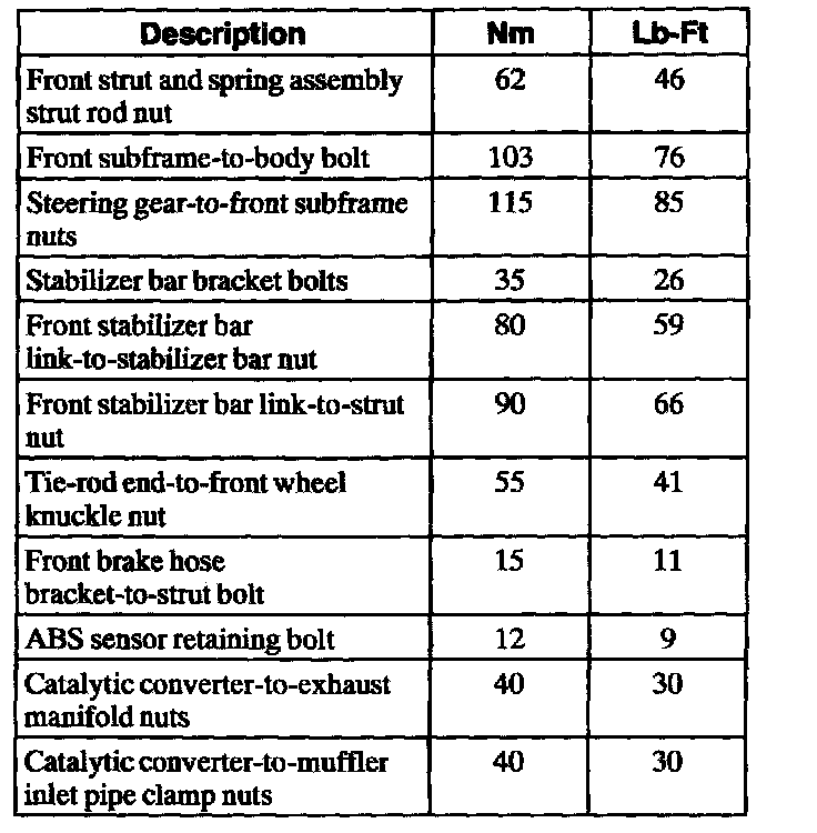 Torque Specifications