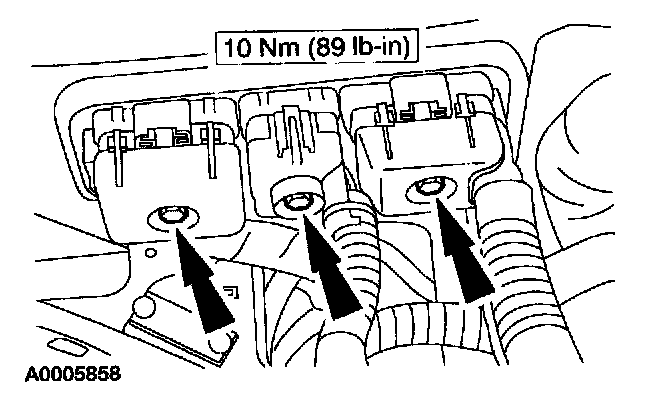 8. Loosen the bolts and disconnect the Powertrain Control Module (PCM) harness connectors.
