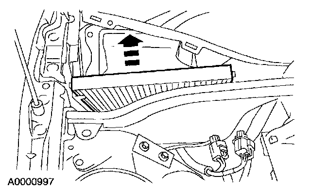 6. Remove the cabin air filter housing by lifting the outboard side then removing the housing.