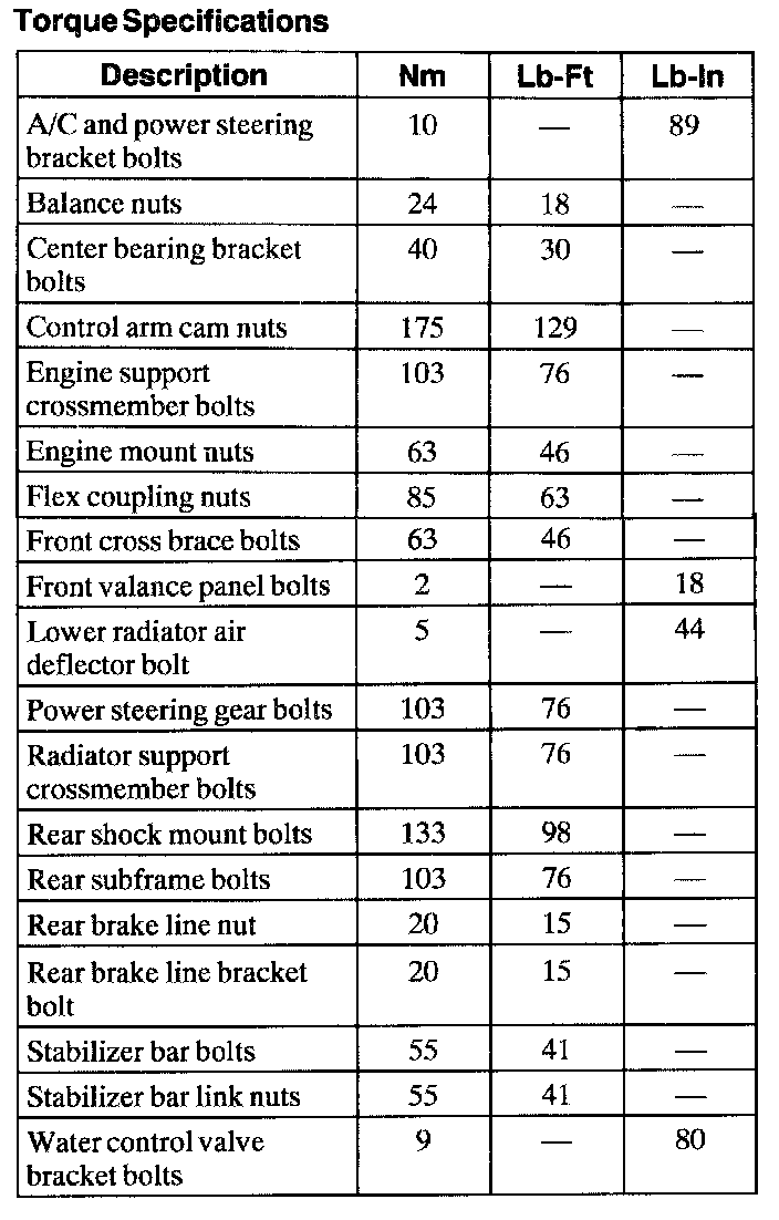 Torque Specifications: