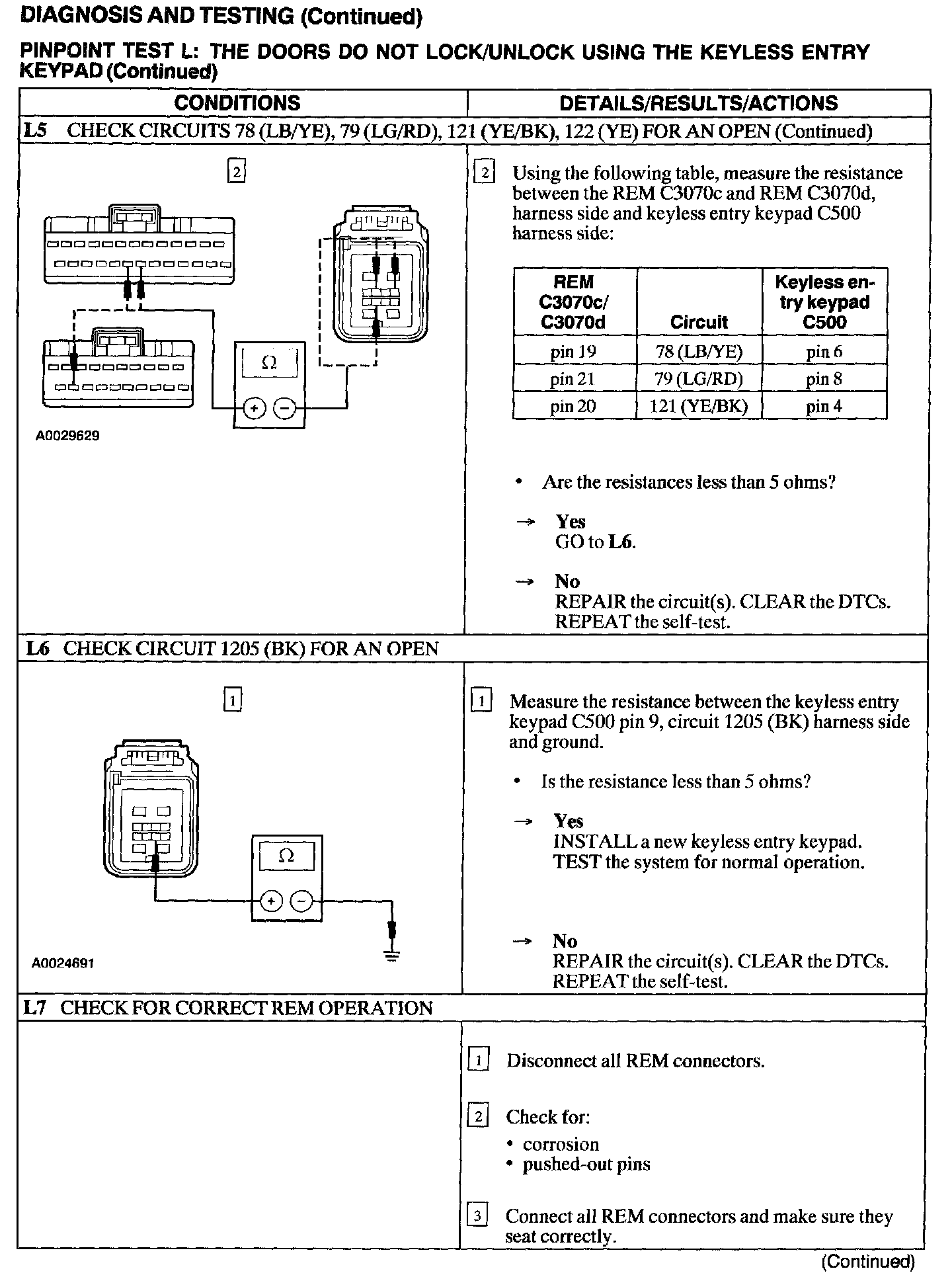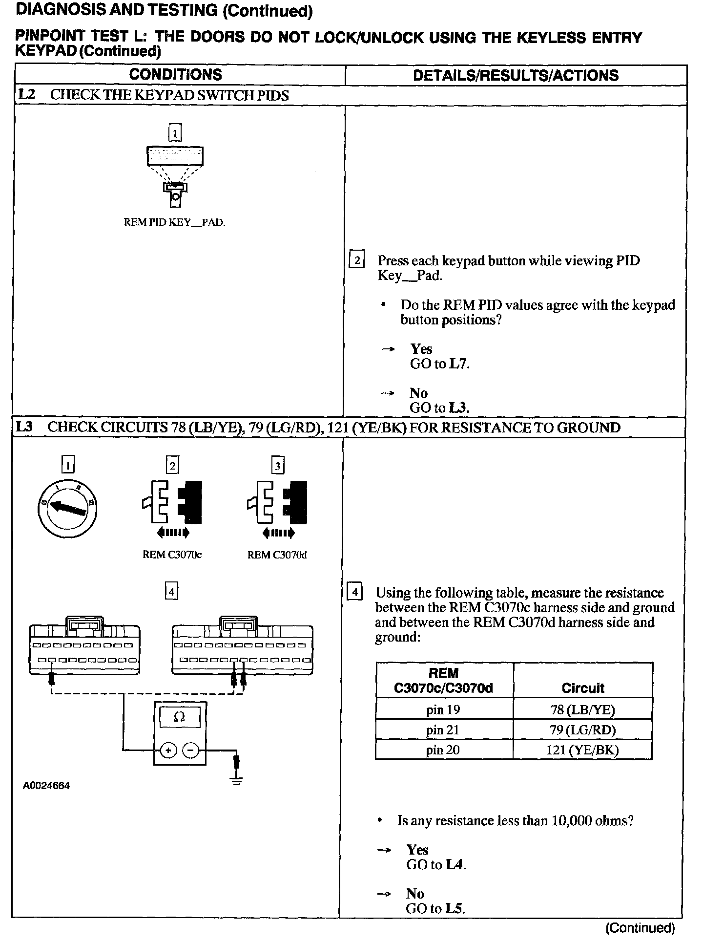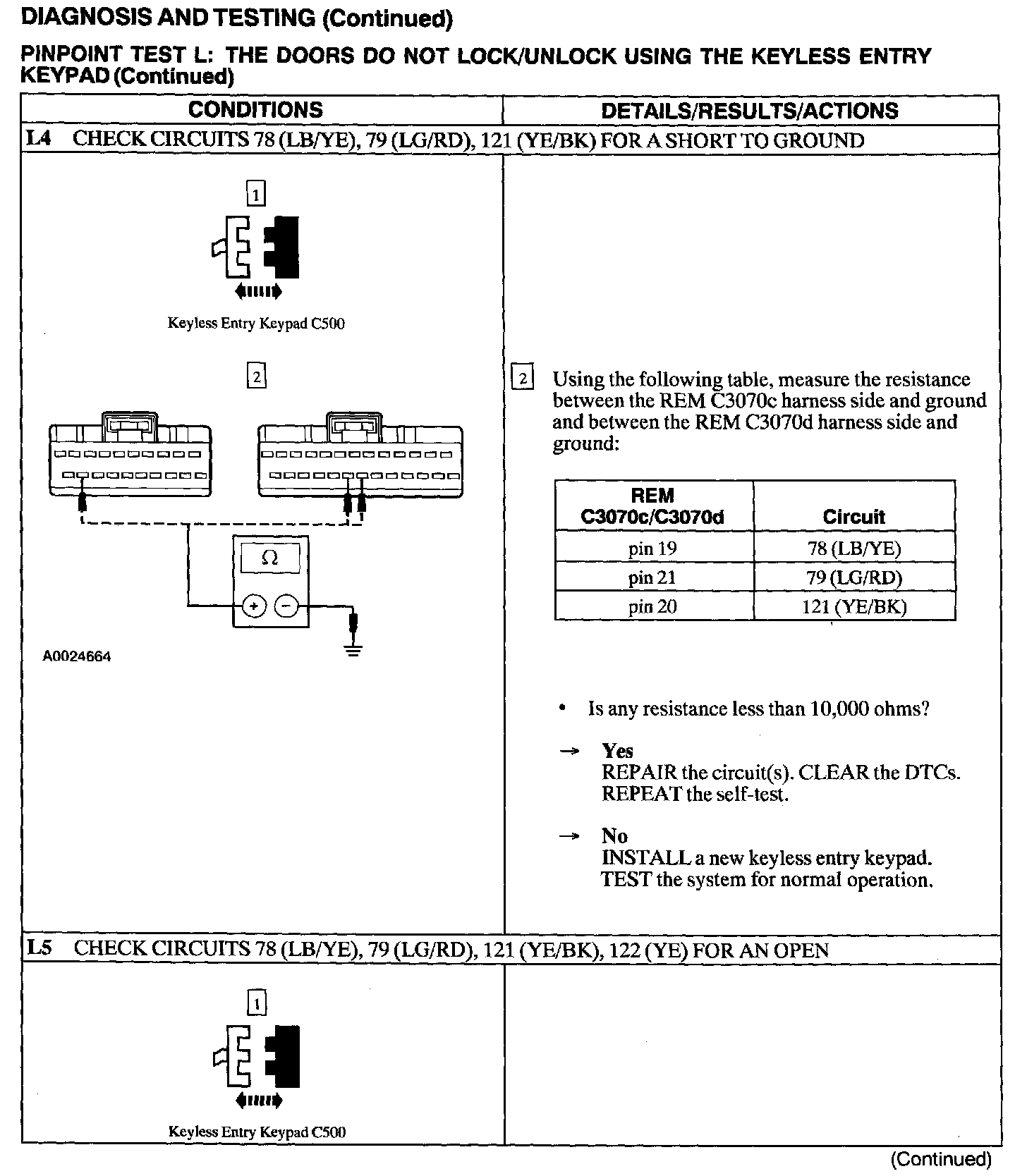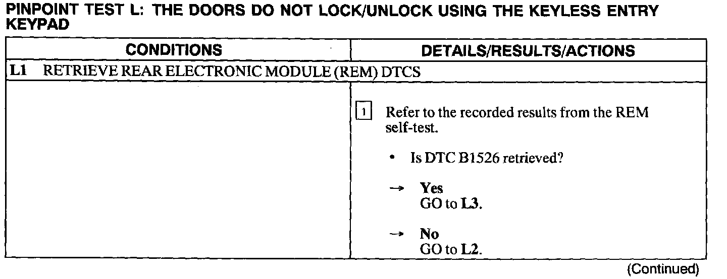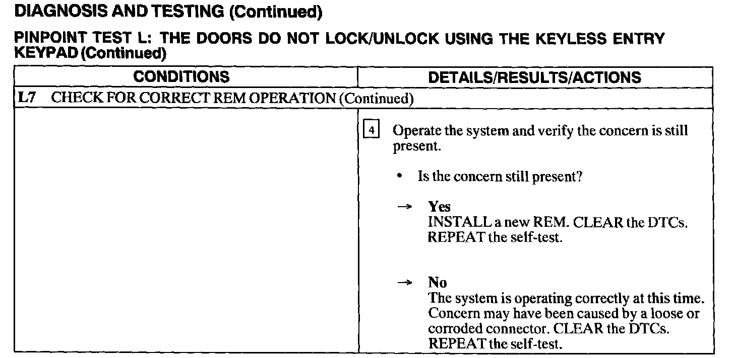 Test L: Doors Do Not Lock/Unlock Using The Keyless Entry Keypad