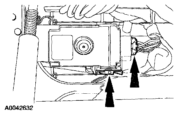 5. Disconnect the heated seat module electrical connector and release the tab on side of the module. Remove the heated seat module.