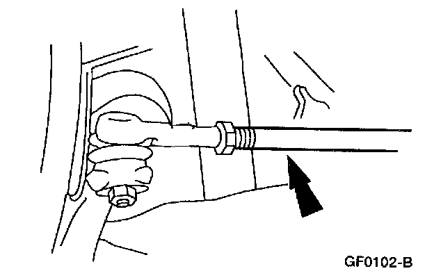 6. NOTE: Do not allow the steering gear bellows to twist when the front wheel spindle tie-rod is rotated.